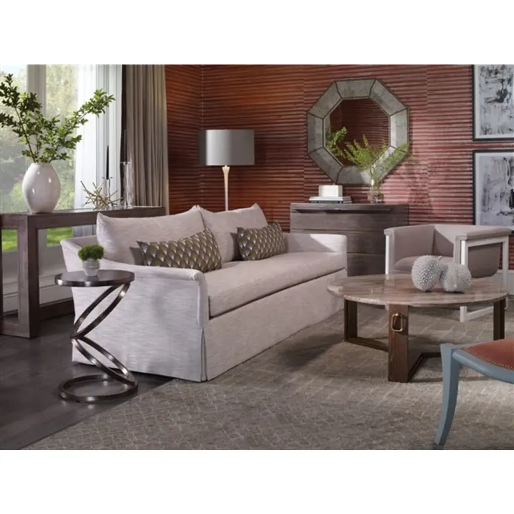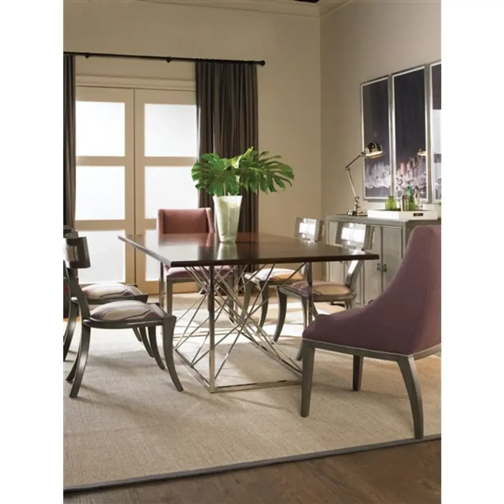 The Greek Peak Side Chair is part of the Thom Filicia Home Collection, classic simplicity while introducing a fresh, modern flair. The result is a unique look where refined details mix with raw materials and industrial elements play against organic features. Thom uses colors, textures, and patterns in innovative ways to create a collection with a sophisticated, yet authentic point of view. Shown in Cecily Birch (no longer available) but other fabrics & finishes available.