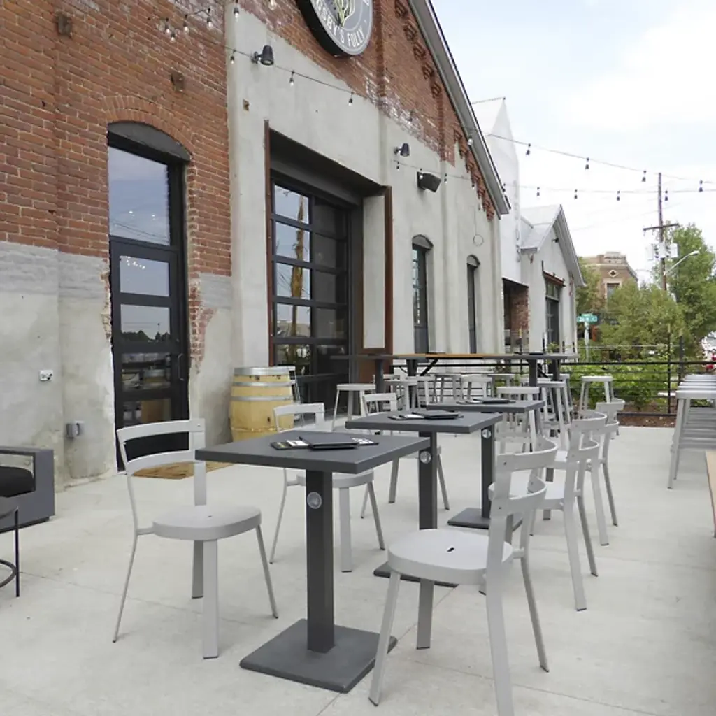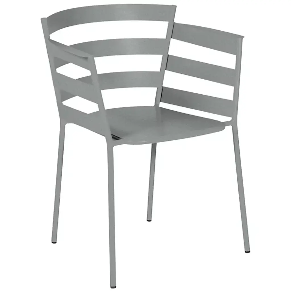 The Thor Outdoor Stacking Side Chair Set Of 4 from Emu offers well-considered comfort to outside gathering spaces. At once stylish and stackable, its outward-splayed legs offer a sculptural enhancement to its surroundings, using slim, strong strips of steel to form the legs and back, with two arcing braces creating a comfortable and supportive seat joining. The design is artfully engineered by Marco Marin, using experience in industrial design to create something striking enough to be artistic while remaining both practical and stackable for outside use and storage.