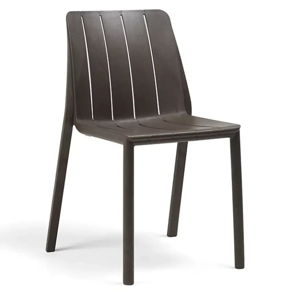 The Tiberina Bistrot Outdoor Side Chair, Set of 4 from Nardi Outdoor offers stylish, eco-conscious seating for patios, balconies, or garden spaces. Designed by Raffaello Galiotto and made in Italy, each chair is molded from recyclable fiberglass-reinforced polypropylene resin. Four slim, strong legs support a slatted seat and back, allowing for airflow and quick drainage, while small, non-slip feet keep the chair steady. The gently curved backrest provides a comfortable rest, while a stackable design simplifies storage.