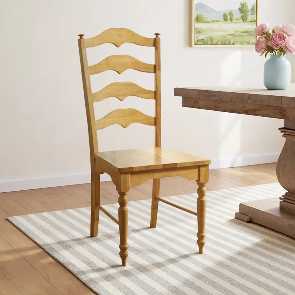 Bring a touch of timeless charm to your dining space with the Rasia Ladder Back Side Chair. Crafted from solid Rubberwood, this chair offers the perfect balance of durability and rustic elegance. Its classic ladder-back design and clean lines create a cozy, down-to-earth feel that fits beautifully in farmhouse, cottage, or country-inspired interiors. Whether you're gathering for family meals or sipping coffee by the window, Rasia's sturdy build and thoughtfully contoured seat promise comfort that lasts.