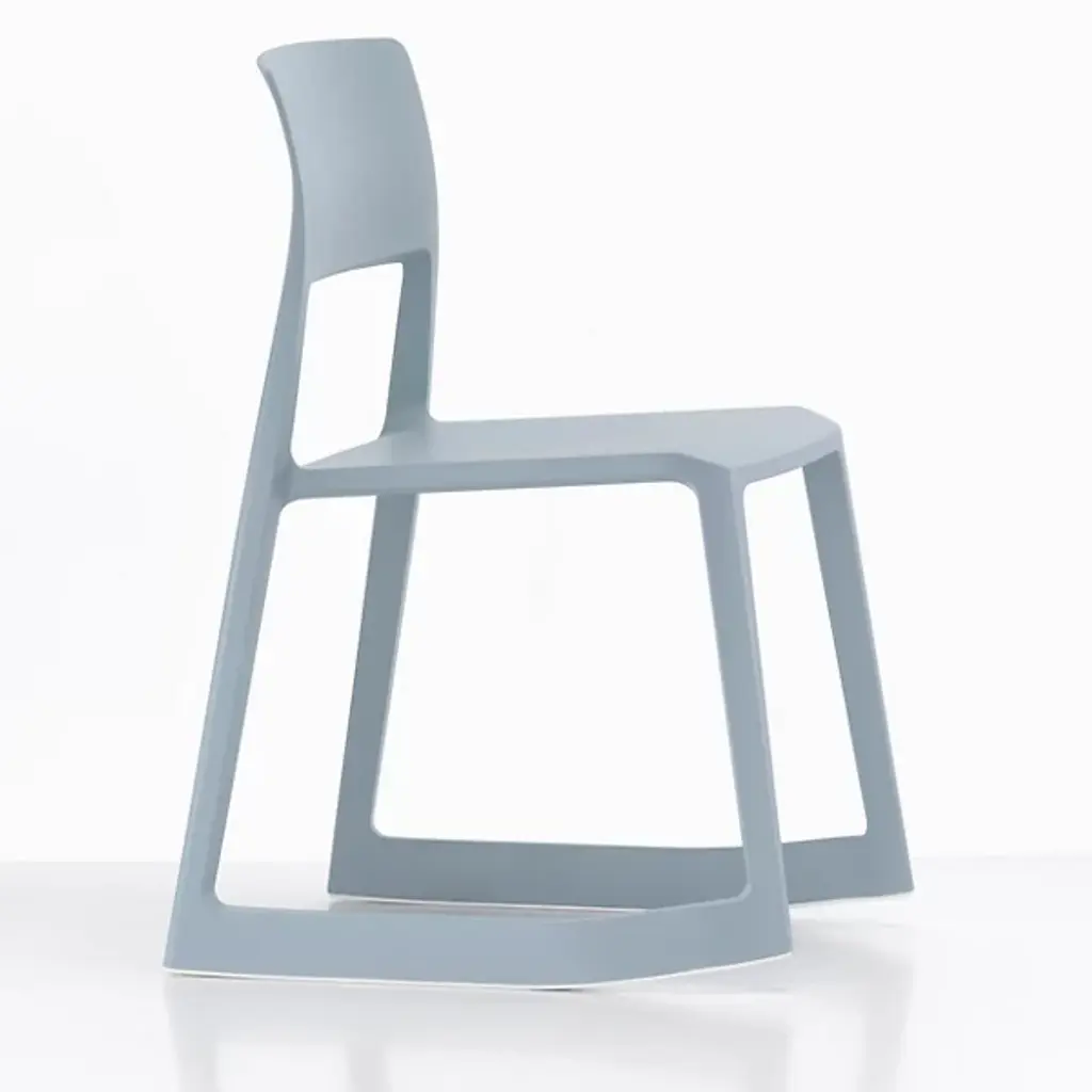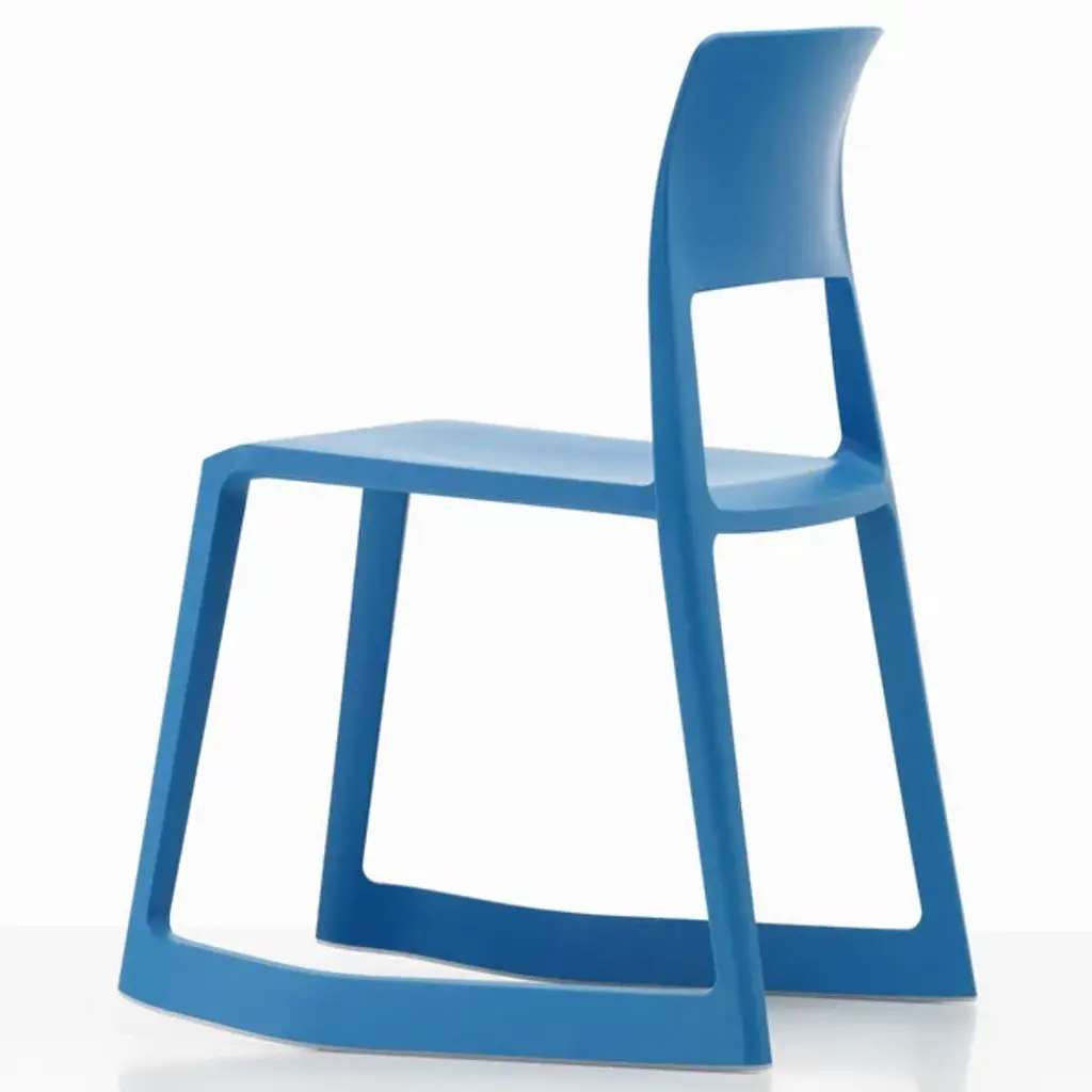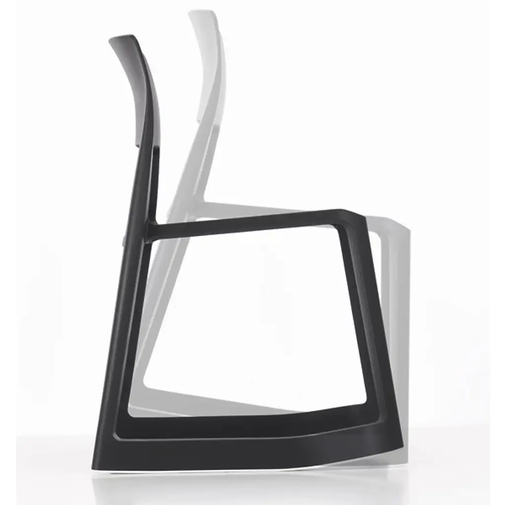Two seating positions, indoors or out. The Vitra Tip Ton chair has a unique base that lets you sit up straight or tilt forward a few degrees for a particularly comfortable working or dining position. The range of colors available here are UV resistant, so they won't fade or otherwise discolor when used outdoors. Stackable up to 4 high.