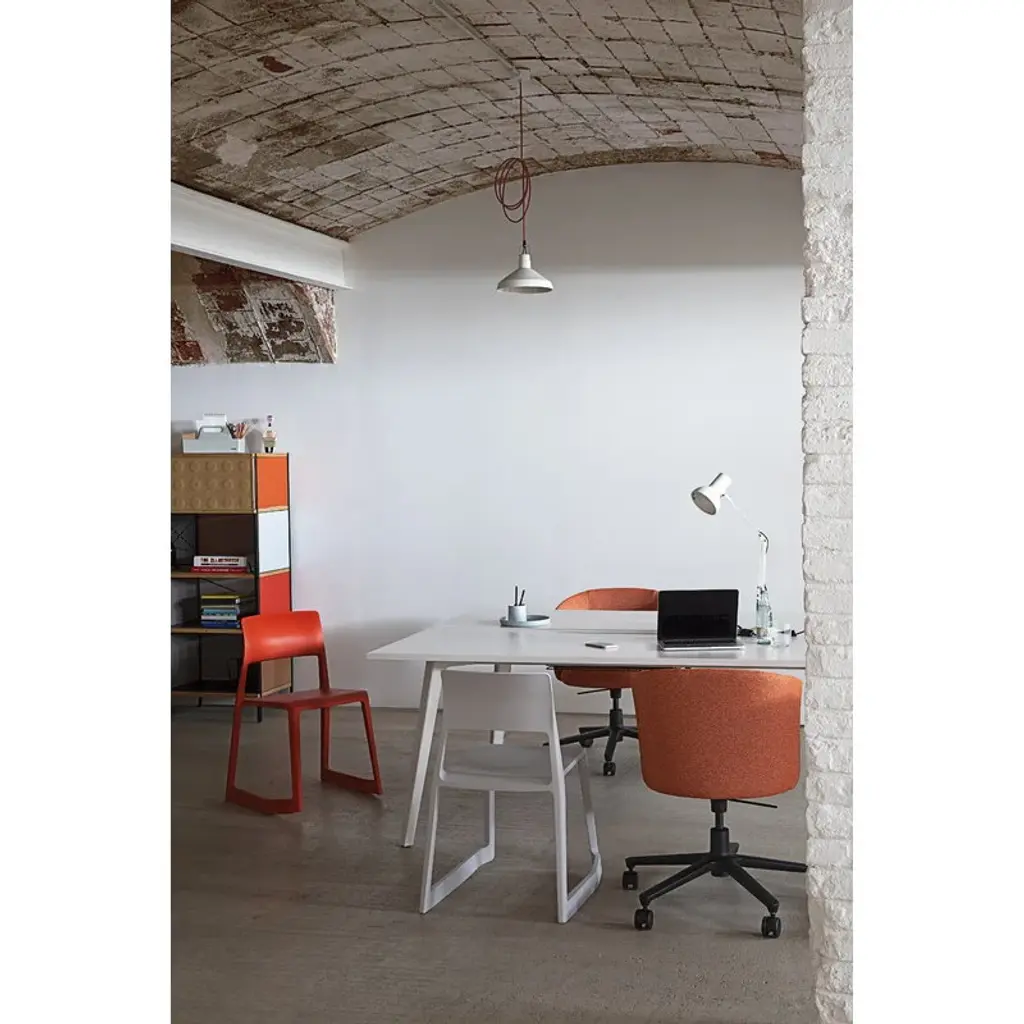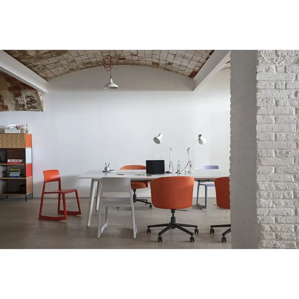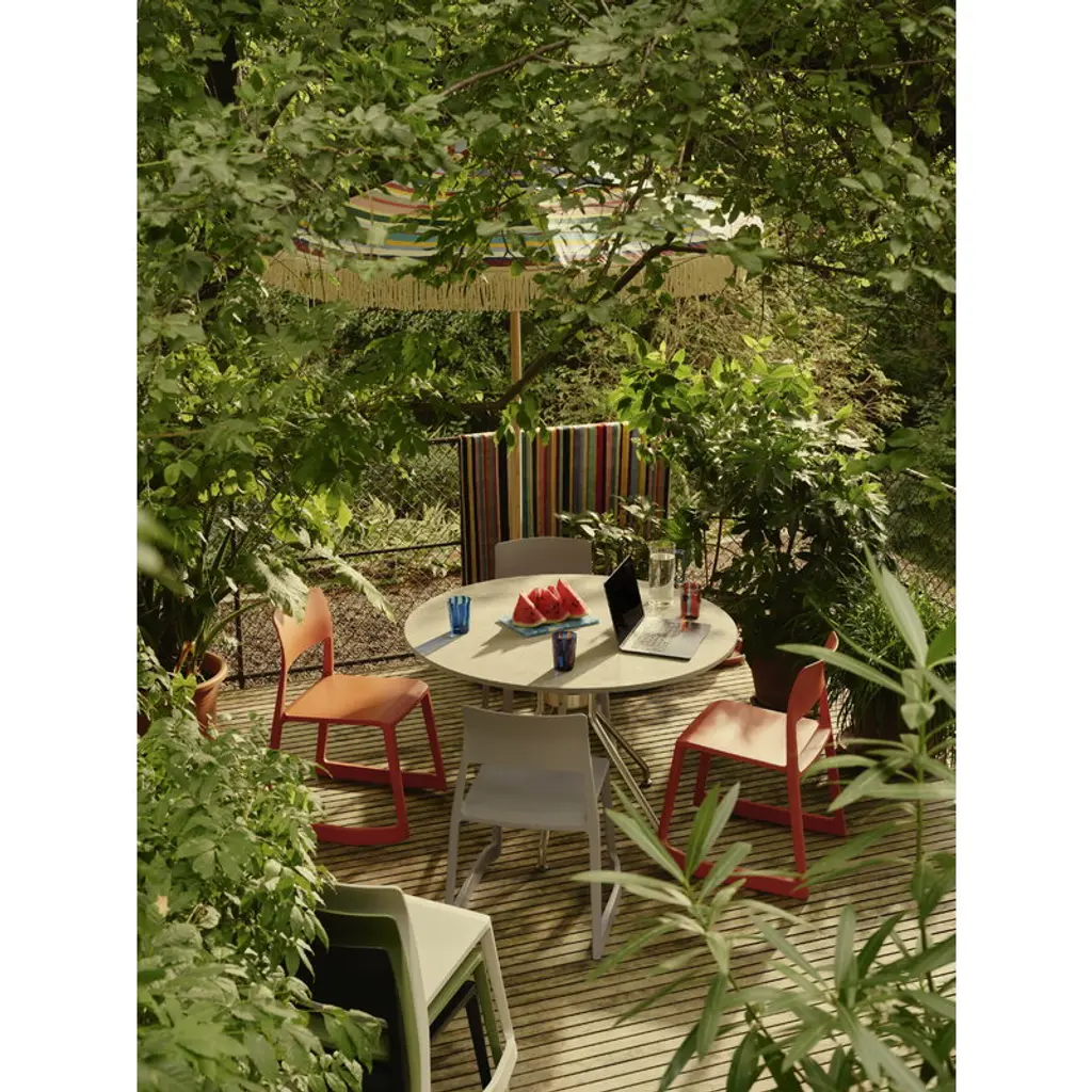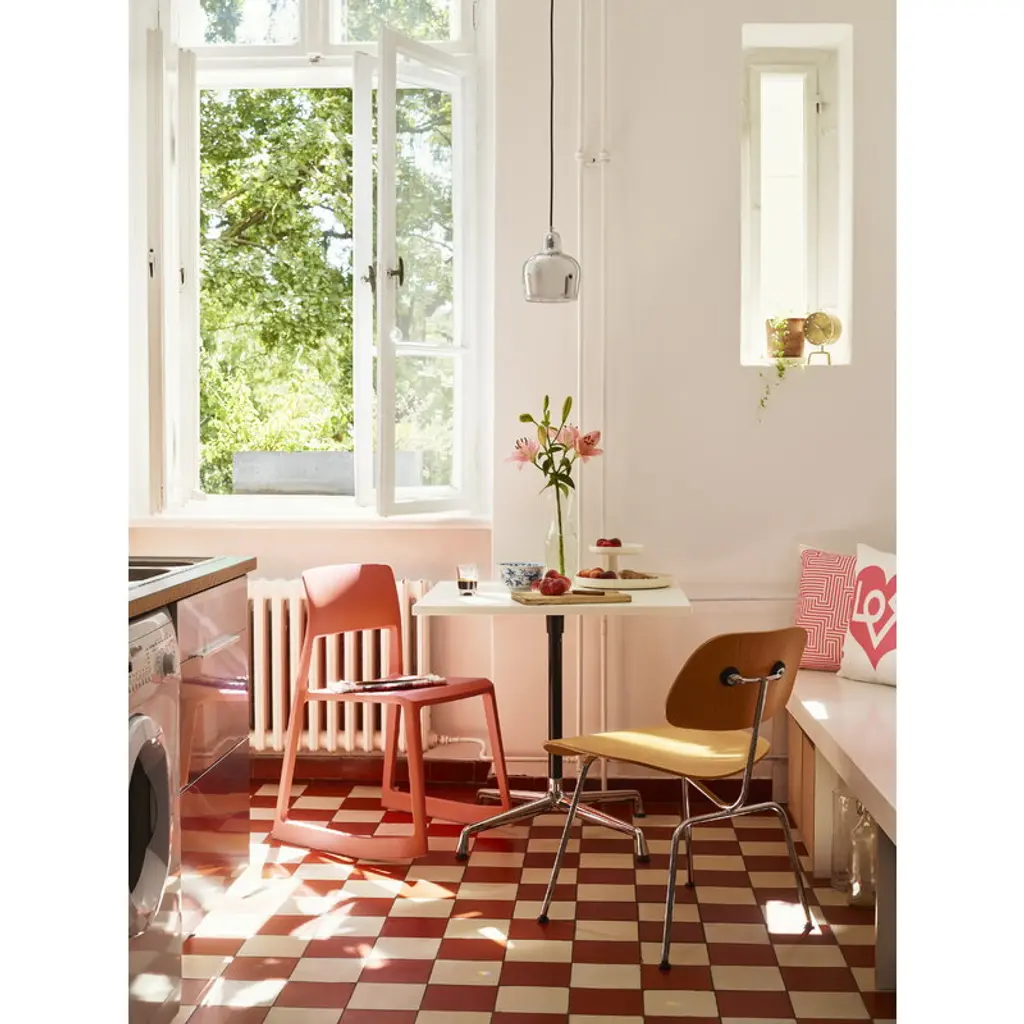 Vitra’s Tip Ton RE is a special edition of Edward Barber's and Jay Osgerby's Tip Ton chair: it is made entirely of recycled plastic. The eco-friendly material derives from post-consumer recycled plastic, namely plastic packaging from household waste. Due to the innovative material, Tip Ton RE is suitable for outdoor use and 100 % recyclable. The Tip Ton chair catches the eye with its special base structure that allows the chair to be tilted a few degrees forward. According to the research conducted at the ETH Zürich University in Switzerland, a seating pose that slightly reaches forward actives back and stomach muscles and thus helps the body to get more oxygen. Designed by Edward Barber and Jay Osgerby, Tip Ton will find its place at the office, kitchen or elsewhere in the house, and it is available in a wide range of different colors.