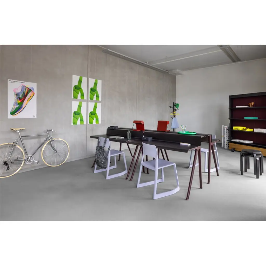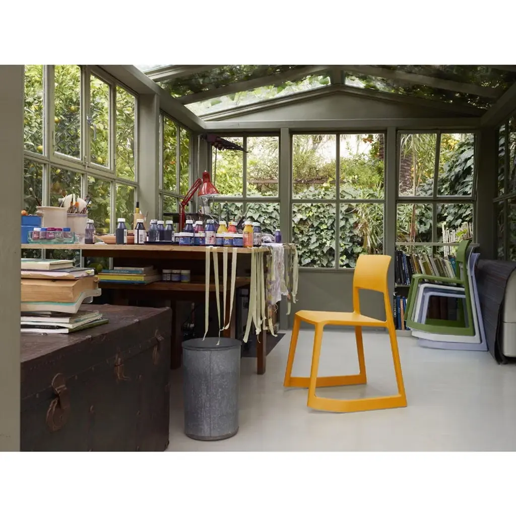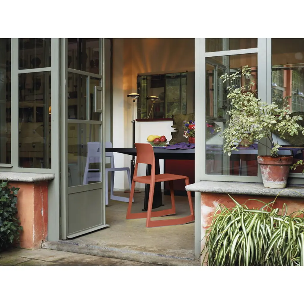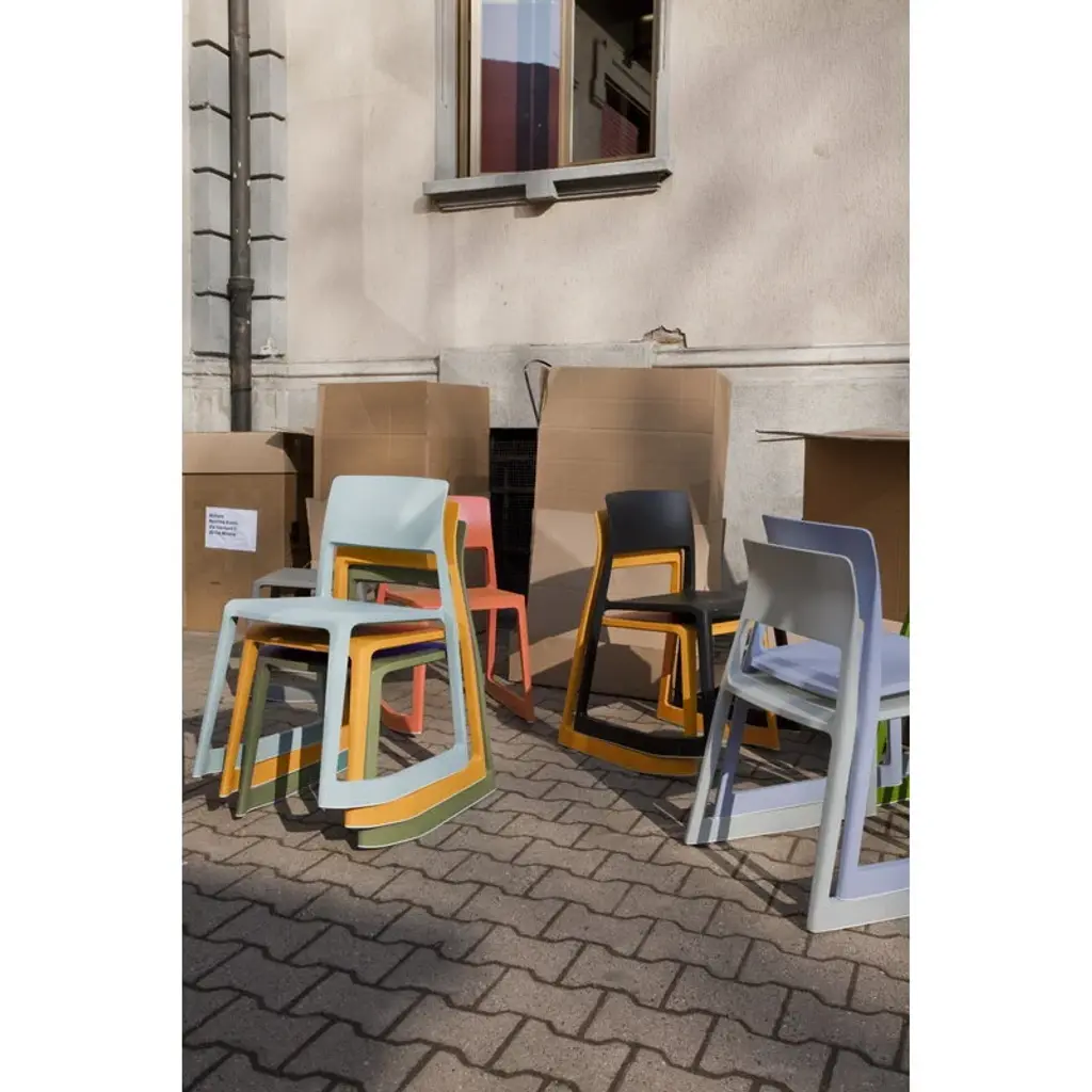 Vitra’s Tip Ton RE is a special edition of Edward Barber's and Jay Osgerby's Tip Ton chair: it is made entirely of recycled plastic. The eco-friendly material derives from post-consumer recycled plastic, namely plastic packaging from household waste. Due to the innovative material, Tip Ton RE is suitable for outdoor use and 100 % recyclable. The Tip Ton chair catches the eye with its special base structure that allows the chair to be tilted a few degrees forward. According to the research conducted at the ETH Zürich University in Switzerland, a seating pose that slightly reaches forward actives back and stomach muscles and thus helps the body to get more oxygen. Designed by Edward Barber and Jay Osgerby, Tip Ton will find its place at the office, kitchen or elsewhere in the house, and it is available in a wide range of different colors.