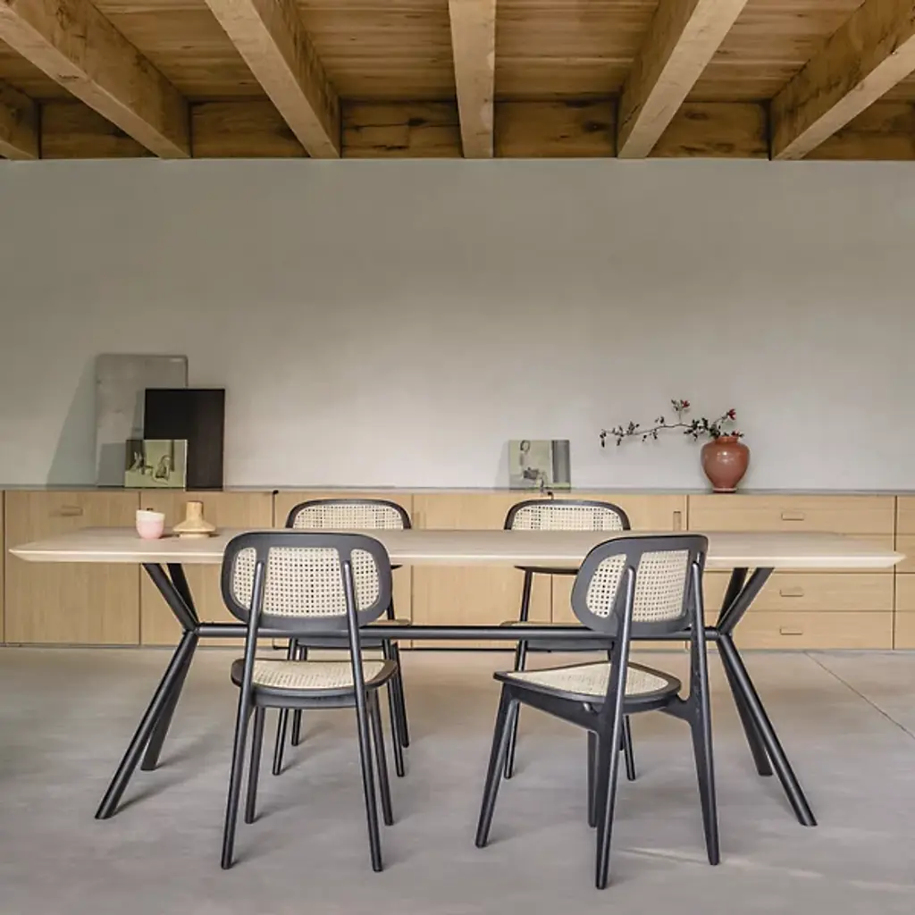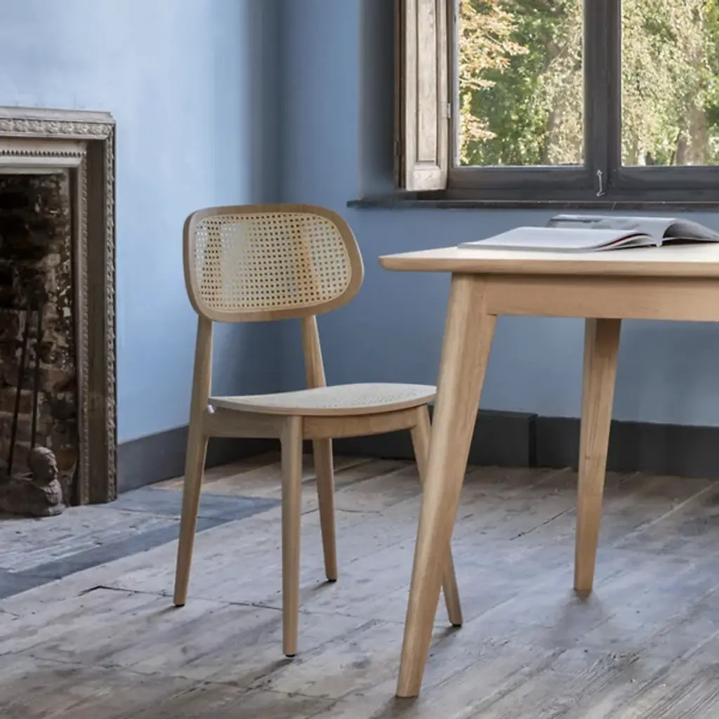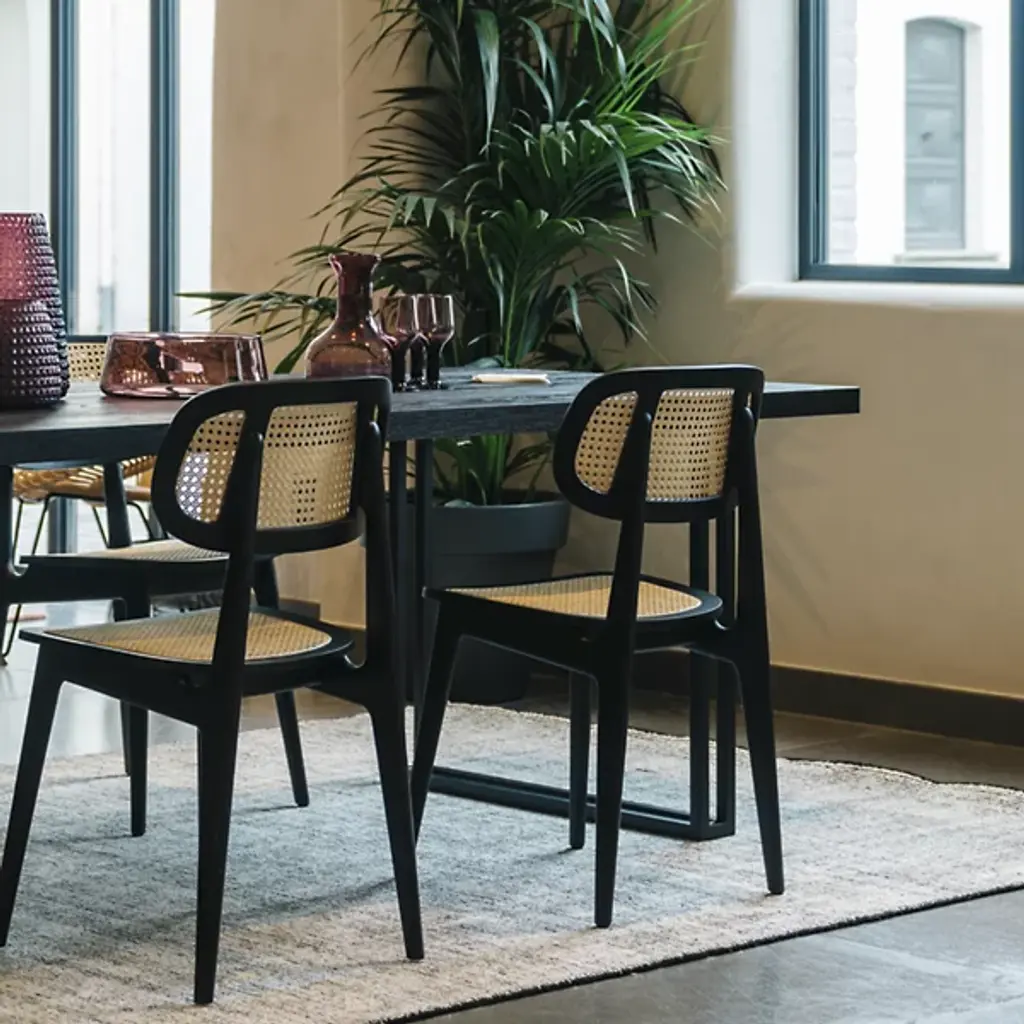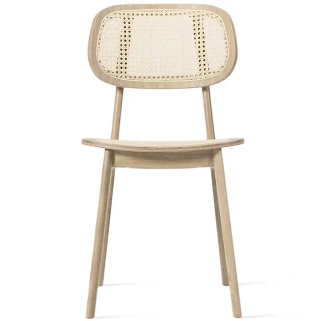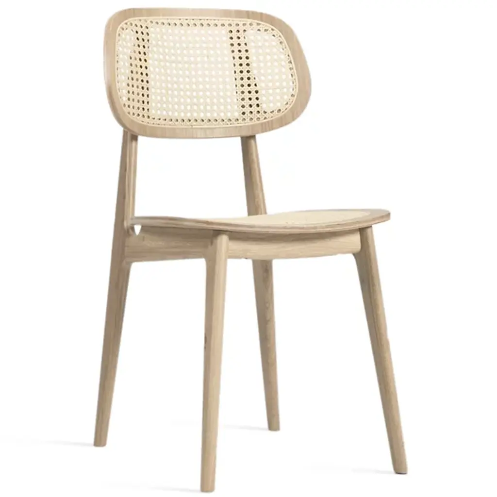 Change the look and feel of your dining room space with the Titus Dining Chair by Vincent Sheppard. This redefine version of a typical dining chair is sure to make a big statement. Built with a solid oak frame and caned weave seat/backing, you always be comfortable while seated. This indoor-only chairs boasts a rich oak veneer finish that makes for a sharp look. Use this contemporary-style dining chair to enjoy meals with family and friends alike.