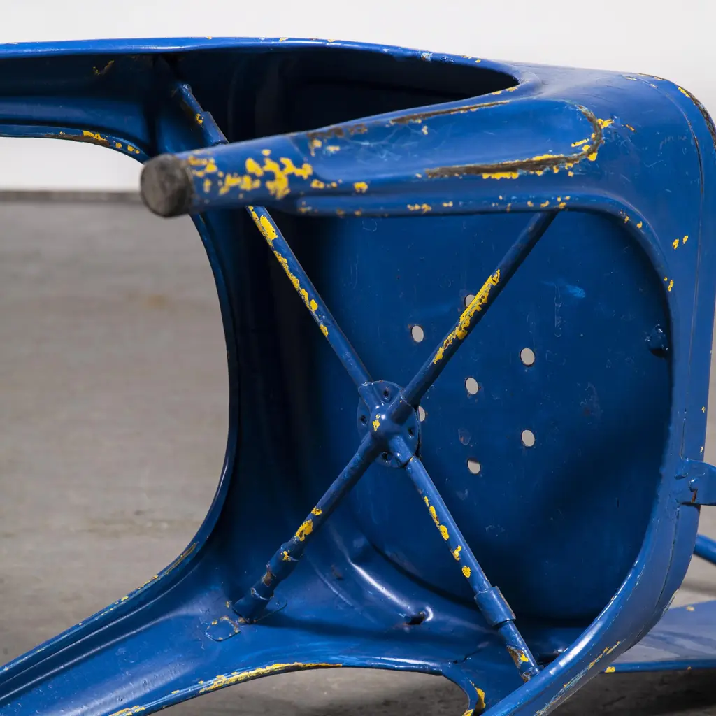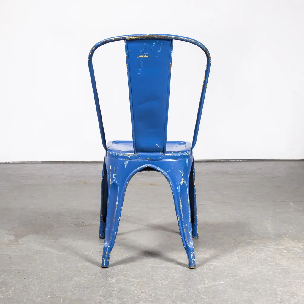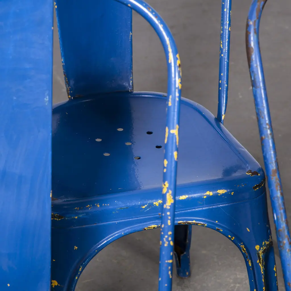 1950’s original tolix model a dining outdoor chairs – large quantities available. Tolix is one of our all time favourite companies. In 1907 frenchman xavier pauchard discovered that he could protect sheet metal from rusting by dipping it in molten zinc (galvanisation) and a few years later he set up his factory producing steel furniture. Tolix was the creator and founder of perhaps the most iconic cafe chair of all time, the tolix model a, designed in 1934 and sadly now copied worldwide. We have a large batch of original a chairs in great condition, originally the chairs were painted yellow and they have at some stage been overpainted in a stunning sea blue allowing hints of the original yellow to pop through. Stunning chairs full of character. Seat height: 44cm workshop report our workshop team inspect every product and carry out any needed repairs to ensure that everything leaves us serviced and maintained ready for many more years of life. All of our vintage products show the rich beauty and history of their life with the knocks and bumps of many years of use and we try to minimise restoration to keep every piece as original as possible. This piece is attributed to the mentioned designer/maker. It has no attribution mark and no official proof of authenticity, however it is well documented in design history. I take full responsibility for any authenticity issues arising from misattribution