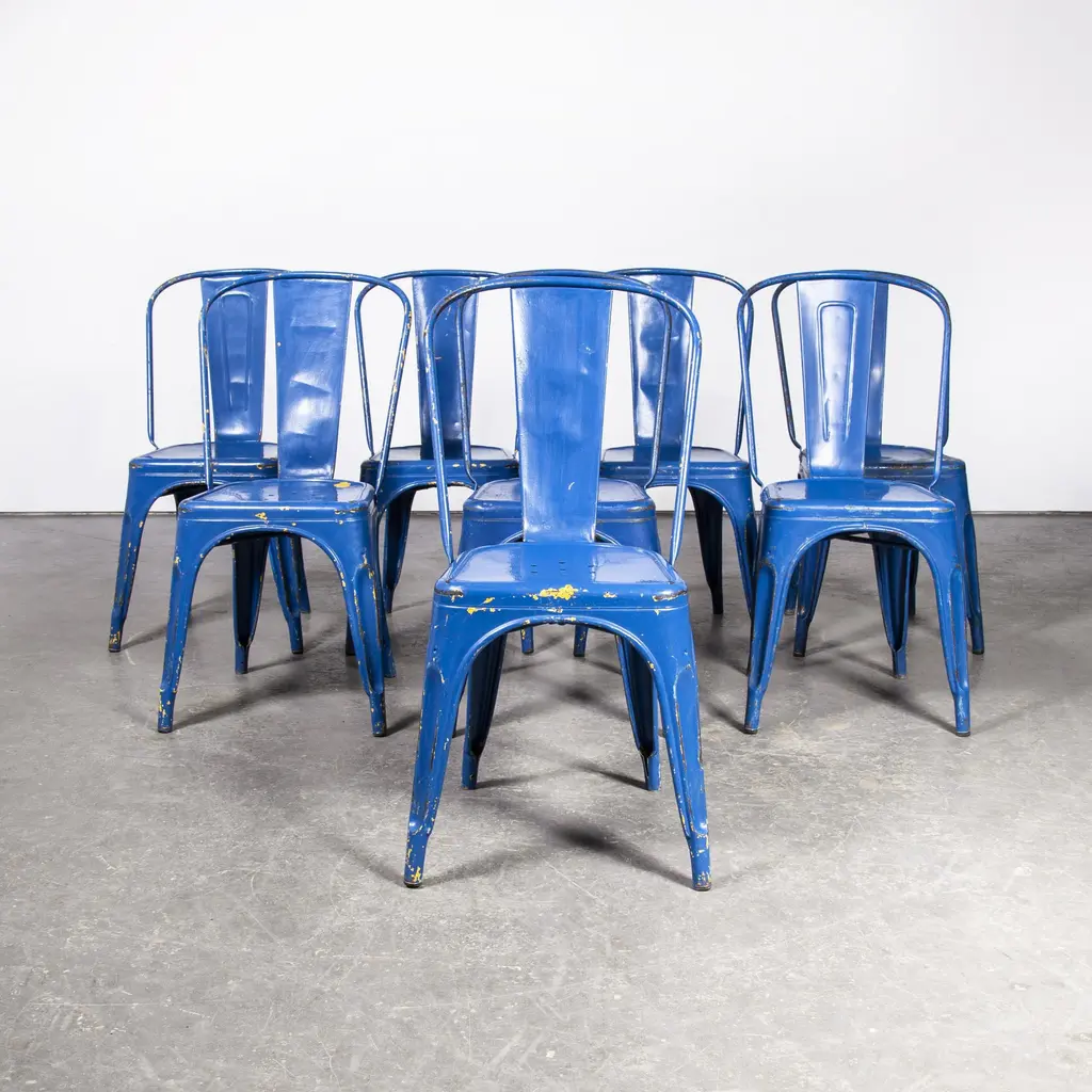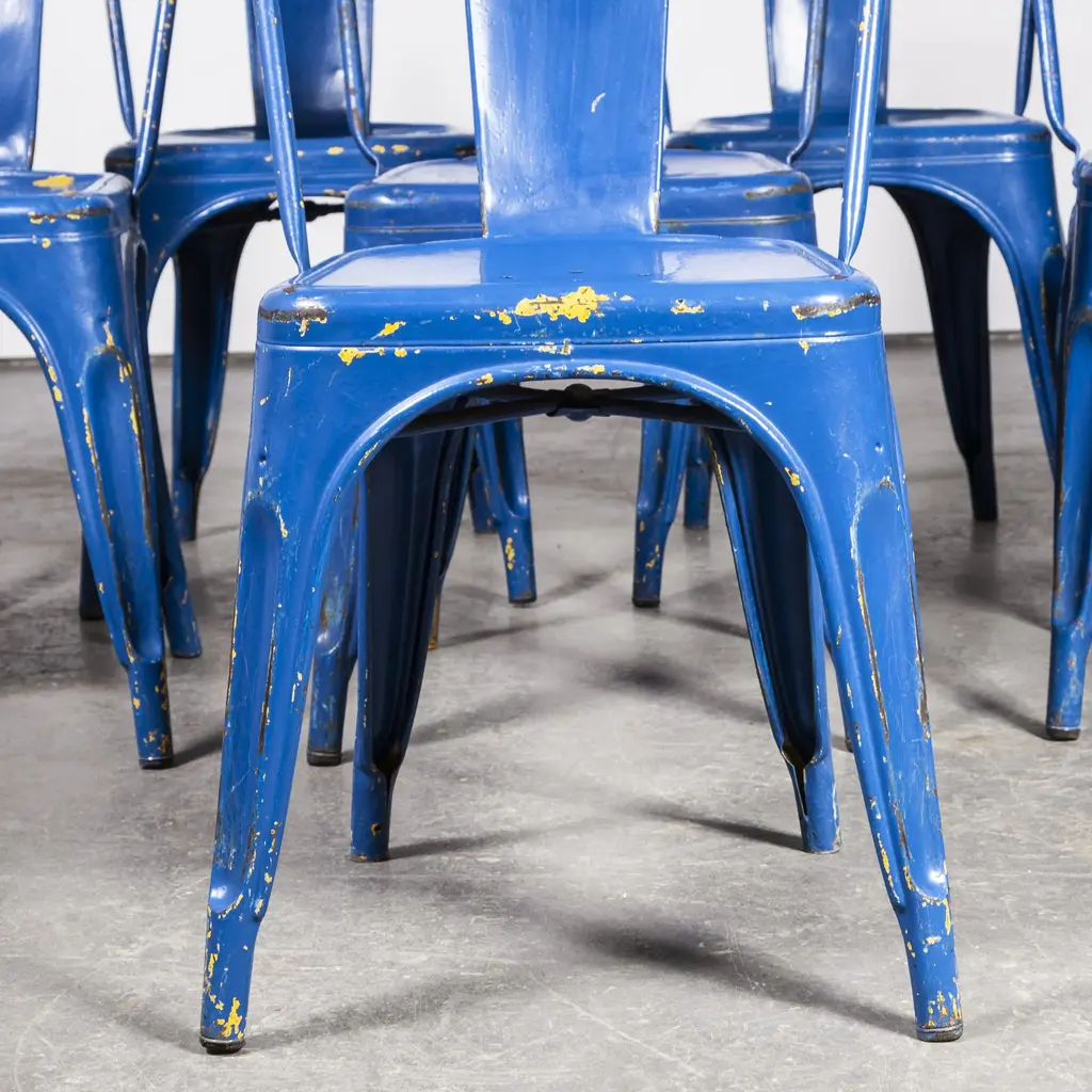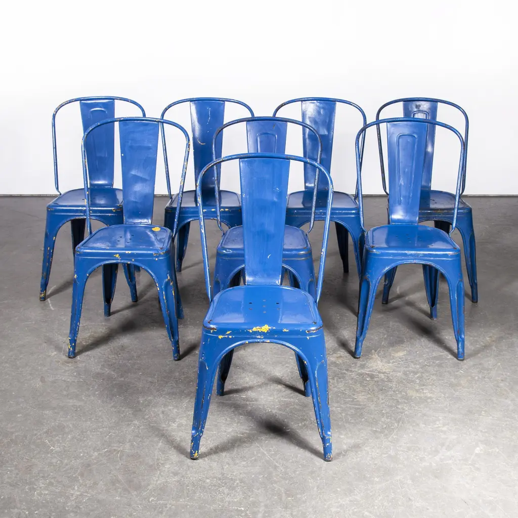1950’s original tolix model a dining outdoor chairs – large quantities available. Tolix is one of our all time favourite companies. In 1907 frenchman xavier pauchard discovered that he could protect sheet metal from rusting by dipping it in molten zinc (galvanisation) and a few years later he set up his factory producing steel furniture. Tolix was the creator and founder of perhaps the most iconic cafe chair of all time, the tolix model a, designed in 1934 and sadly now copied worldwide. We have a large batch of original a chairs in great condition, originally the chairs were painted yellow and they have at some stage been overpainted in a stunning sea blue allowing hints of the original yellow to pop through. Stunning chairs full of character. Seat height: 44cm workshop report our workshop team inspect every product and carry out any needed repairs to ensure that everything leaves us serviced and maintained ready for many more years of life. All of our vintage products show the rich beauty and history of their life with the knocks and bumps of many years of use and we try to minimise restoration to keep every piece as original as possible. This piece is attributed to the mentioned designer/maker. It has no attribution mark and no official proof of authenticity, however it is well documented in design history. I take full responsibility for any authenticity issues arising from misattribution