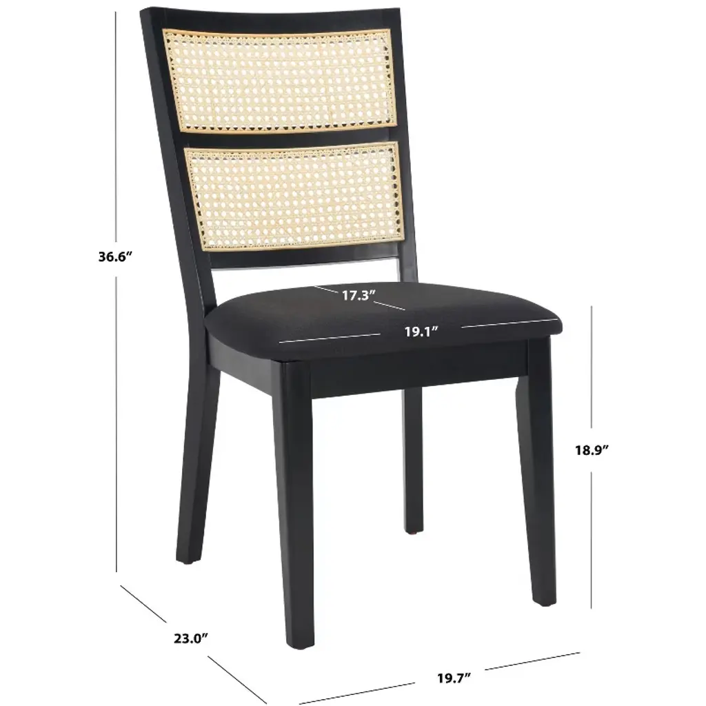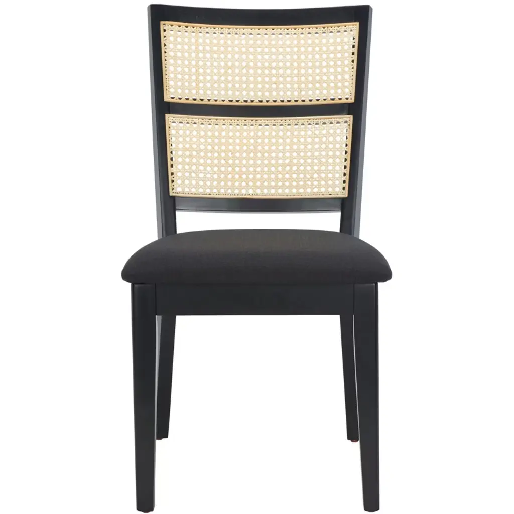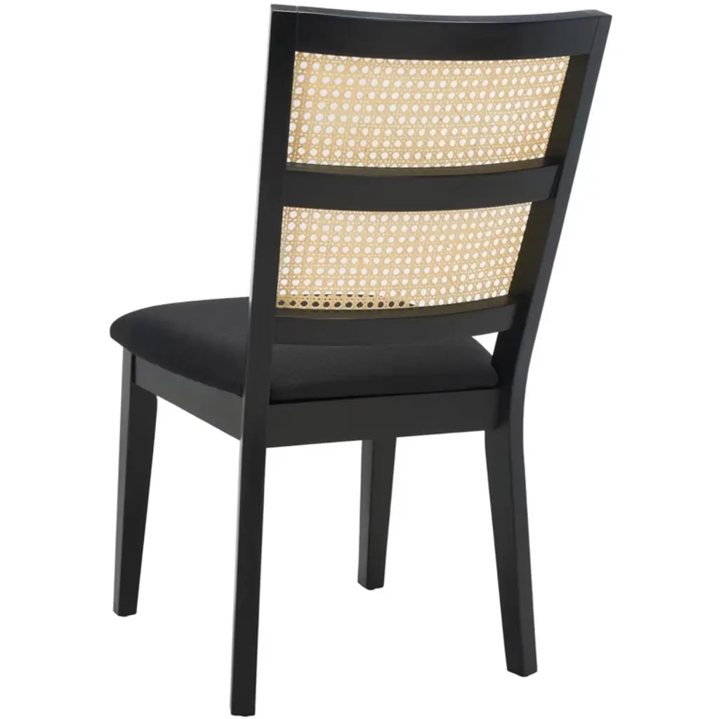 Introducing the Toril Dining Chair, where elegance meets functionality. This stunning piece features a sleek black frame, seamlessly paired with a black upholstered seat that elevates any dining space. The natural cane detailing adds a touch of grace, making it a standout addition to your home. Crafted with care, the chair's wood frame provides solid support, while the polyester seat ensures comfort during long mealtimes. Whether hosting a dinner party or enjoying a quiet meal, the Toril Dining Chair fits effortlessly into any setting. Its understated design and thoughtful craftsmanship make it a versatile choice for those looking to enhance their dining area. Embrace the perfect blend of style and functionality with the Toril Dining Chair and transform your dining experience.