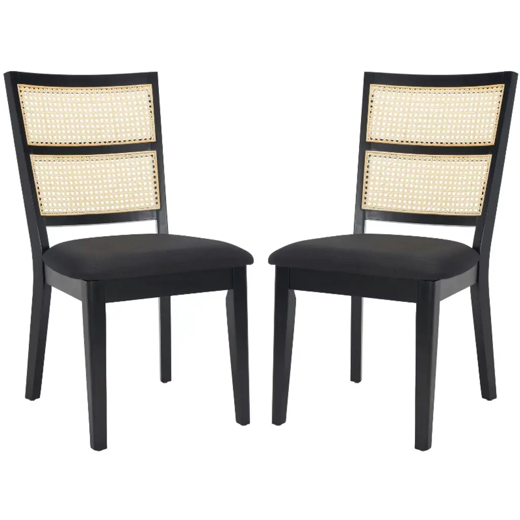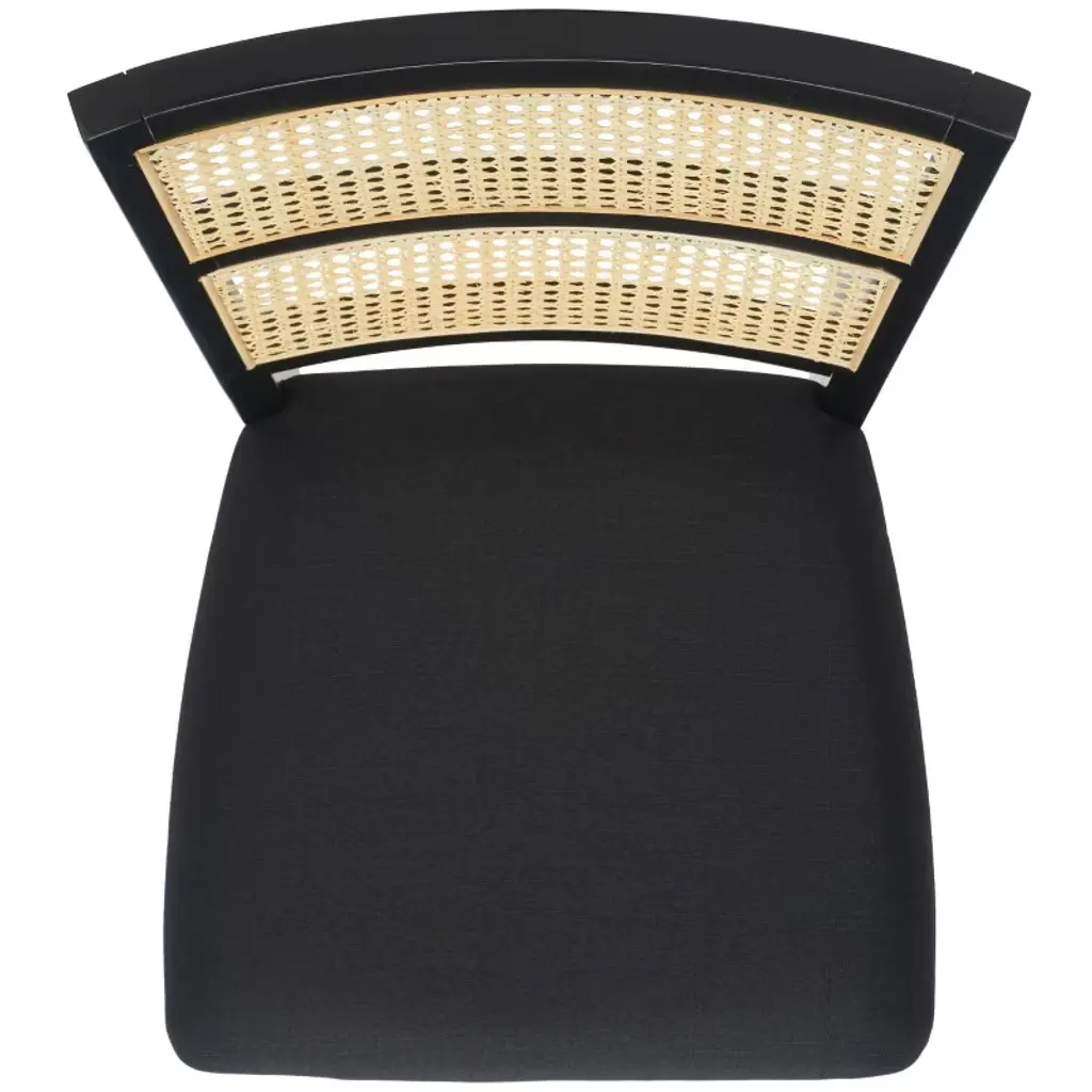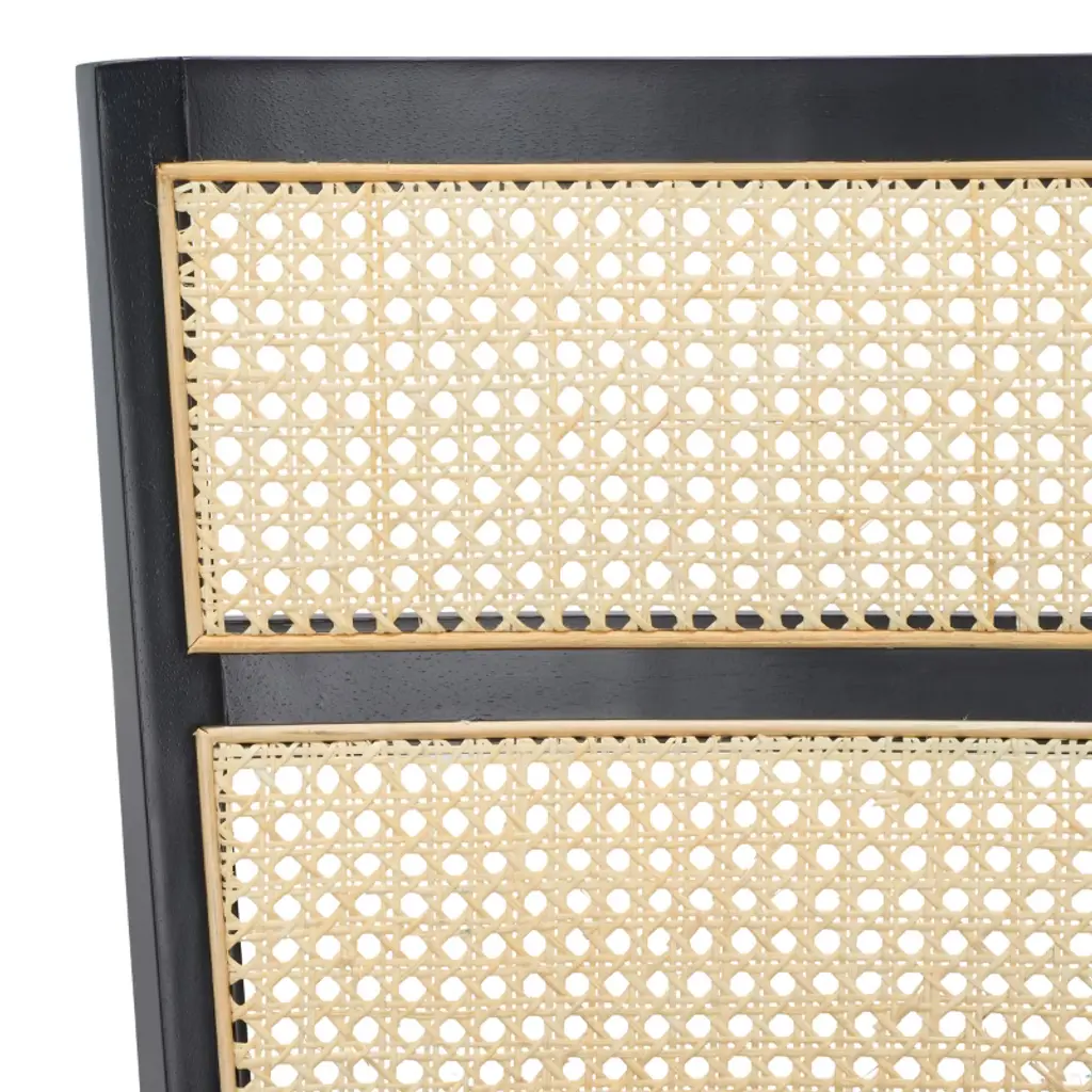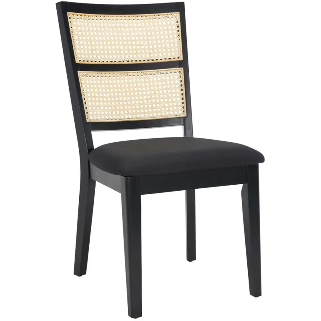Introducing the Toril Dining Chair, where elegance meets functionality. This stunning piece features a sleek black frame, seamlessly paired with a black upholstered seat that elevates any dining space. The natural cane detailing adds a touch of grace, making it a standout addition to your home. Crafted with care, the chair's wood frame provides solid support, while the polyester seat ensures comfort during long mealtimes. Whether hosting a dinner party or enjoying a quiet meal, the Toril Dining Chair fits effortlessly into any setting. Its understated design and thoughtful craftsmanship make it a versatile choice for those looking to enhance their dining area. Embrace the perfect blend of style and functionality with the Toril Dining Chair and transform your dining experience.