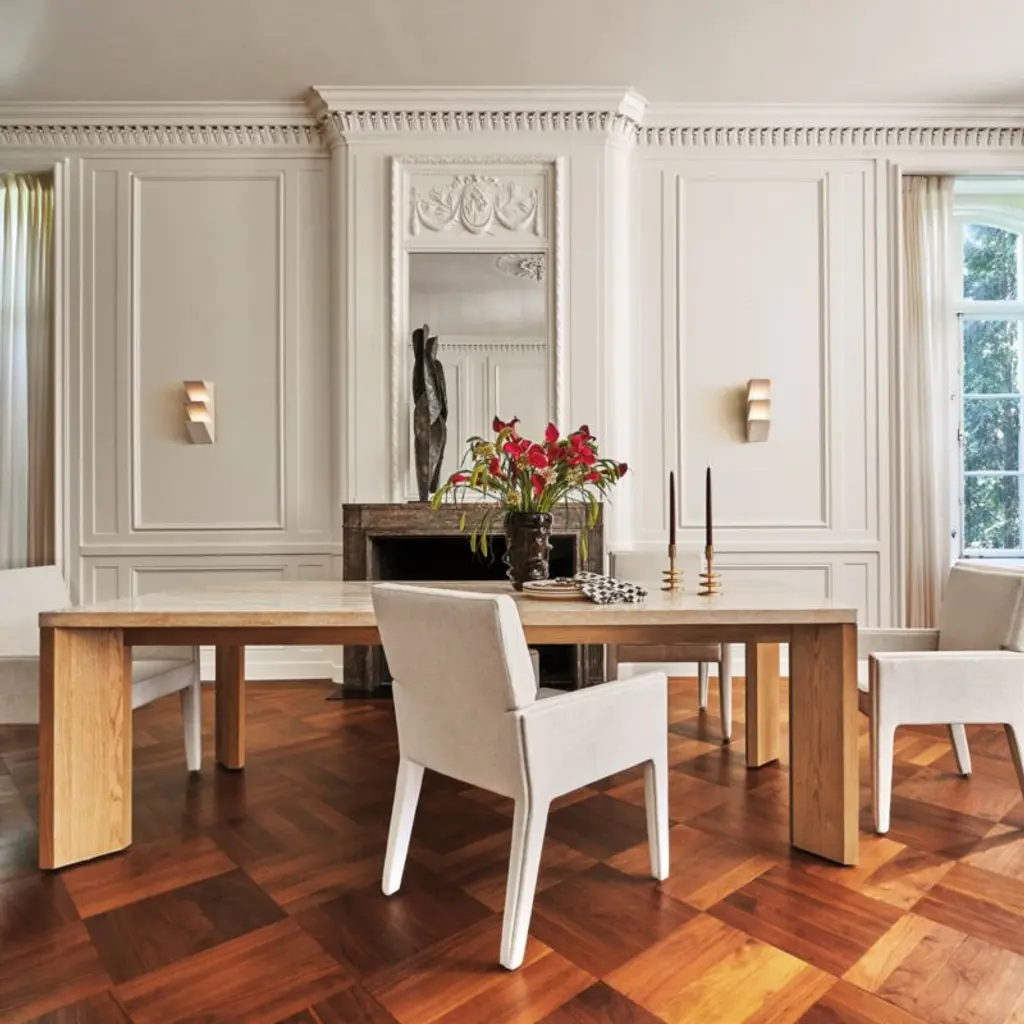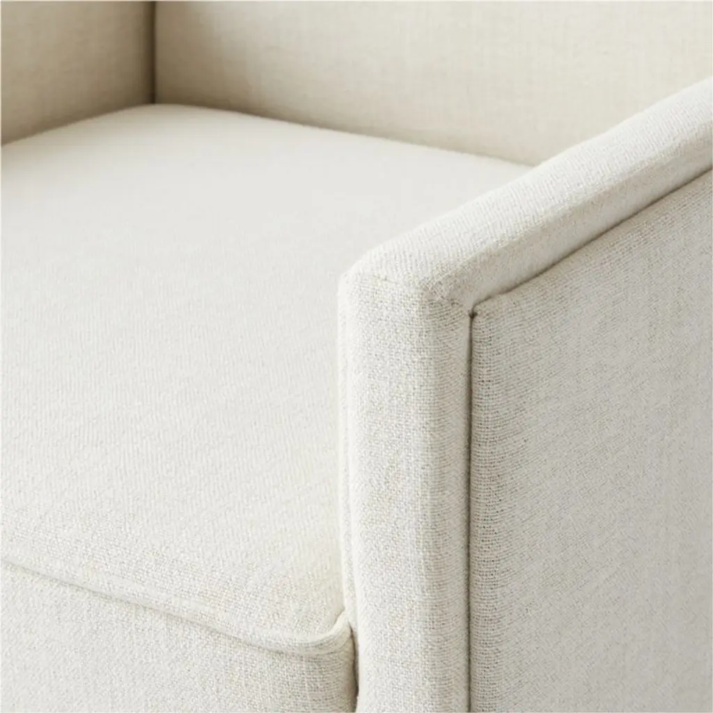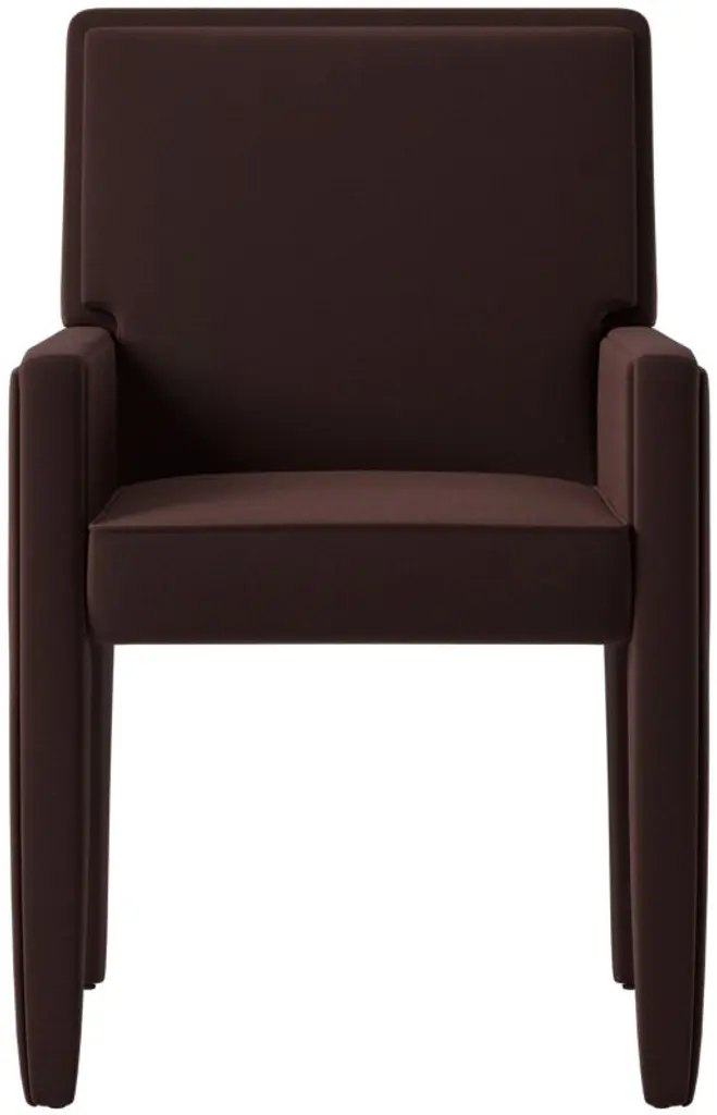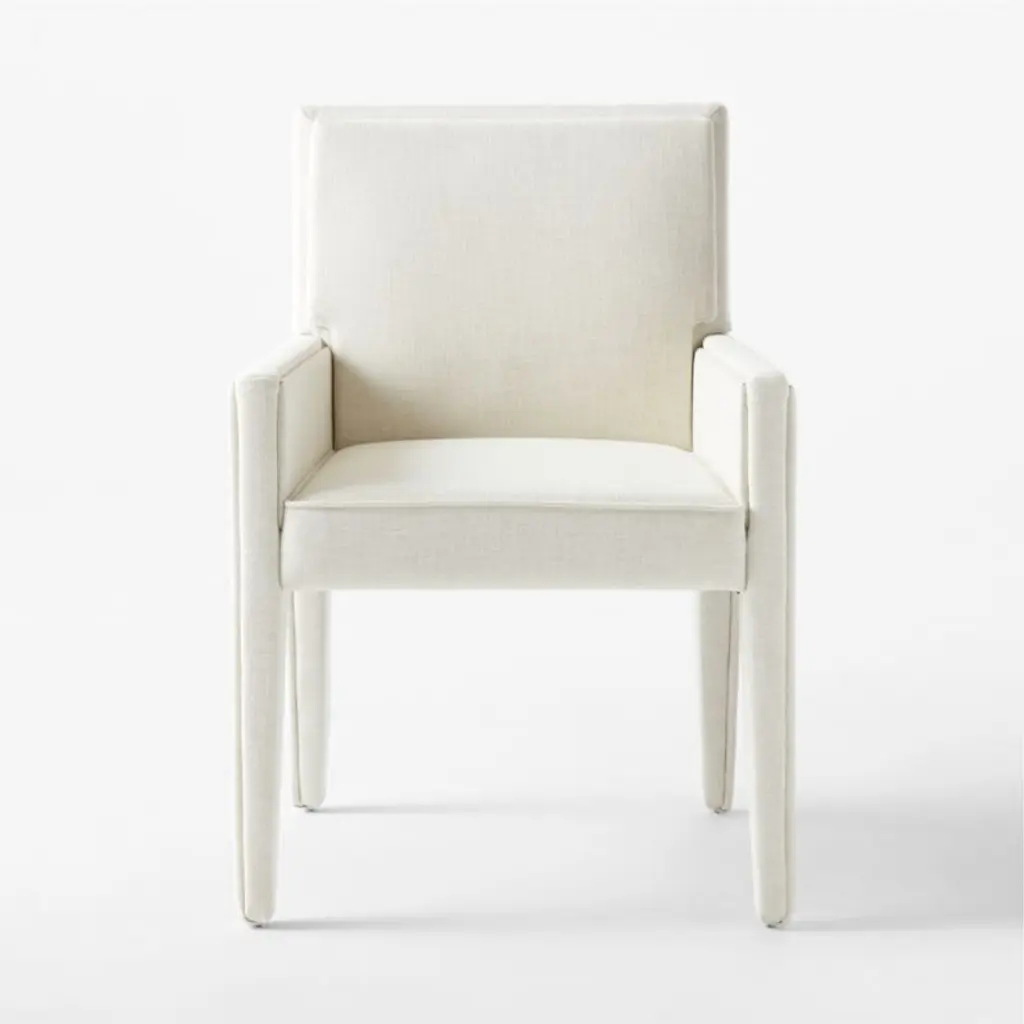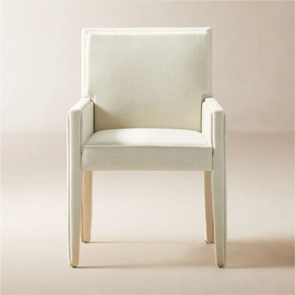 Upholstered dining armchair by Caleb Zipperer updates the formal dining chair silhouette for the modern dining room. The tall, upright back and cushioned seat are tailored and frame is crafted of wood certified sustainable by the Forest Stewardship Council (FSC). CB2 exclusive.