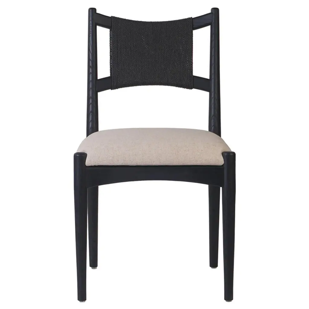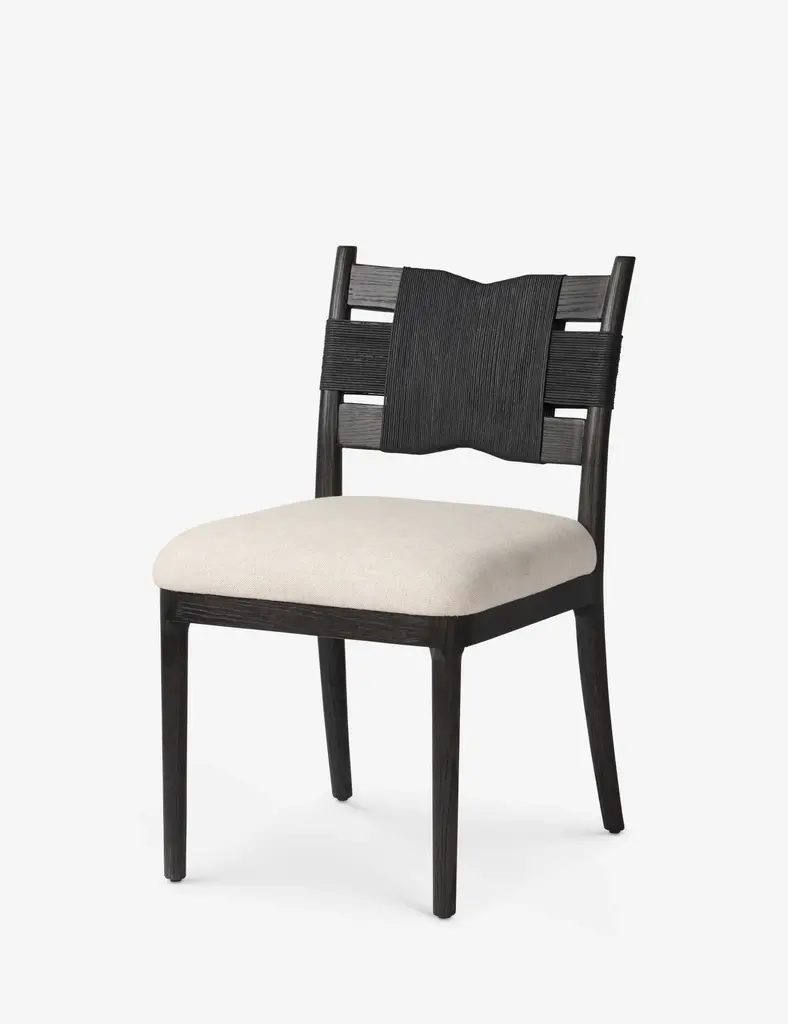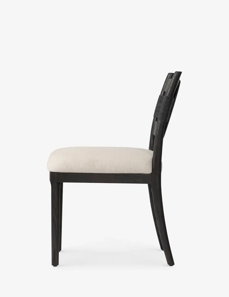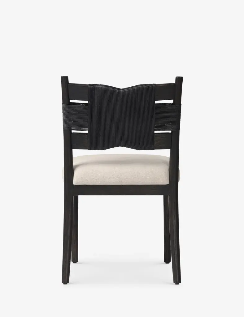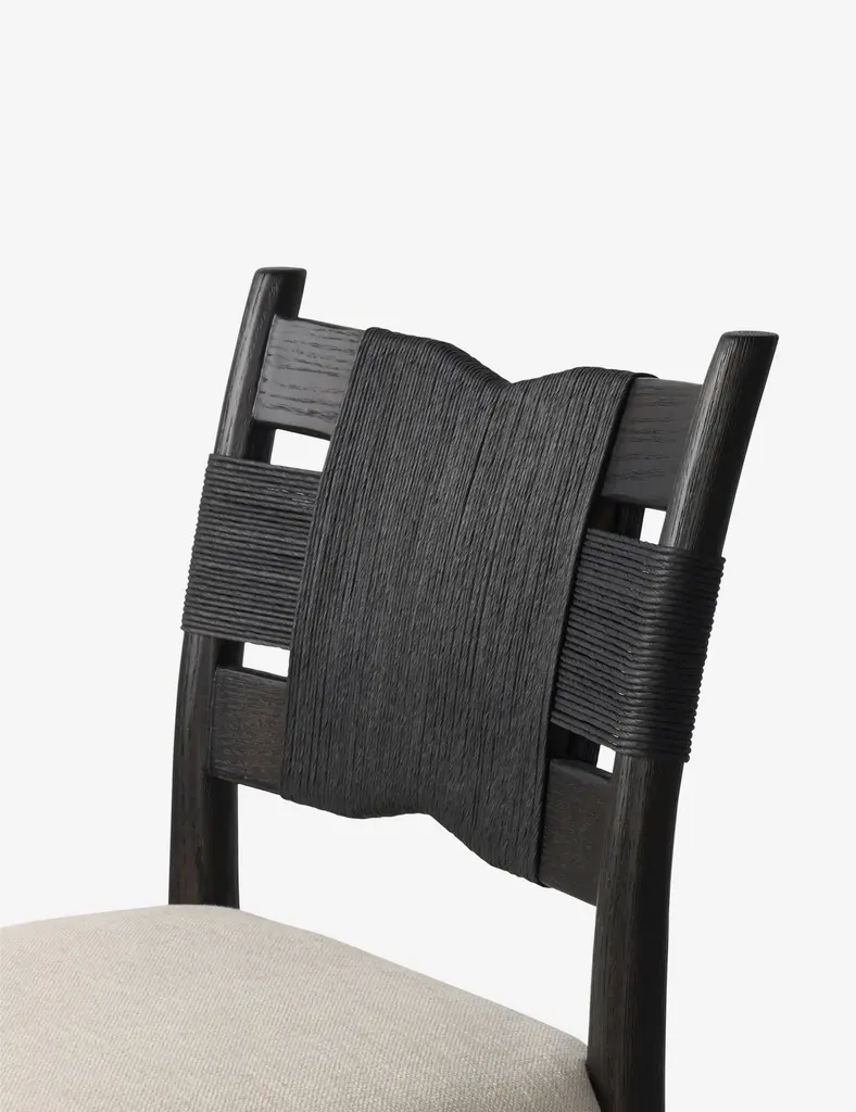 Four Hands brings their exceptional craftsmanship to a timeless collection rooted in Amber Lewis' perennial California style. A wrapped cord back brings a fresh dimension to a classic silhouette in the Tova dining chairstyling an elegant look for transitional appeal. This cushioned dining seat is upholstered in a natural fiber blend for the perfect touch of comfort at your table.
