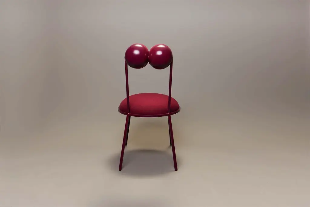 Trevor Chair Dark Red Frame And Wool By Lara Bohinc