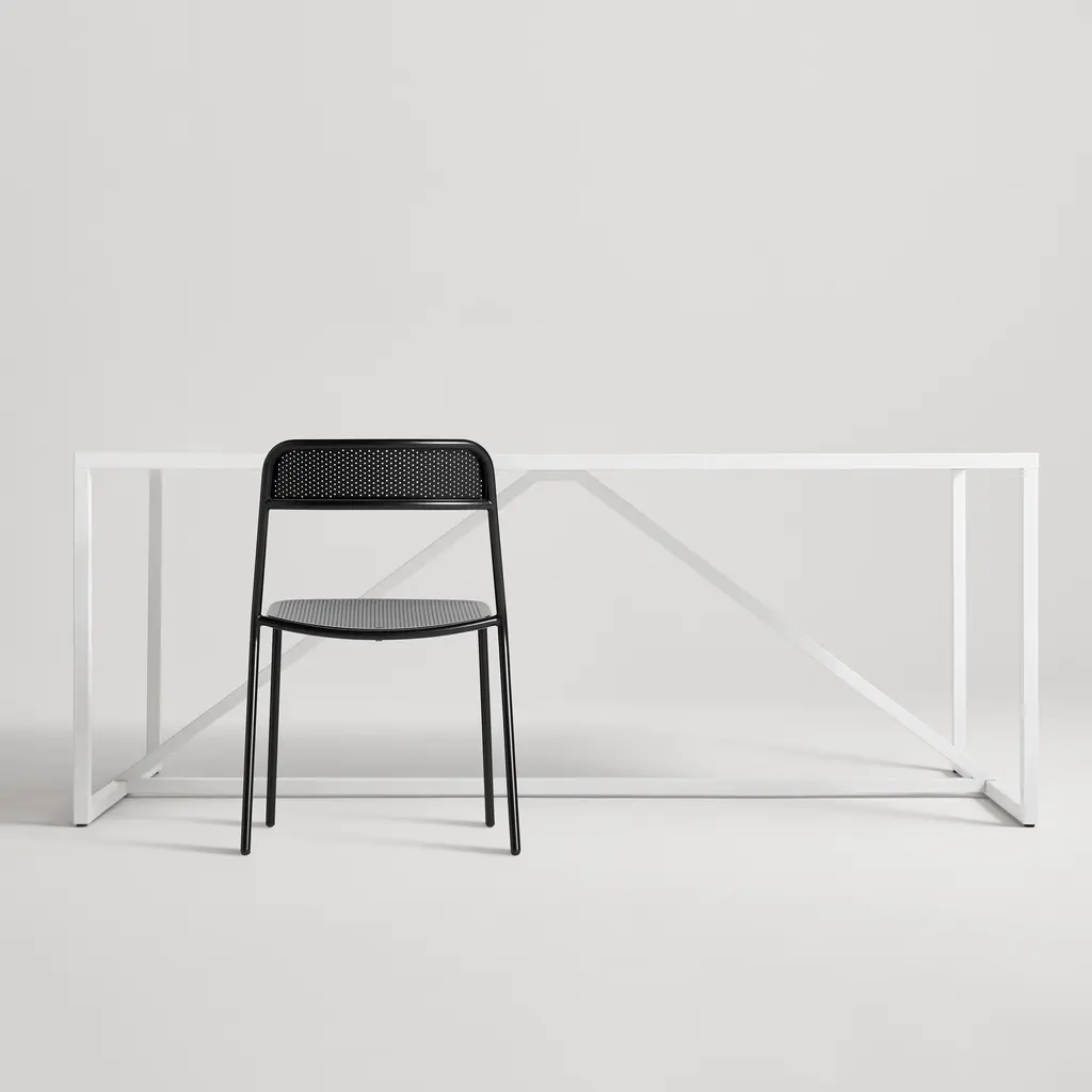 Elevate your outdoor dining experience with the Trim Armless Dining Chair from Blu Dot. With clean lines and sophisticated geometry, this chair is far from basic. The minimal design is complemented by a perforated seat and back, adding an elegant touch to your alfresco gatherings. Weather-resistant and visually stunning, it's the perfect excuse to work, dine, or simply admire the view outdoors. Highlights