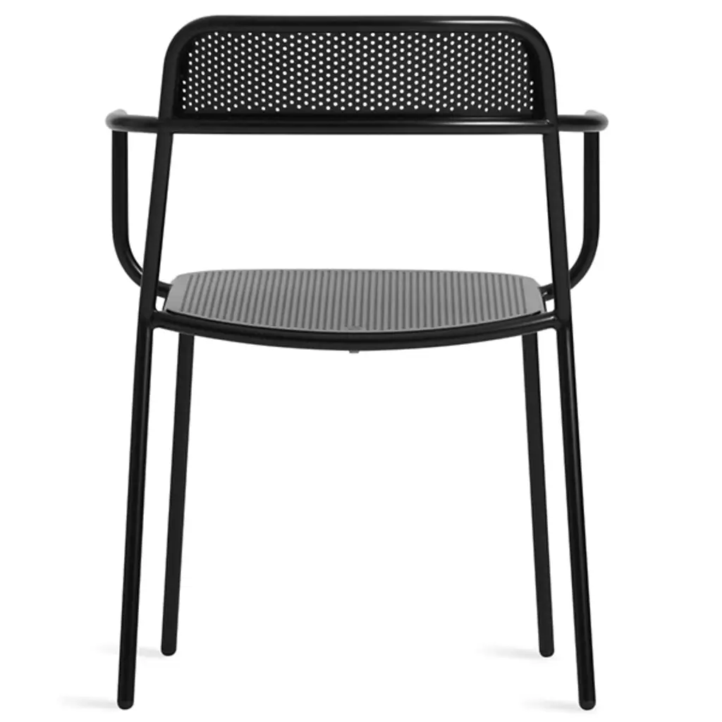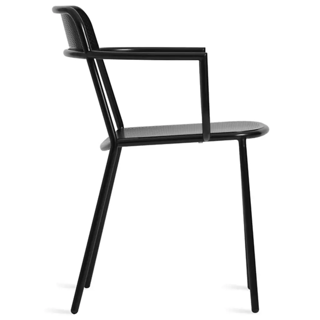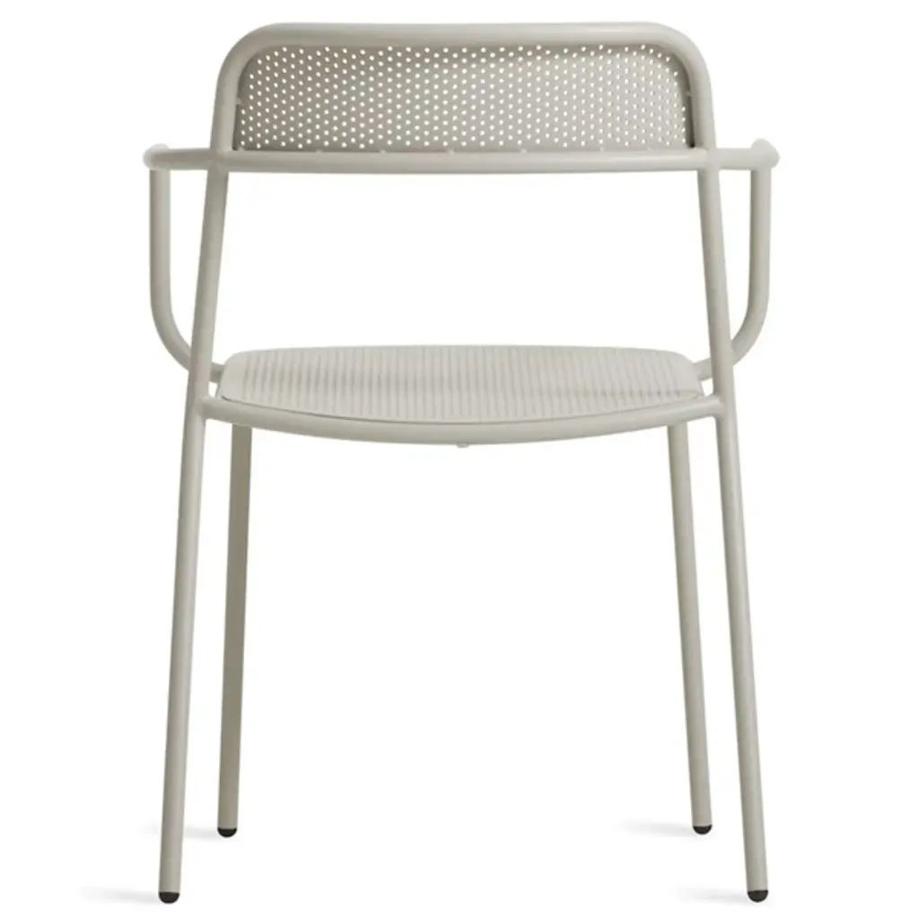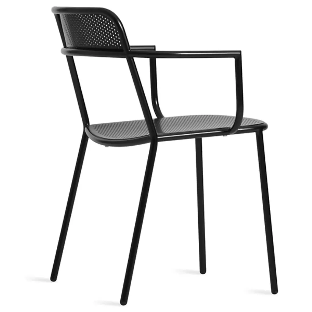 The Trim Dining Armchair from Blu Dot helps you feel and look cool even on the sunniest day. A perforated pattern hugs the upper and lower body, letting a gentle breeze pass through. This pattern highlights the chair’s clean style. Made from powder-coated steel, the trim structure translates to an eye-catching linear silhouette. The bends and angle changes of the steel are designed for pure comfort, wrapping the body in soft curves. After your alfresco dinner has concluded, this stackable piece makes tidying up a neat affair.