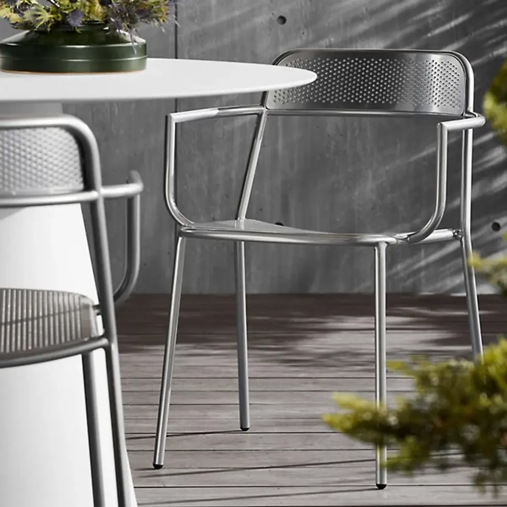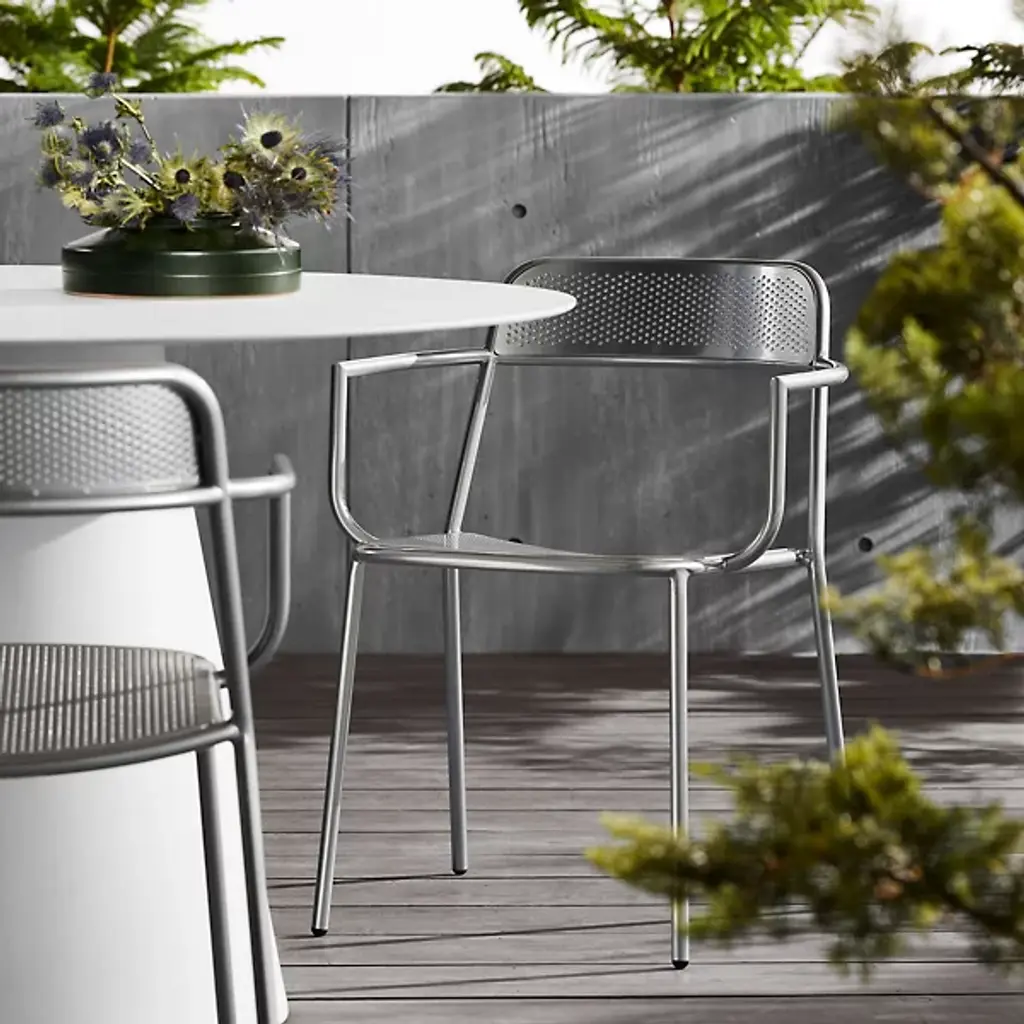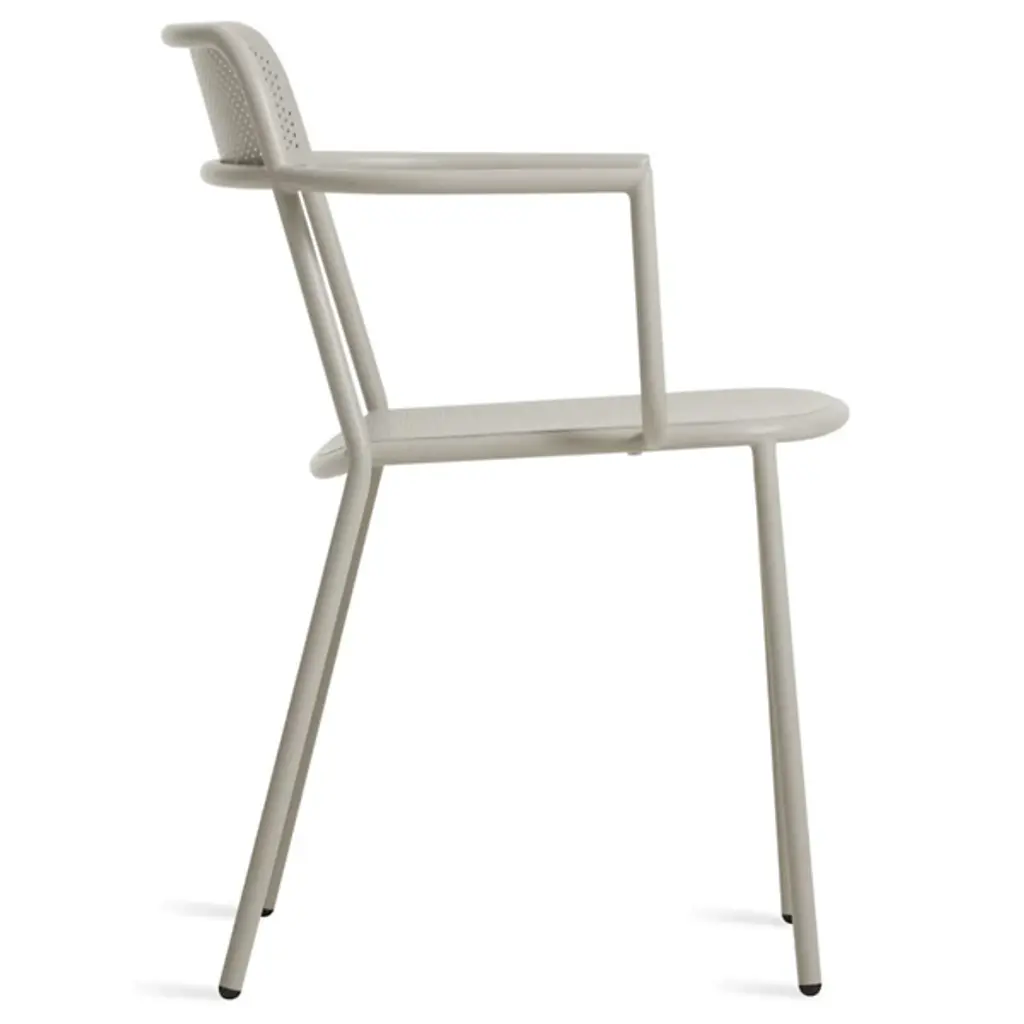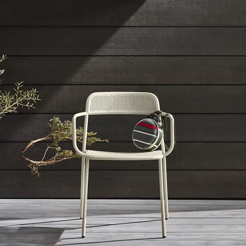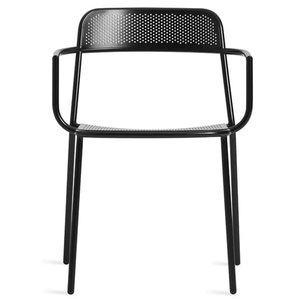 The Trim Dining Armchair from Blu Dot helps you feel and look cool even on the sunniest day. A perforated pattern hugs the upper and lower body, letting a gentle breeze pass through. This pattern highlights the chair’s clean style. Made from powder-coated steel, the trim structure translates to an eye-catching linear silhouette. The bends and angle changes of the steel are designed for pure comfort, wrapping the body in soft curves. After your alfresco dinner has concluded, this stackable piece makes tidying up a neat affair.