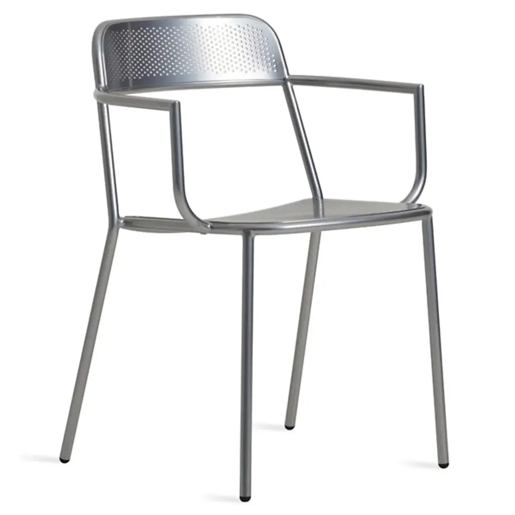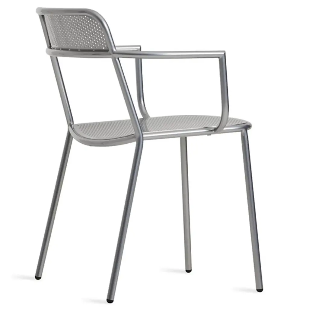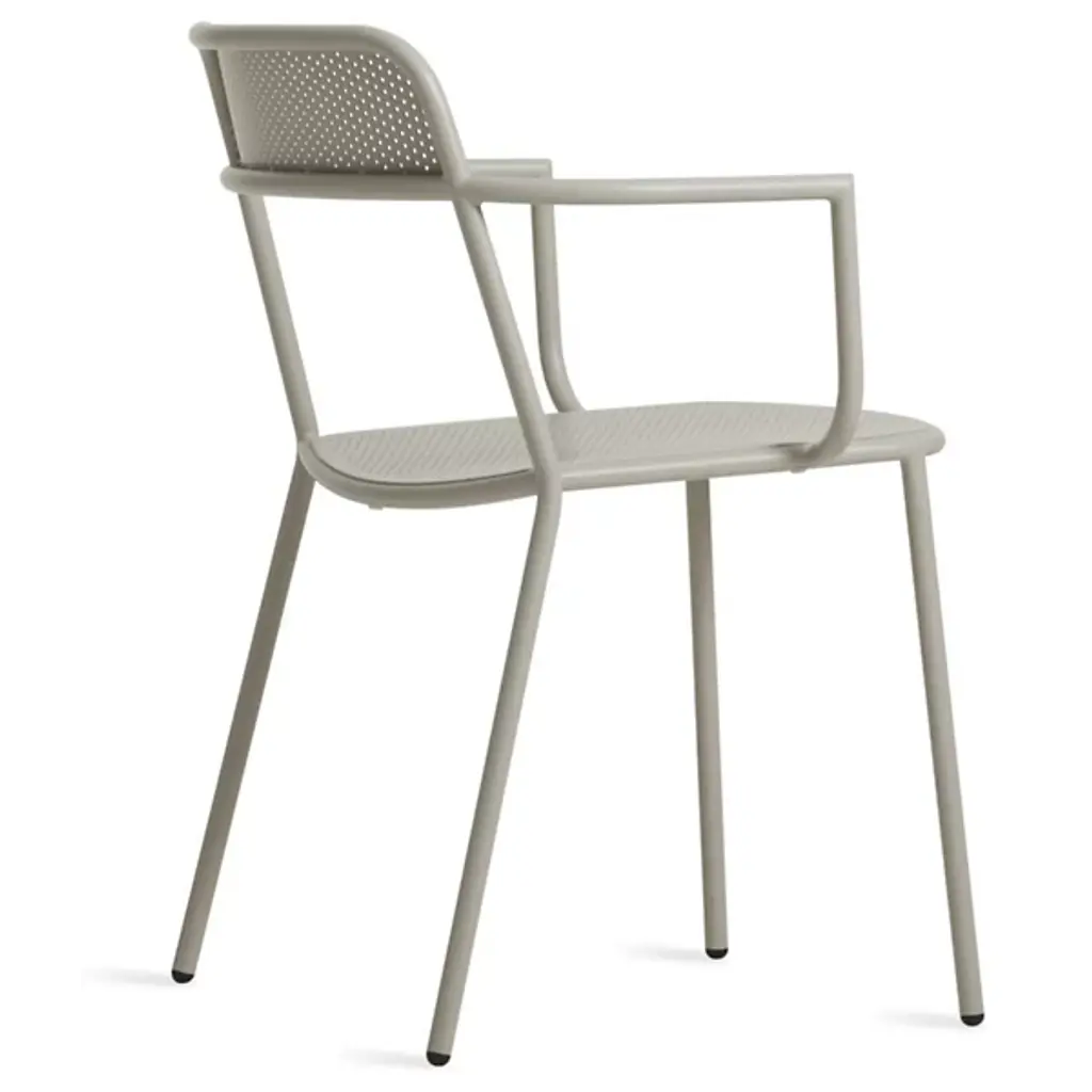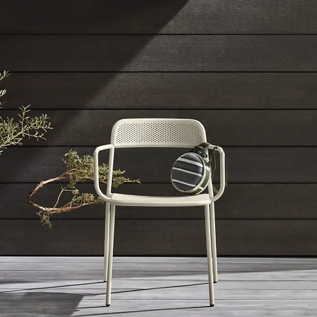 The Trim Dining Armchair from Blu Dot helps you feel and look cool even on the sunniest day. A perforated pattern hugs the upper and lower body, letting a gentle breeze pass through. This pattern highlights the chair’s clean style. Made from powder-coated steel, the trim structure translates to an eye-catching linear silhouette. The bends and angle changes of the steel are designed for pure comfort, wrapping the body in soft curves. After your alfresco dinner has concluded, this stackable piece makes tidying up a neat affair.