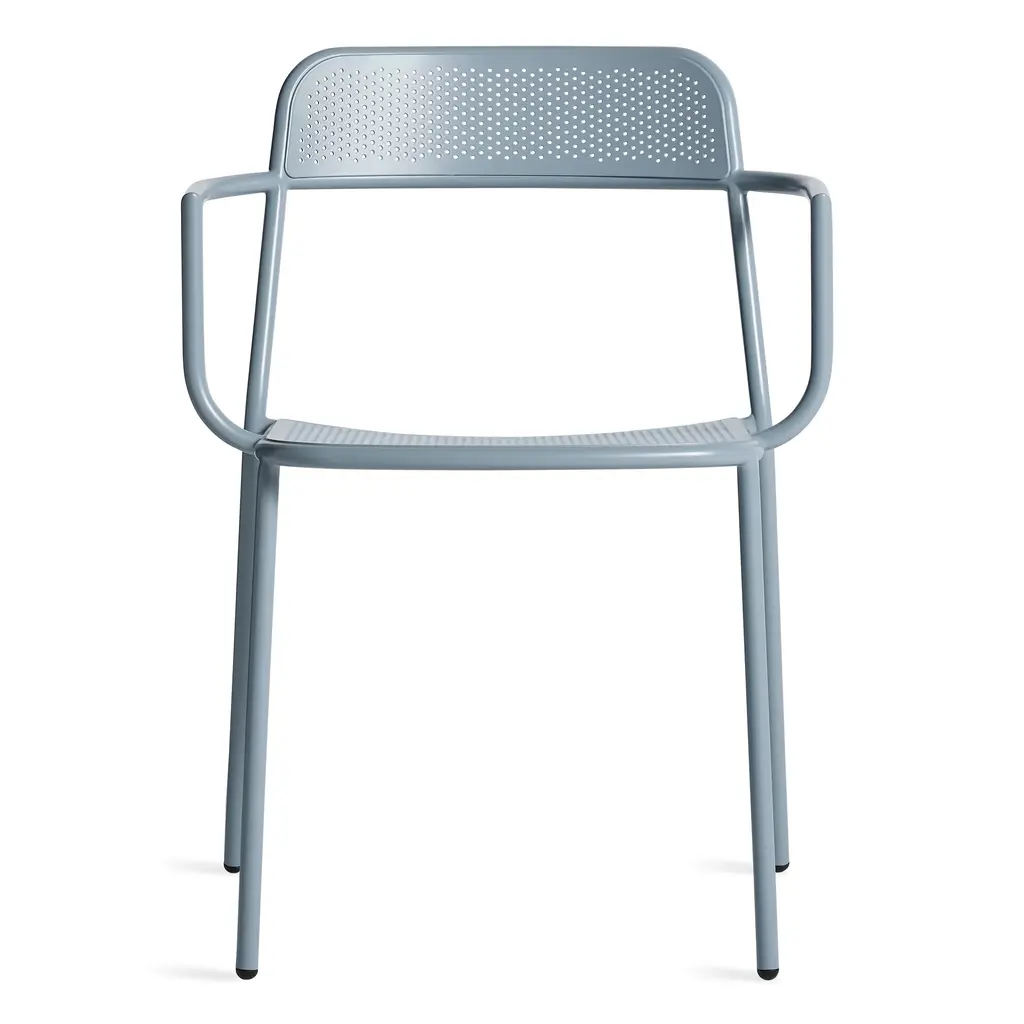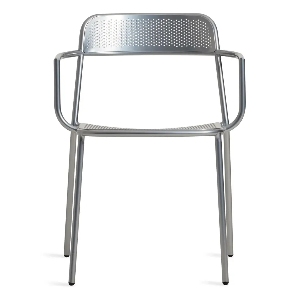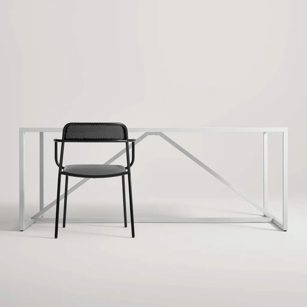 Just when you think all the chairs have been designed. Whatever you do do not call it basic. Clean lines and sophisticated geometry form a minimal outdoor chair that is everything it is shaped up to be. Perforated seat and back detail apt for wowing guests and weathering the elements. Valid excuse to work dine and stare off into space alfresco. Features
