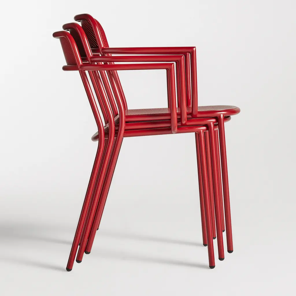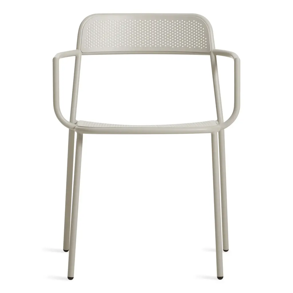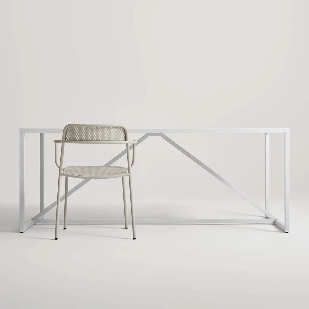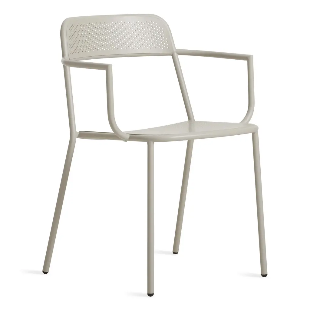 Just when you think all the chairs have been designed. Whatever you do do not call it basic. Clean lines and sophisticated geometry form a minimal outdoor chair that is everything it is shaped up to be. Perforated seat and back detail apt for wowing guests and weathering the elements. Valid excuse to work dine and stare off into space alfresco. Features