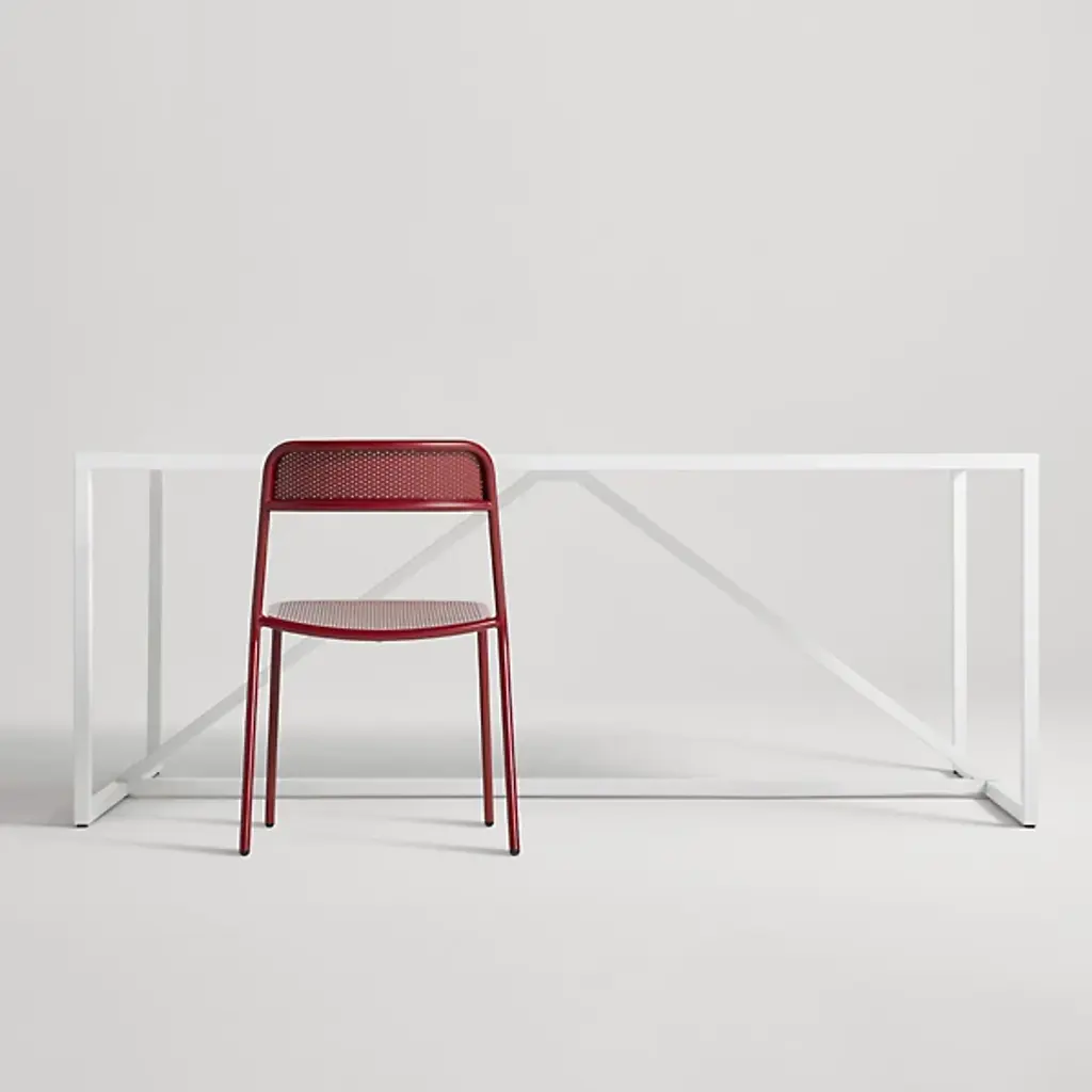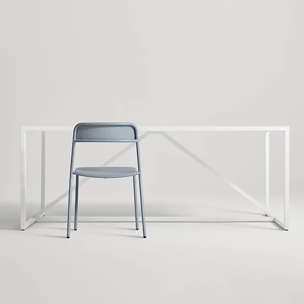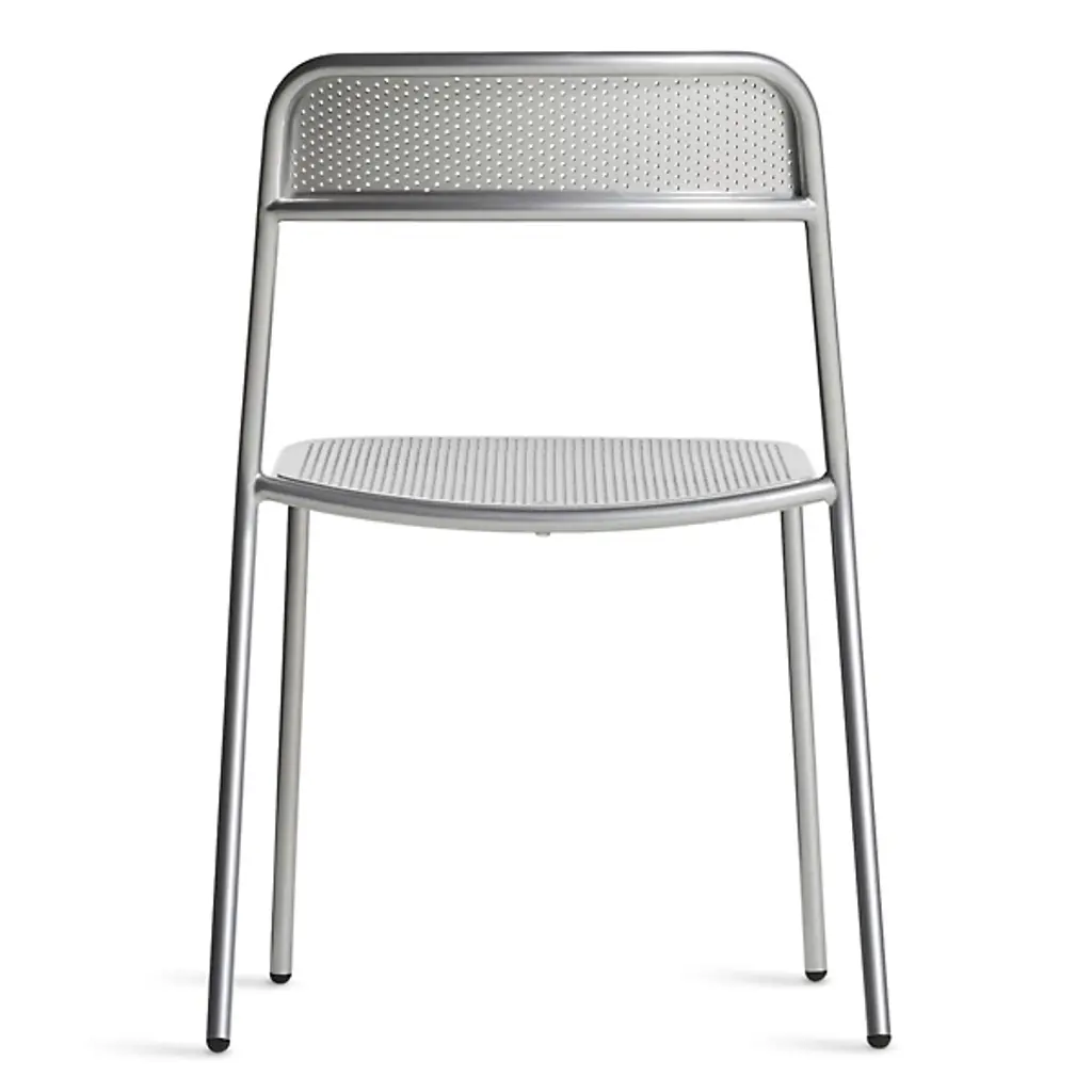 The Trim Dining Chair by Blu Dot combines minimalist elegance with everyday practicality, making it a standout addition to any outdoor space. Clean lines and a sleek geometric design offer a modern aesthetic that seamlessly blends form and function. The perforated seat and back not only provide visual interest but also enhance airflow for added comfort. Built to withstand the elements, this durable chair is perfect for dining, working, or relaxing outdoors, offering lasting style and versatility.