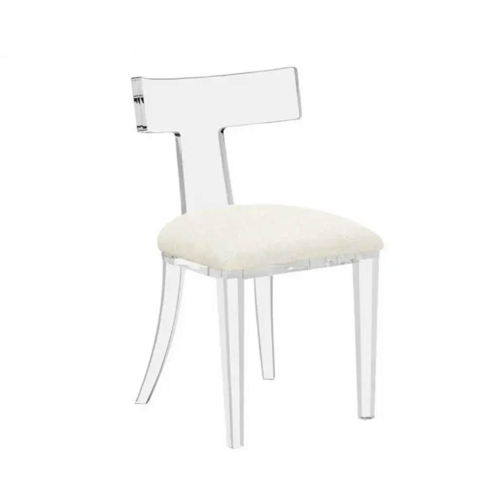 A classic dining chair silhouette gets a fun, plush twist when it's crafted of acrylic.