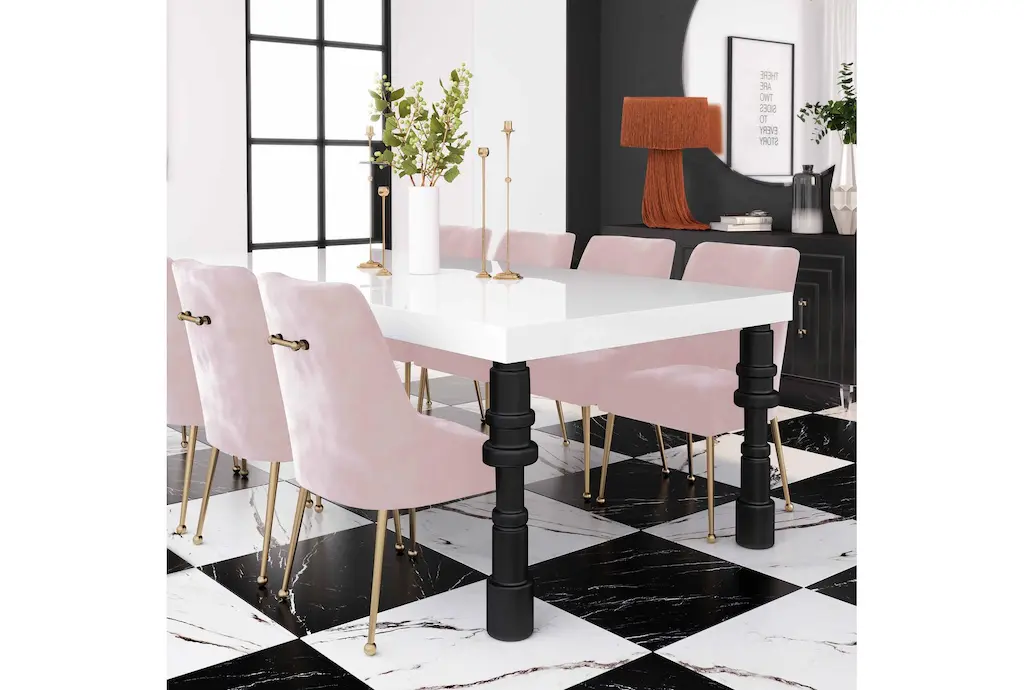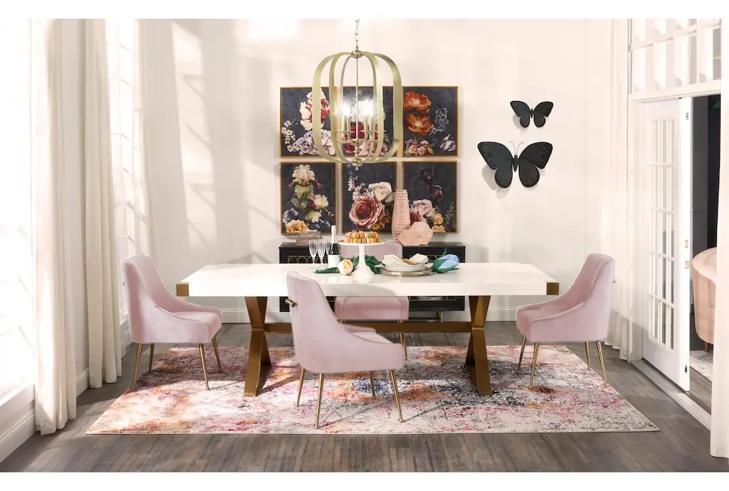 Trix Blush Velvet Swoop Arm Dining Side Chair