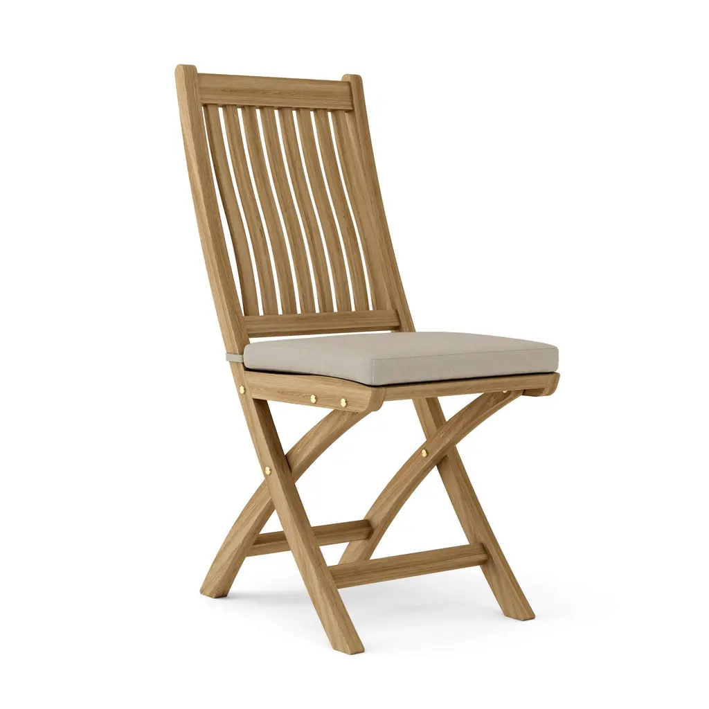 This Tropico Teak Outdoor Dining Chair is perfect for outdoor dining. It is economical but yet strong and comfortable enough for sitting extended periods of time. It is generously sized for added comfort and handsomely crafted in solid construction of genuine Grade-A kiln dried teak, which makes this the perfect chair for the outdoors. The chair also folds for moving and easy storage so you can accommodate guests when you need to and hide the set when you don't. Add any table of your choice for a complete set. No assembly required.Set includes 2 dining chairs