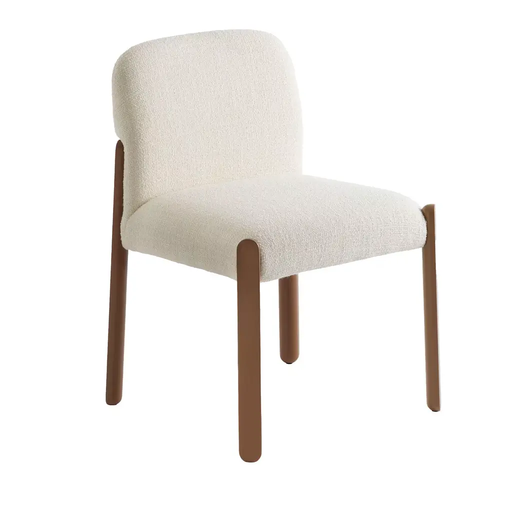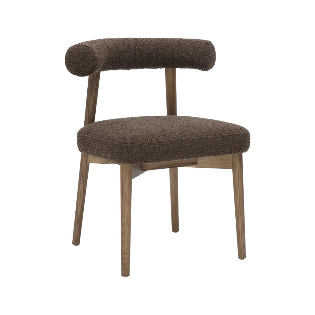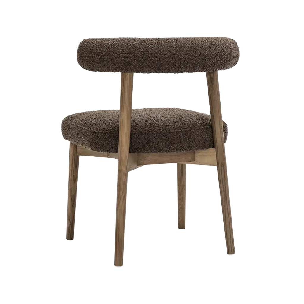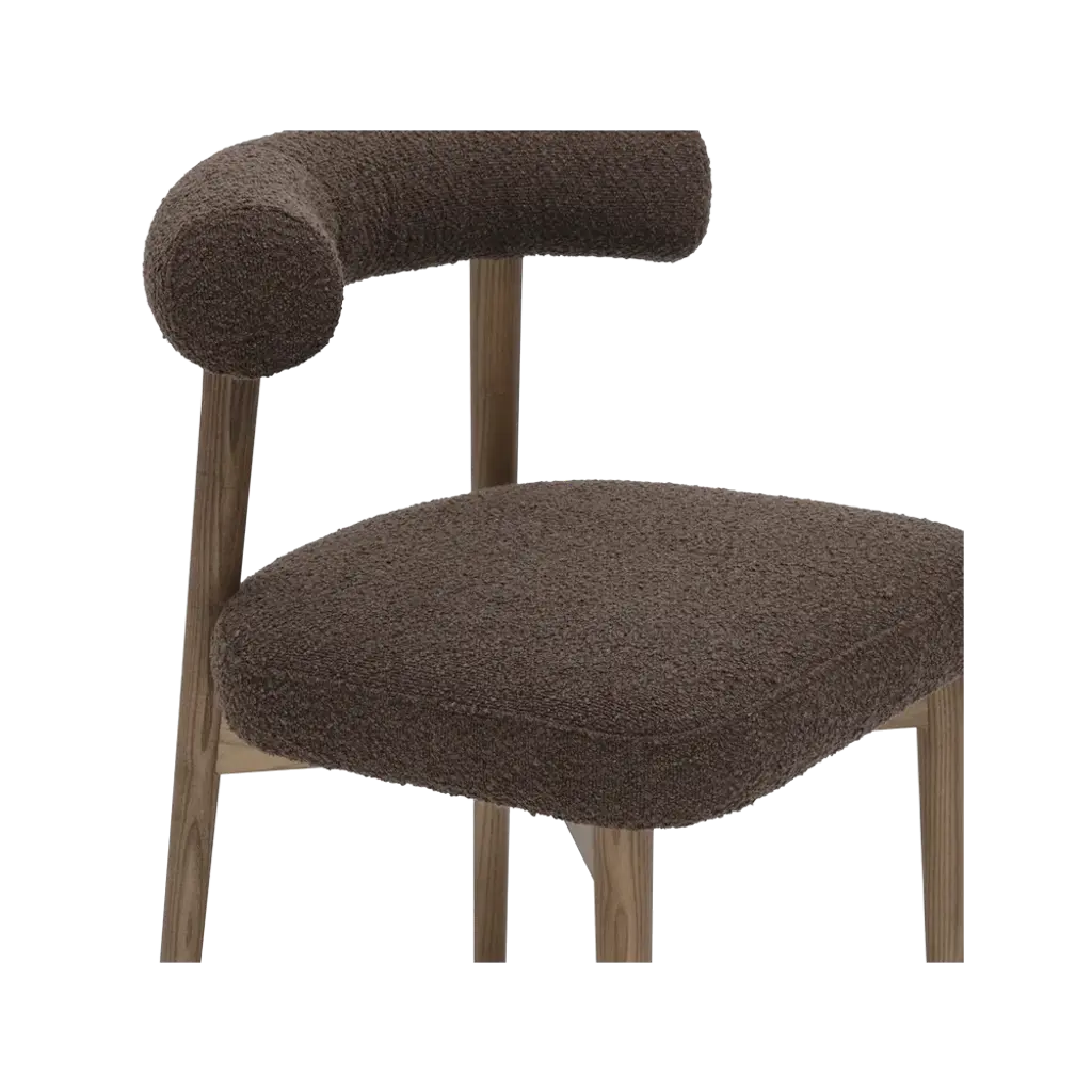 The Truffle Dining Chair in Brown is a stylish and comfortable addition to any dining space, featuring a plush, textured brown upholstery that exudes warmth and sophistication. Its wooden frame with natural finish legs and a curved backrest offer both durability and ergonomic support, blending modern design with timeless appeal.