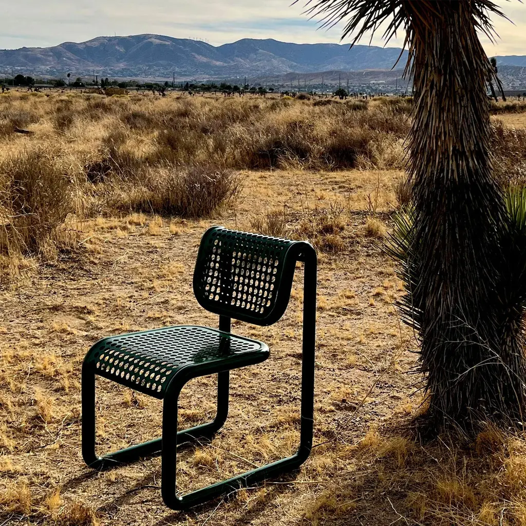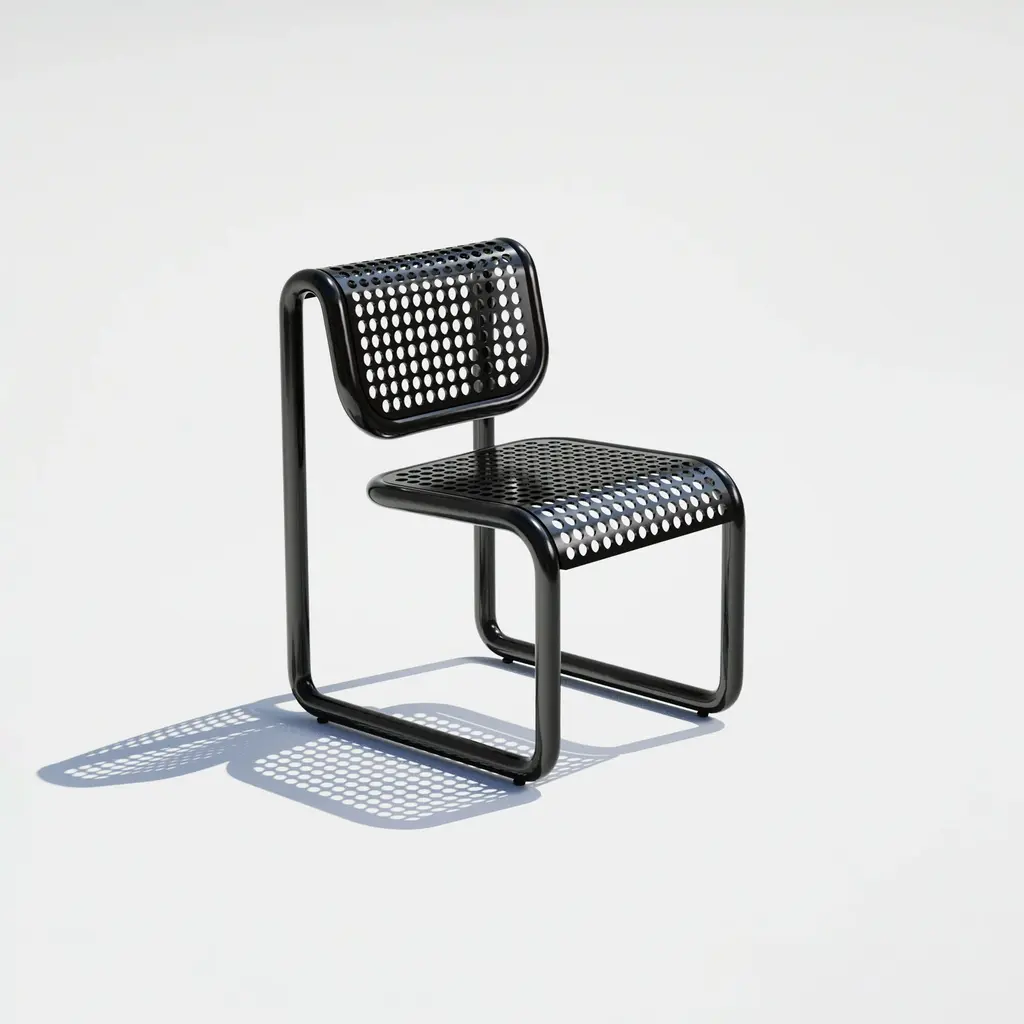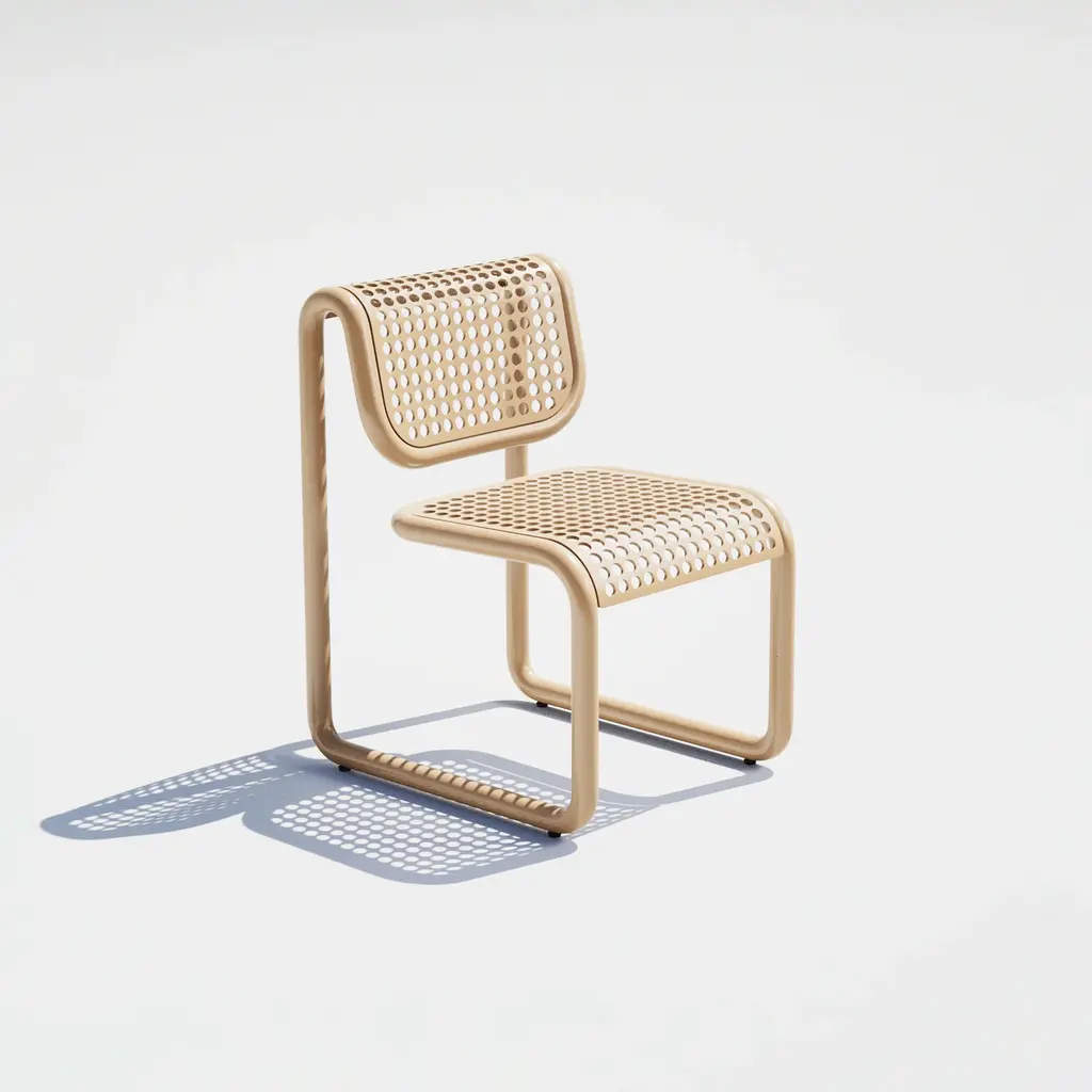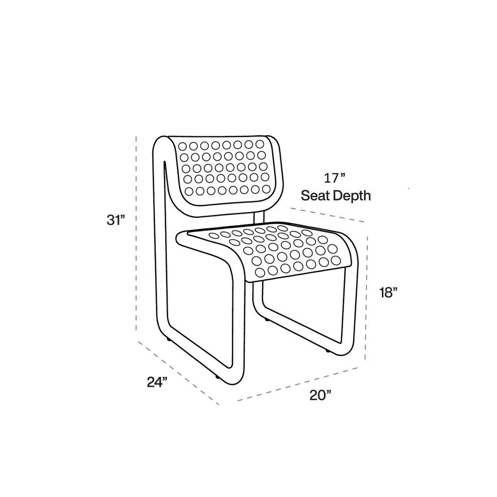 Enhance your outdoor space with Bend Goods's Tube Outdoor Dining Chair. Made from high-quality aluminum, its striking cantilever design and precision-perforated holes bring both durability and a sleek, modern aesthetic. With its lightweight frame and optional cushion, this chair provides both comfort and style for years to come. Highlights