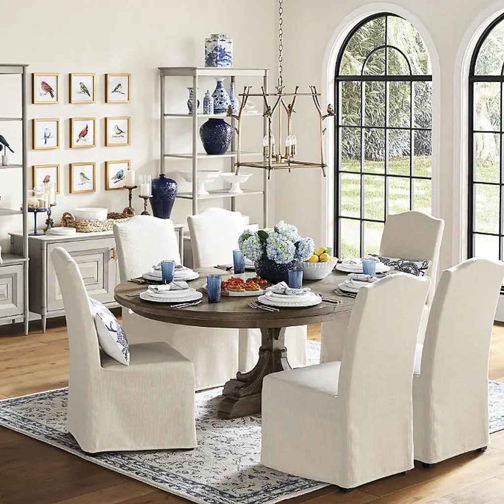 Clean lines and a graceful silhouette lend easy refinement to our Turin Slipcovered Dining Side Chair. Removable slipcovers in crisp performance fabric and solid wood craftsmanship help these chairs welcome diners in both casual and formal settings. Solid hardwood frame durably constructed with mortise-and-tenon joinery High-density foam seat cushions for lasting maximum comfort Performance fabric resists stains and repels water and oils, ensuring easy cleaning Slipcover removes easily for machine washing Nonmarring floor glides For indoor use only Arrives assembled Imported A Frontgate exclusive. At Frontgate, our primary focus is quality. We guarantee that every product we sell will stand up to the supreme test – our customers' satisfaction. To learn more about our policies, visit our Shipping & Processing, Returns & Exchanges and Warranty & Price Guarantee pages.