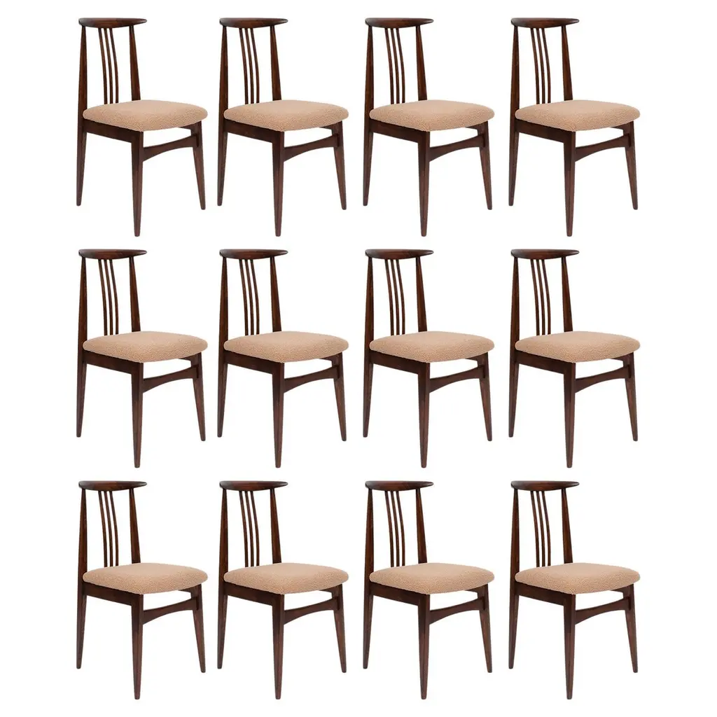 Set of twelve fully restored Danish dining chairs inc. reupholstery designed by Erik Buch in 1949.The chairs have a simple solid construction with elegant organic curves and corners and a very comfortable seating experience on the floating seat design that is becoming increasingly collectable. The chairs have been fully restored and refinished by our skilled cabinetmakers to insure that they are in very good condition with only minimal signs of age and use and will be reupholstered by our skilled upholsteres and seamstress without additional cost in fabric of your choice from "Kvadrat" / "Romeo" or standard leathers from "Sorensen Leather" We are shipping our pieces to most of the world by land, sea and air on regular basis at competitive costs and will be happy to make a shipping quote for your destination.
