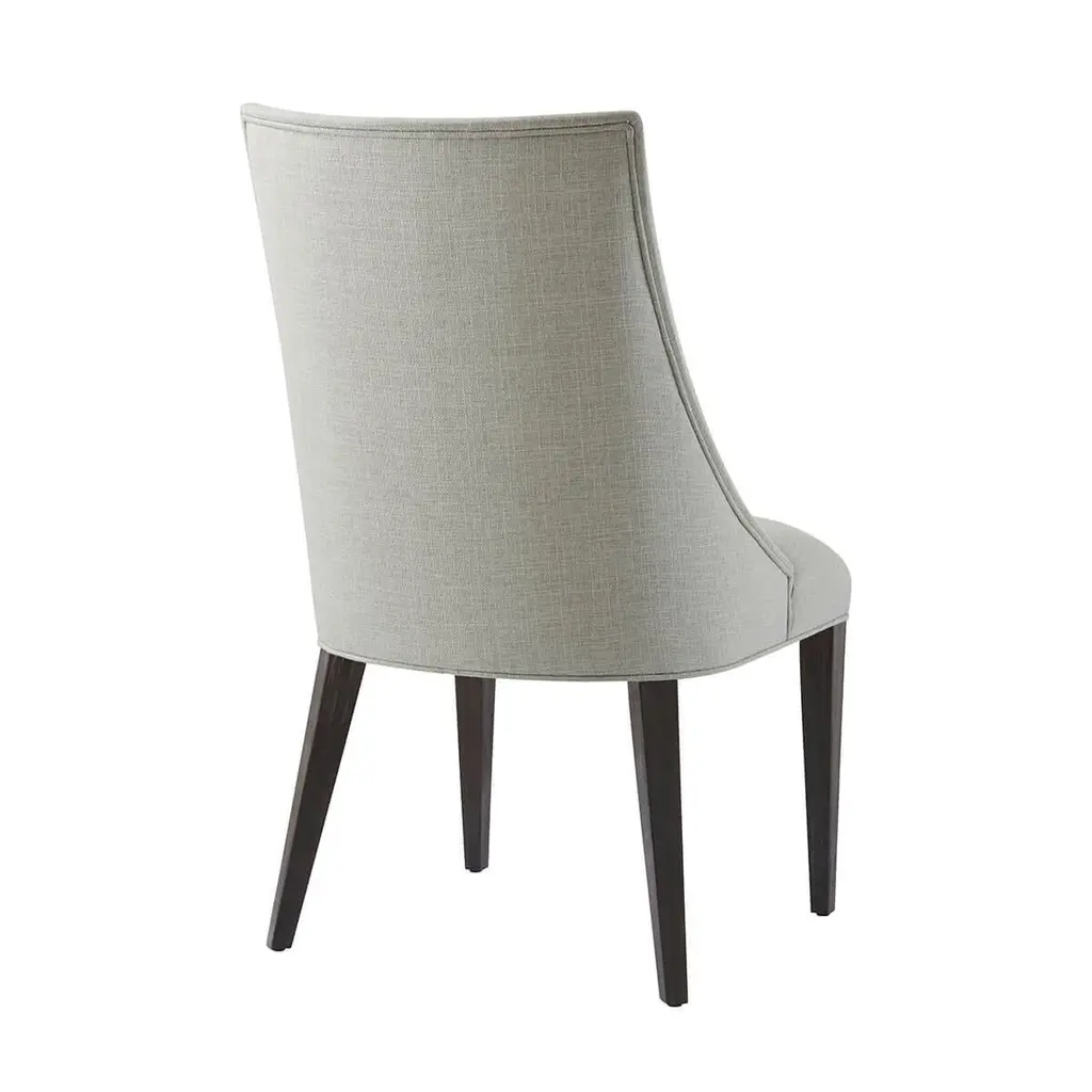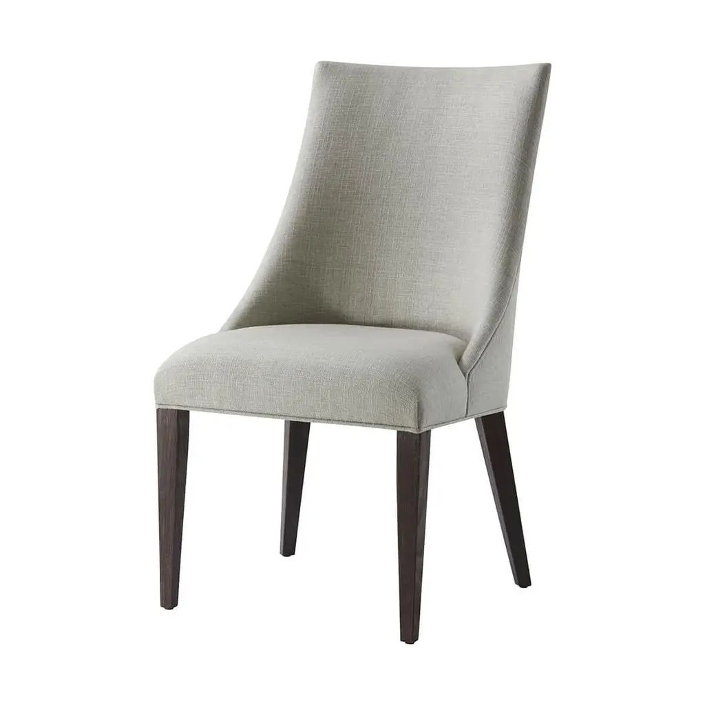 This beautifully designed chair combines classic style with modern functionality, making it a versatile addition to any interior. It features a scoop back and a tight seat cushion, all upholstered in a durable performance fabric, which offers both style and practicality.The chair's traditional square tapered legs are finished in a dark Rowan finish, adding a subtle, refined touch to its overall appearance. The chair provides both ample support and a comfortable seating experience, ideal for long conversations around the dining table or as an elegant accent in a living room.Dimensions: 21" W x 25" D x 40" HSeat height: 19.5"Inside seat depth: 18"