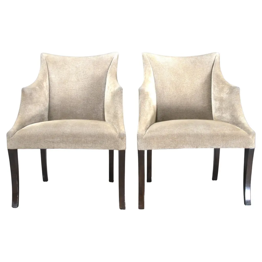Two Classic Upholstered Scoop Back Side Chairs - Dark Rowan