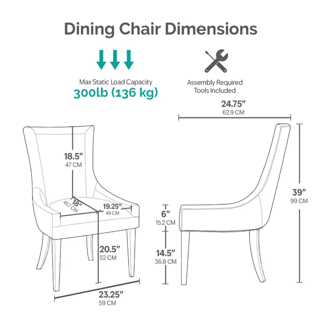Enhance any room with the Madison Park ultra set of 2 dining chairs. Featuring an armless design, soft chenille upholstery, and sturdy wood legs supporting up to 300 lbs, these chairs combine comfort and durability. Elegant piping adds a tailored touch. Easy assembly—order now!