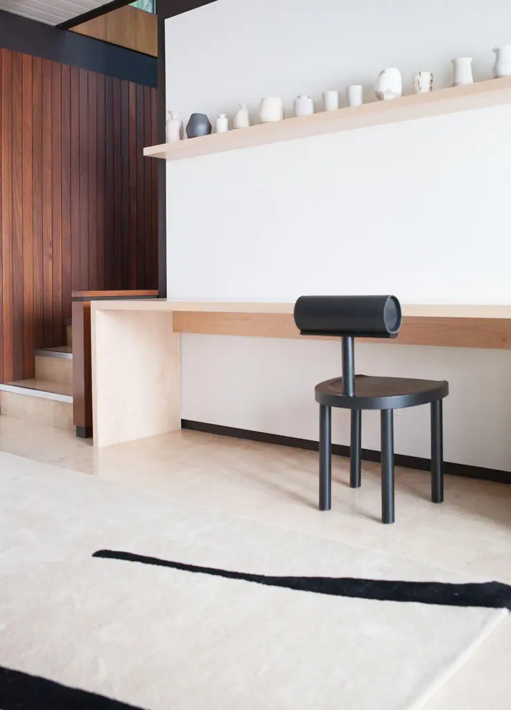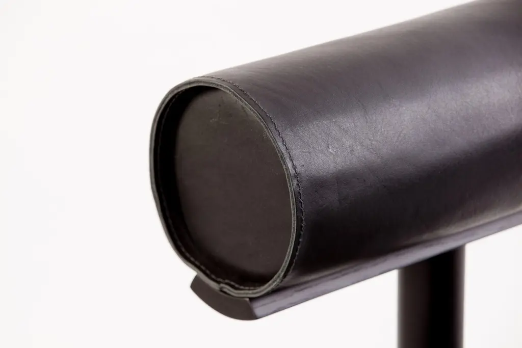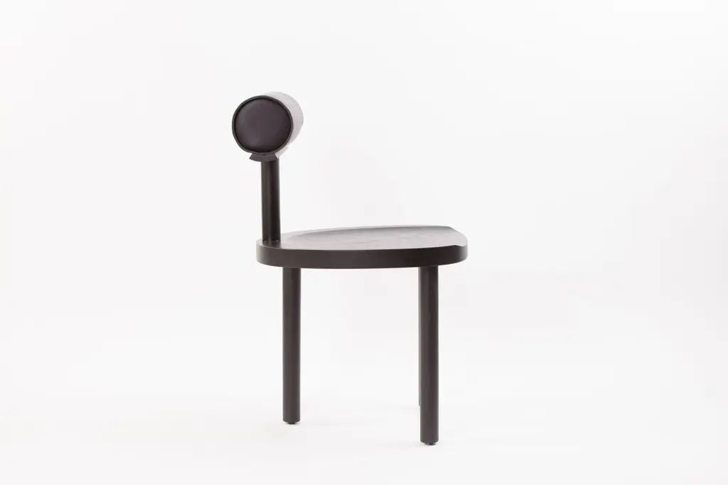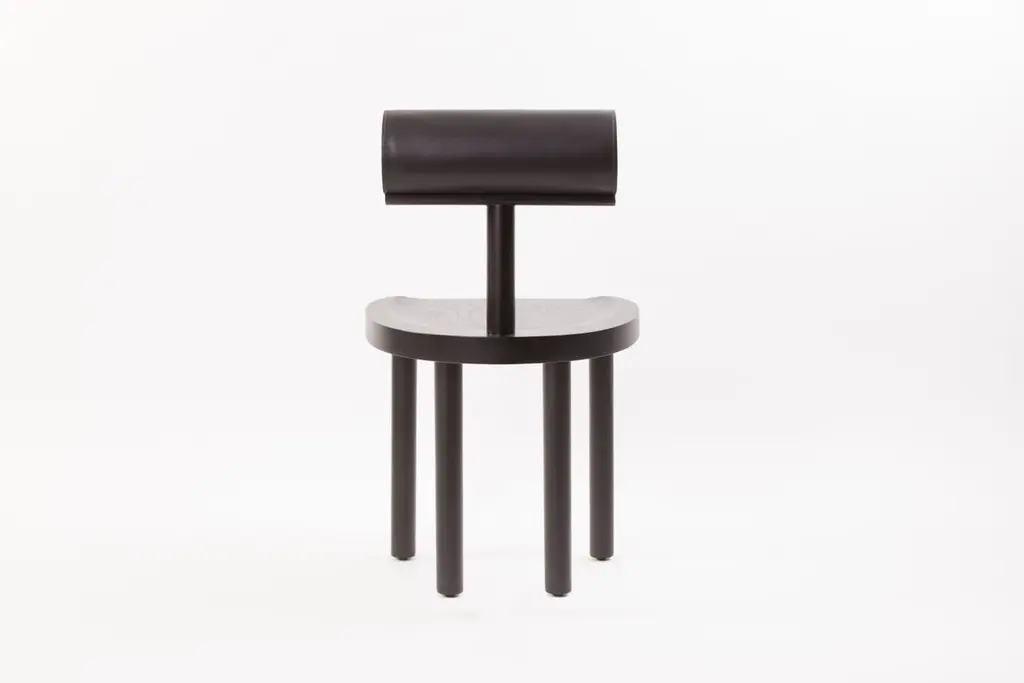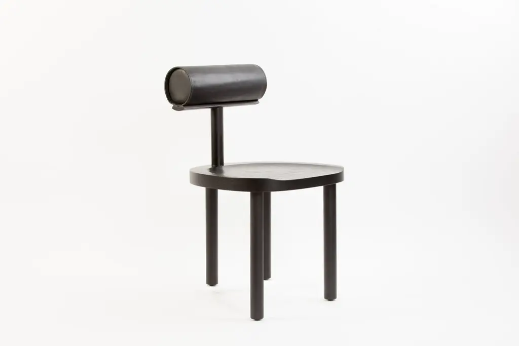 Una black chair by Estudio PersonaDimensions: W 45.7 x D 48.3 x H 78.8 cmMaterials: Solid ash, stained black finish, black vegetable leatherDining chair in solid ash, stained black finish, upholstered back bolster in black vegetable leather, upholstered.Also available in Maple and natural leather.Customizations available.Estudio Persona was created by Emiliana Gonzalez and Jessie Young in 2014.Working as part of a deeply collaborative process, their unconventional designs are inspired by natural forms and follow sculptural lines; a distinctly neutral and minimal take on the monochromatic melancholy of their native Uruguay. Based out of their studio and showroom in Los Angeles, Estudio Persona work with natural materials in brilliantly contrasting ways. Together, the designers behind Estudio Persona embody a uniquely female and ever evolving understated creativity.