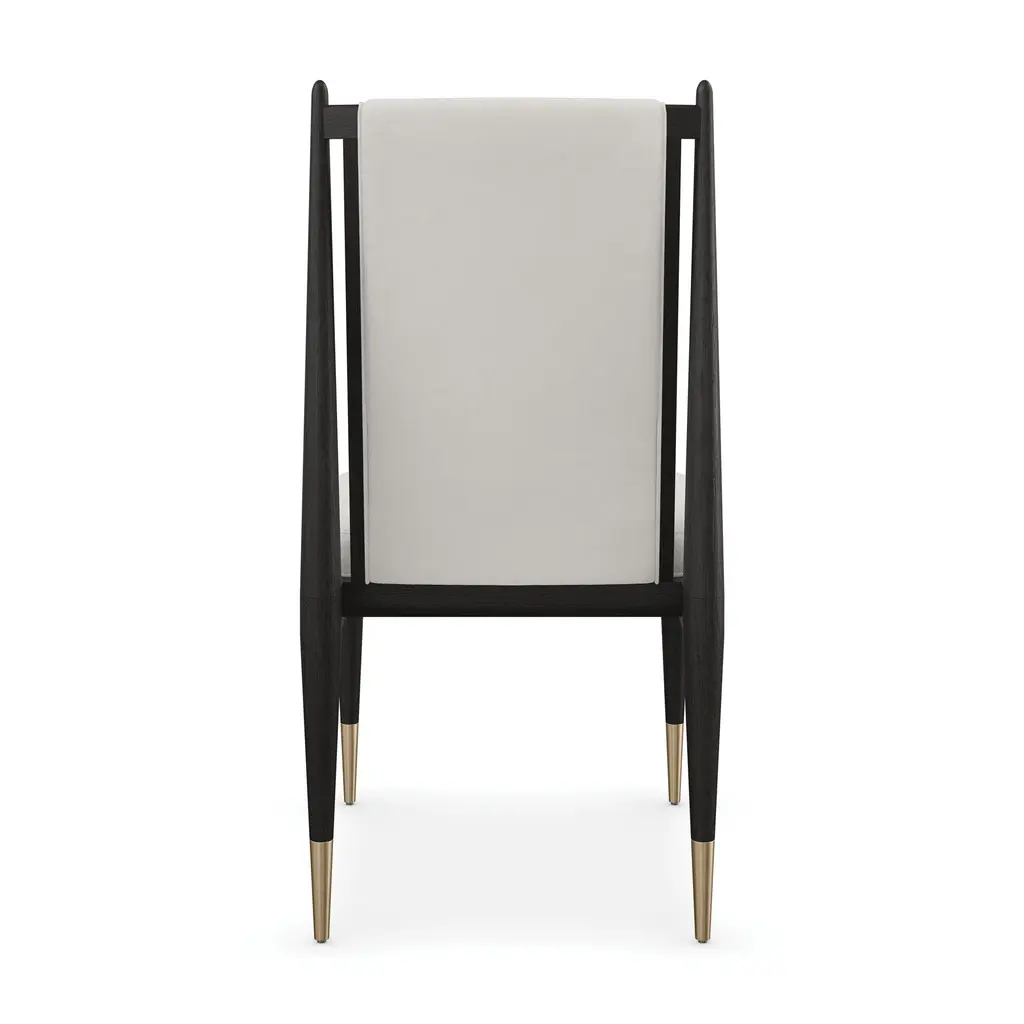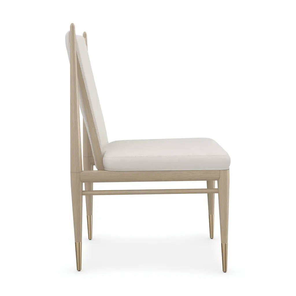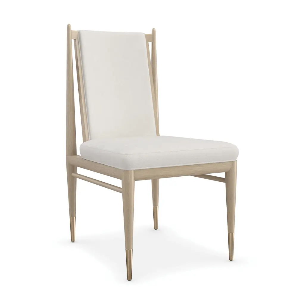 Create a dynamic and welcoming dining space with the Unity Dining Chair from Caracole. Made with open grain oak and adorned with ivory boucle fabric, this chair exudes elegance and modernity. The Lucent Bronze metal ferrules add a subtle contrast, perfect for both entertaining and everyday use. Elevate your dining experience with the Unity Chair. Highlights
