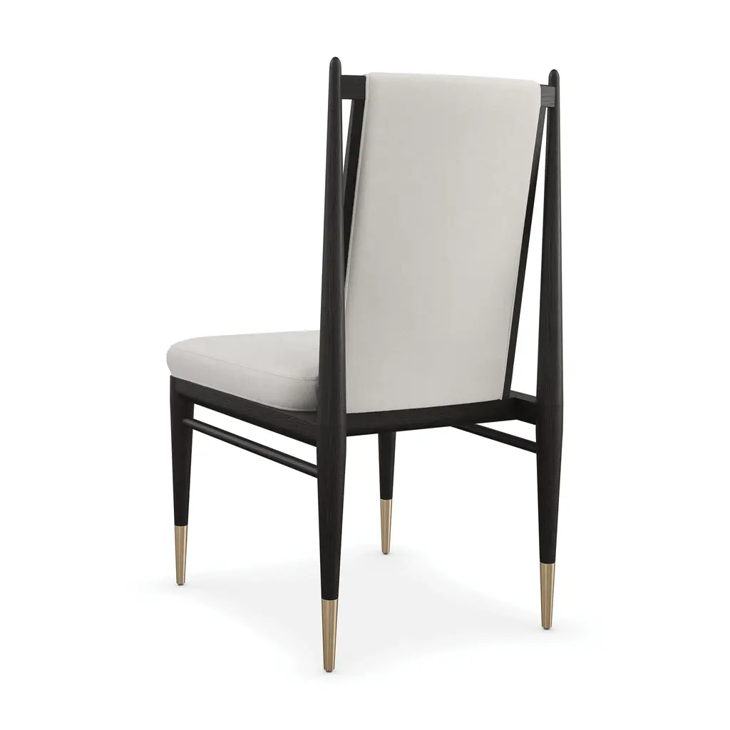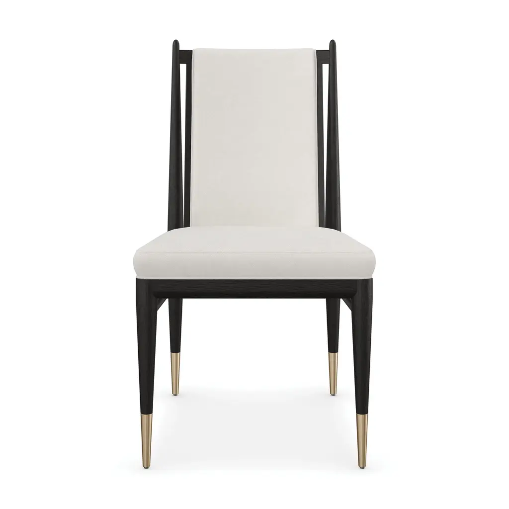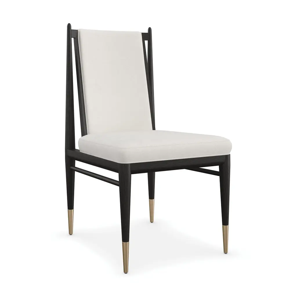 Create a dynamic and welcoming dining space with the Unity Dining Chair from Caracole. Made with open grain oak and adorned with ivory boucle fabric, this chair exudes elegance and modernity. The Lucent Bronze metal ferrules add a subtle contrast, perfect for both entertaining and everyday use. Elevate your dining experience with the Unity Chair. Highlights