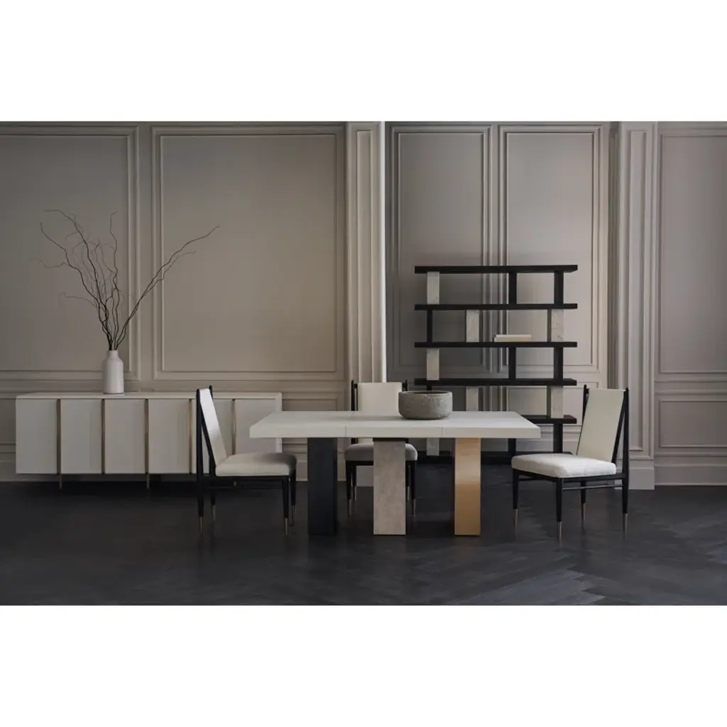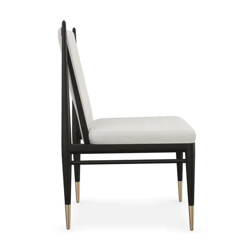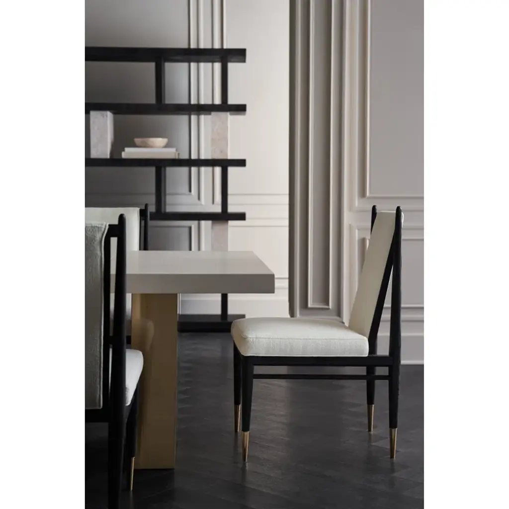 An elegant expression of materiality and form, the Unity dining chair is perfectly pitched for entertaining and the everyday. A clean-lined frame crafted in open-grain oak sets it apart from its counterpart. Dressed in an ivory boucle fabric and lucent bronze metal ferrules, its contrast brings a modern aesthetic to dining interiors.
