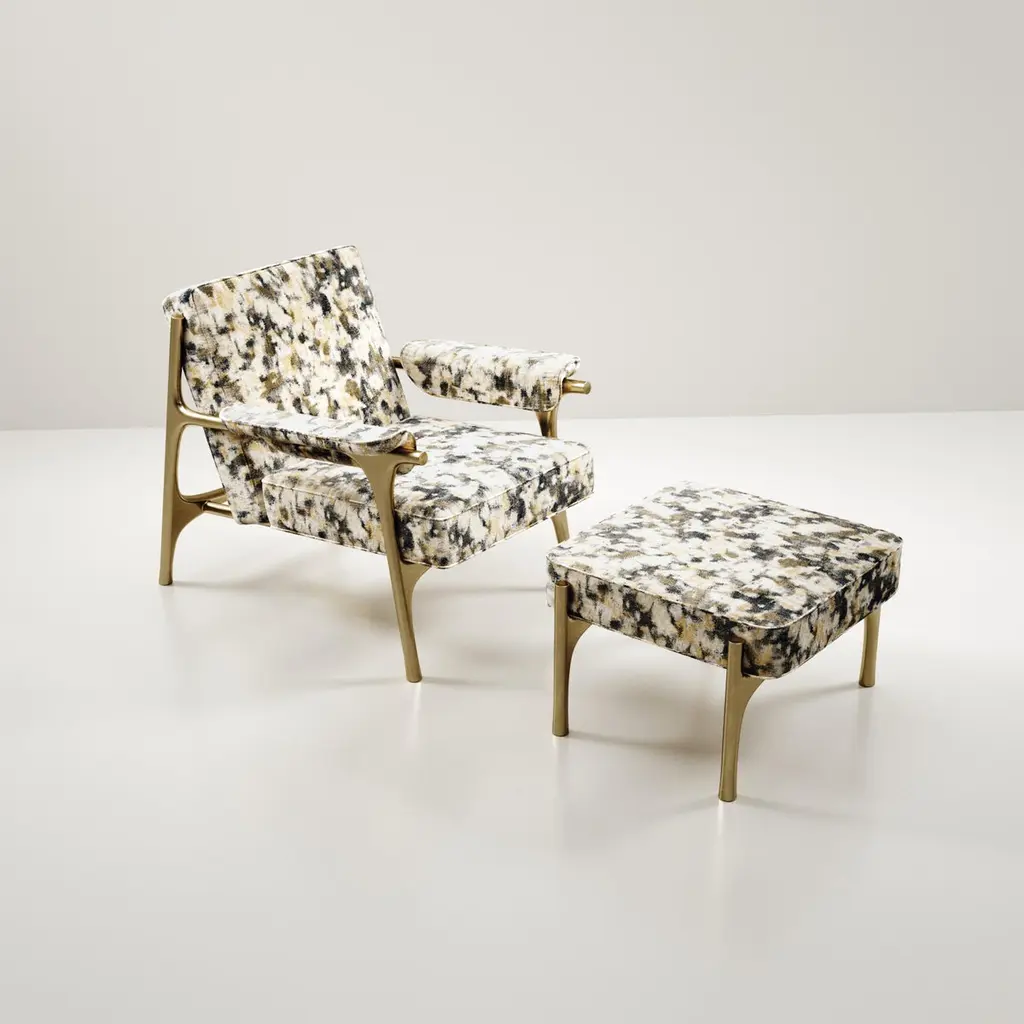 The Paris based label has distinguished themselves since their launch, with their iconic use of shagreen mixed with brass and other exotic materials. All furniture is handcrafted by skilled artisans, ultimately making each piece unique, designed in Paris and produced in the Philippines.The Ramo armchair by R & Y Augousti is an elegant and versatile piece. The upholstered piece provides comfort while retaining a unique aesthetic with the bronze-patina brass frame and details. This listing is priced for client COM fabric supply, see other listings for pricing of our fabric supply. A separate listing available to purchase with footrest. Part of the Ramo Seating Series, see images at end of slide.The dimensions of this piece are :Armchair- Depth 91.0 cm width 75.0 cm height 76.8 cmAll R & Y Augousti pieces are handmade by artisans, ultimately making each piece unique.Wipe clean with soft dry cloth.Acclaimed design duo Ria & Yiouri Augousti have established themselves since the 1990s as pioneers of modern-vintage style through their luxurious Art Deco inspired collections.The Paris based label has distinguished themselves since their launch, with their iconic use of shagreen mixed with brass and other exotic materials. All furniture is handcrafted by skilled artisans, ultimately making each piece unique. All shagreen-covered items should be kept out of direct sunlight, color variants may occur on the stingray and other exotic finishes, but this showcases the Parisian label's commitment to creating authentic luxurious products using natural components.
