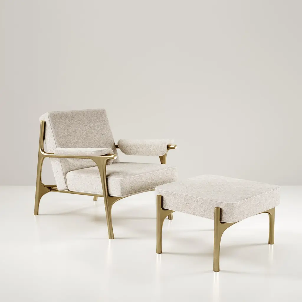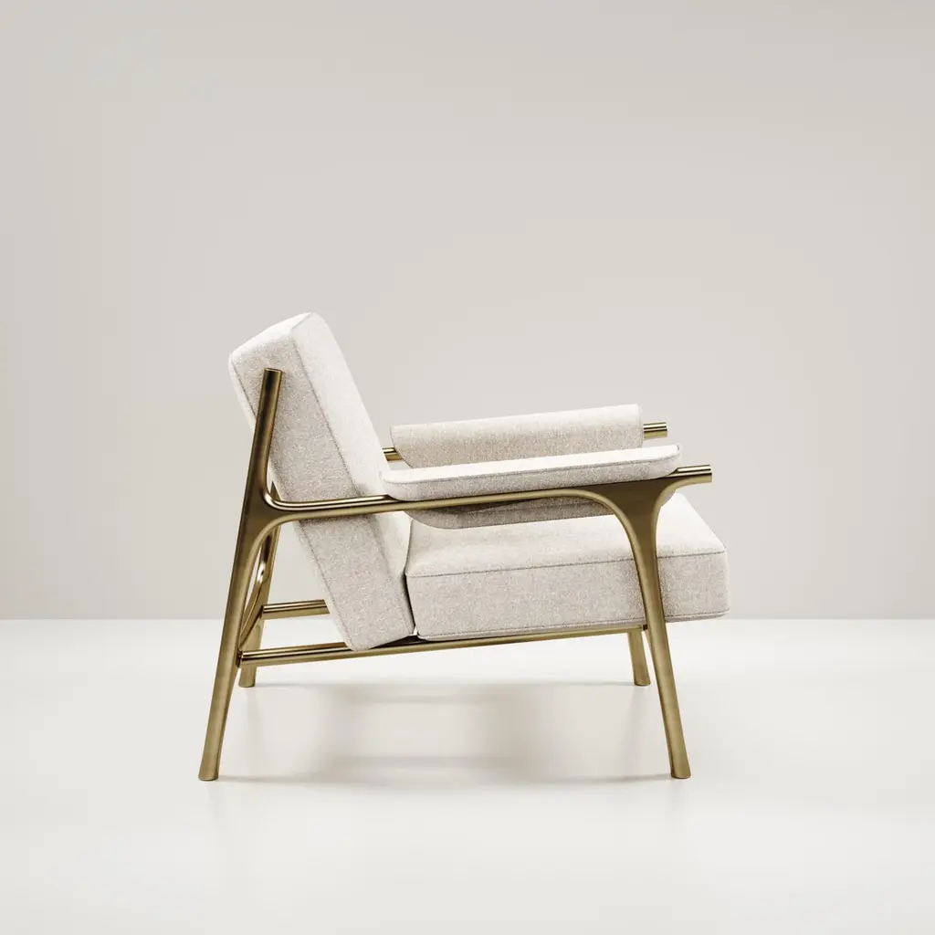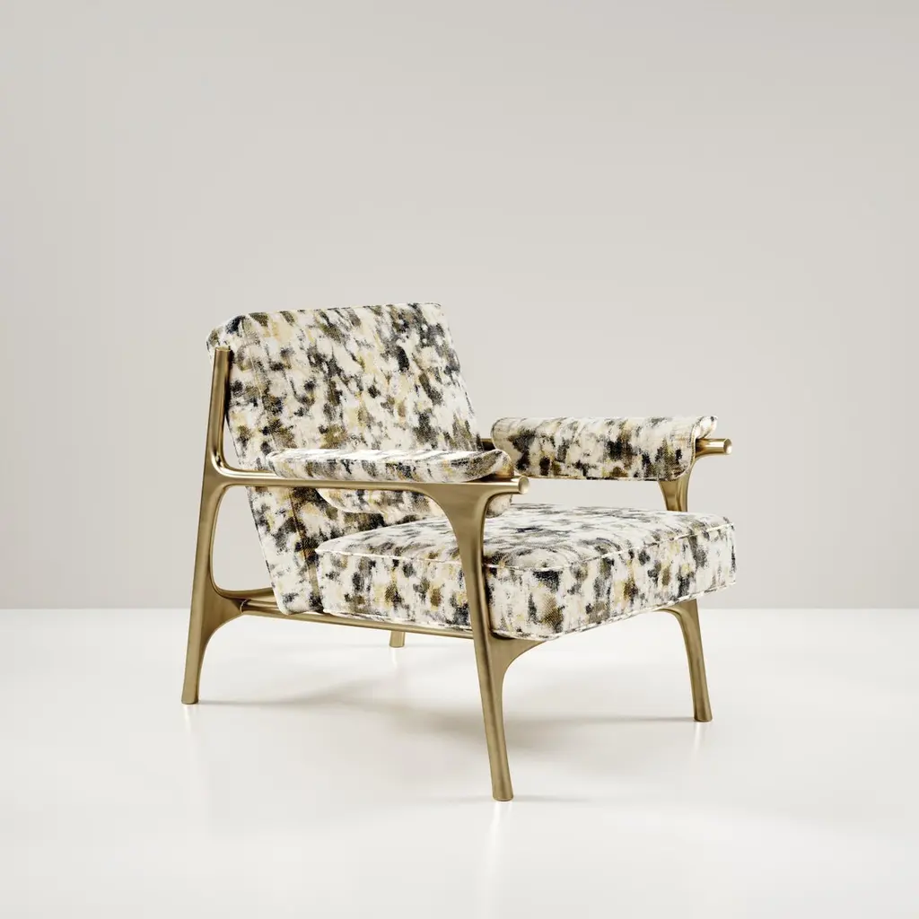 Upholstered Armchair With Bronze-Patina Brass Details By R&y Augousti