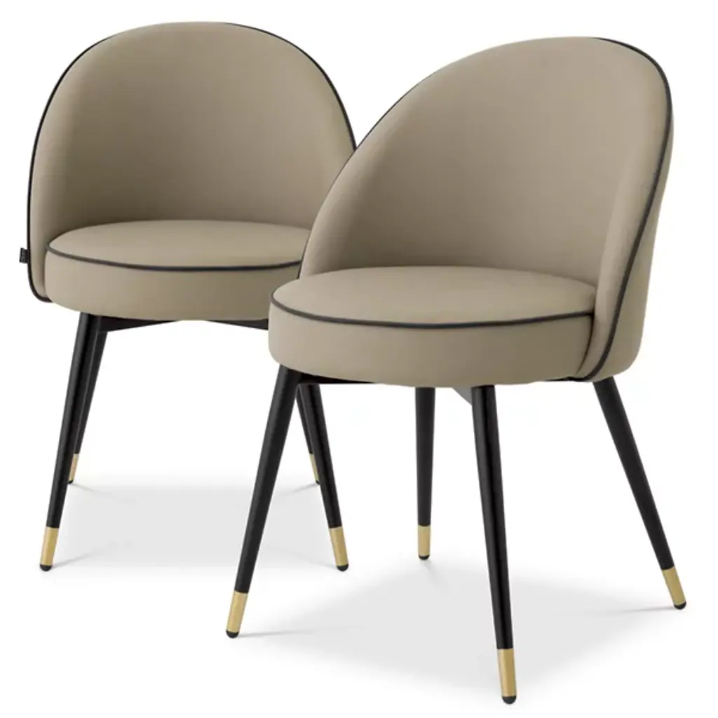 Upholstered Dining Chair In Grey & Gold - A Pair