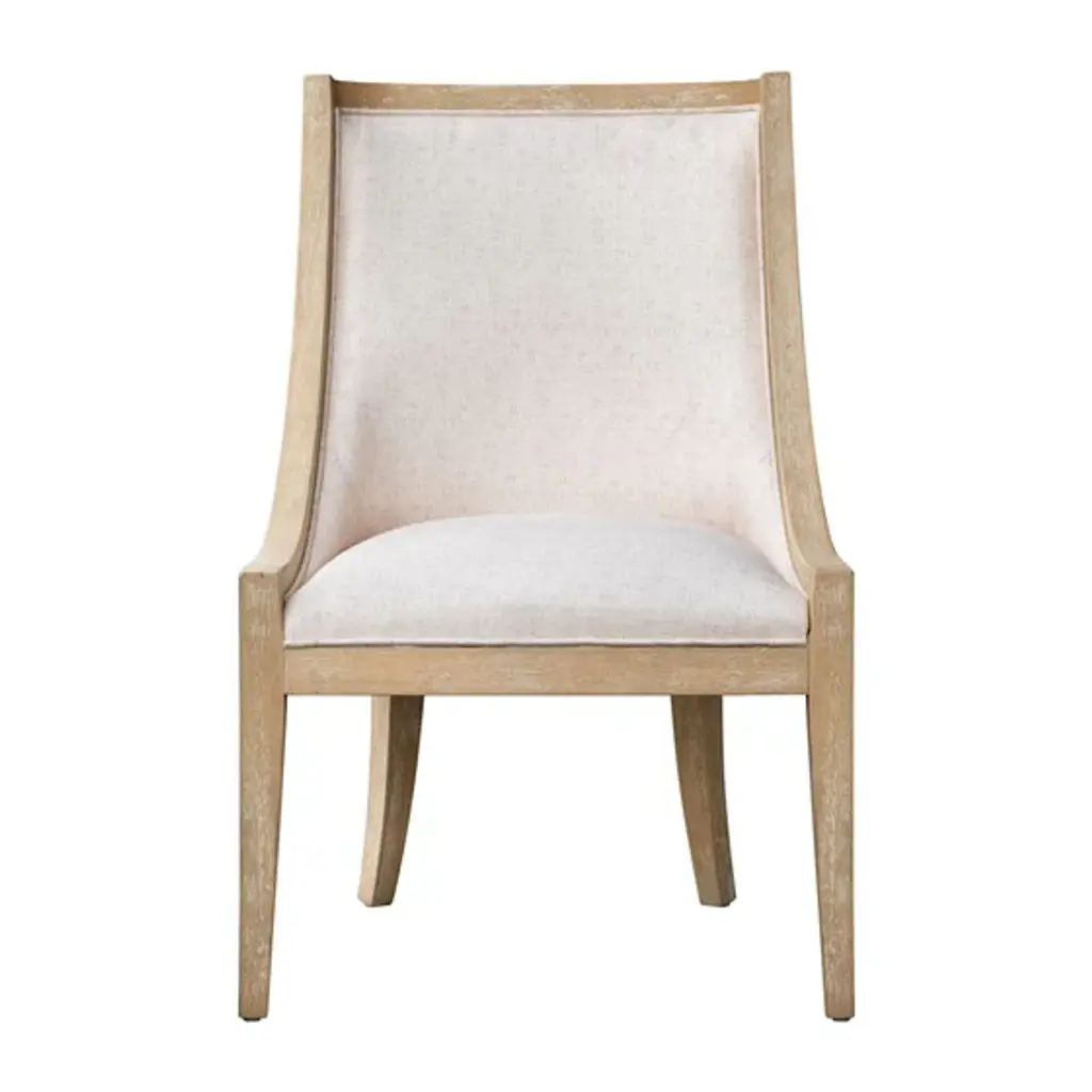 Transform your dining room with this farmhouse-style dining chair, combining rustic charm and elegant design. The curved back profile, recessed arms, and exposed wood frame offer both comfort and visual appeal. Brass nailhead trim adds a sophisticated accent, elevating the overall aesthetic. Perfect for creating a warm and inviting dining space, it blends style with functionality. Built to last, this chair is a timeless choice for your home.