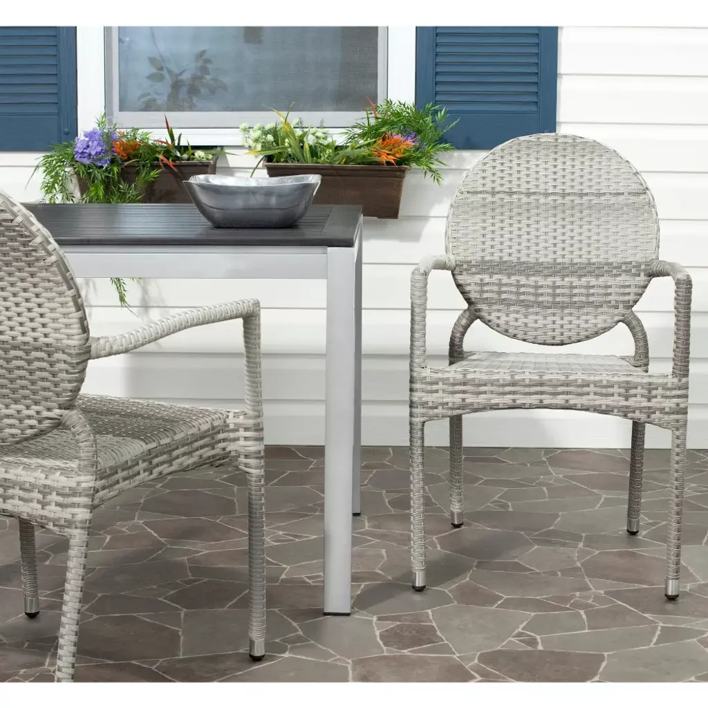 Valdez Stackable Arm Chair Indoor/outdoor (Set Of 2) - Fox5205 - Grey - Safavieh