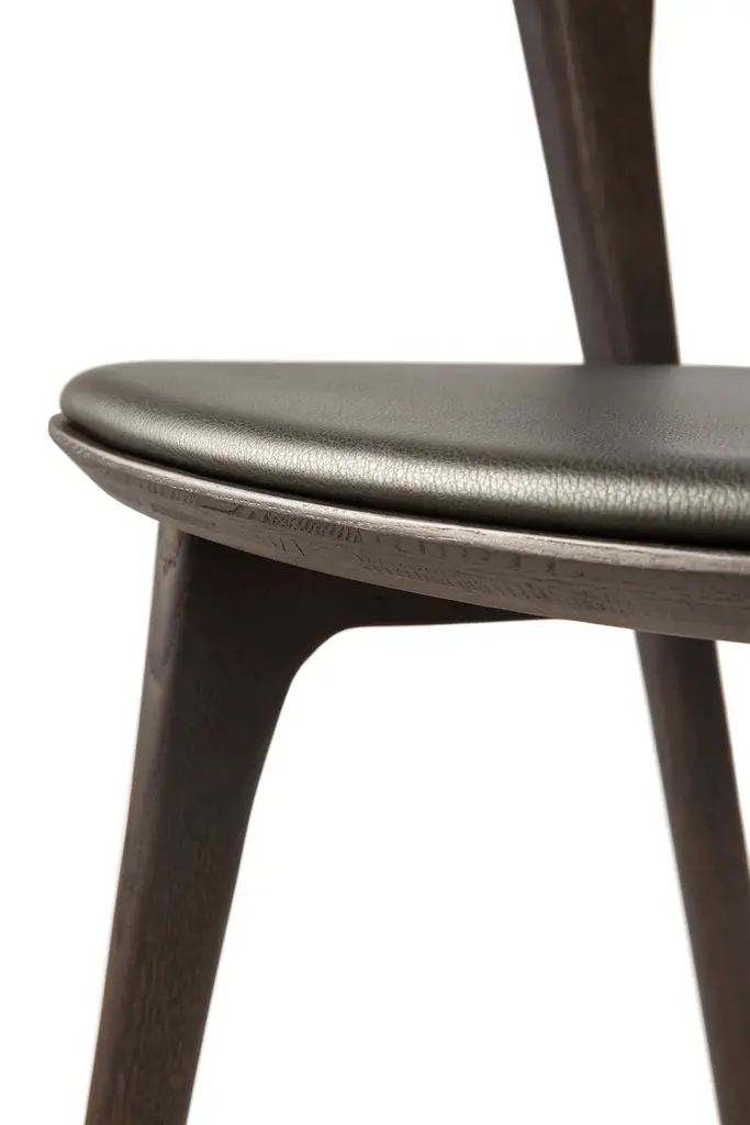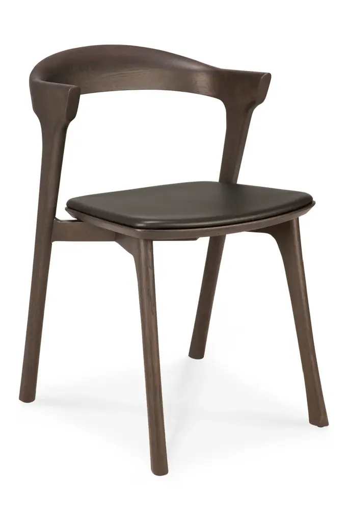 A versatile addition to any home, the Varnished Oak Classic Dining Chair by Ethnicraft infuses a space with a sense of organic charm. Celebrating the innate beauty of natural materials, this brown-tainted Bok chair has been varnished for extra sheen and protection. It combines sculptural elegance and contemporary crafting into a graceful and airy form. It is also available with brown leather upholstered seat for extra seating.