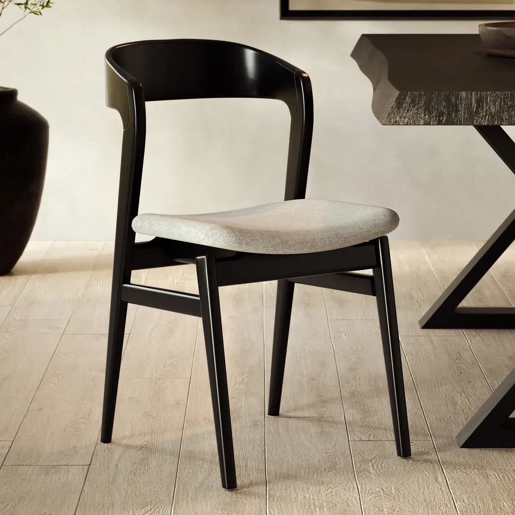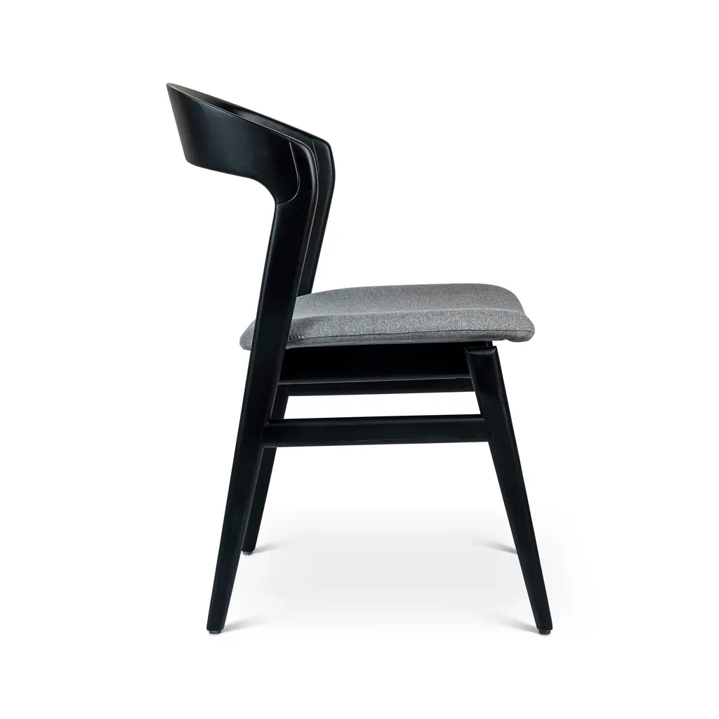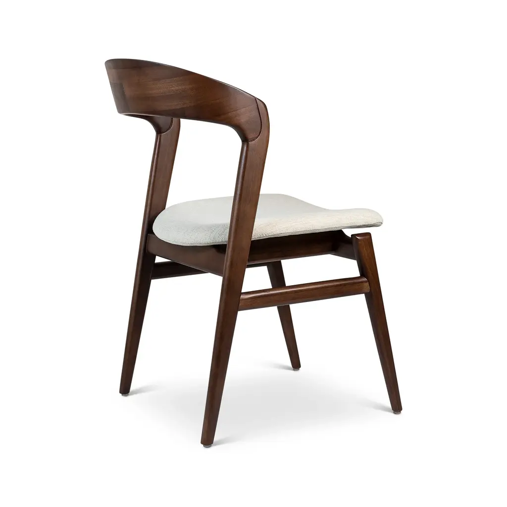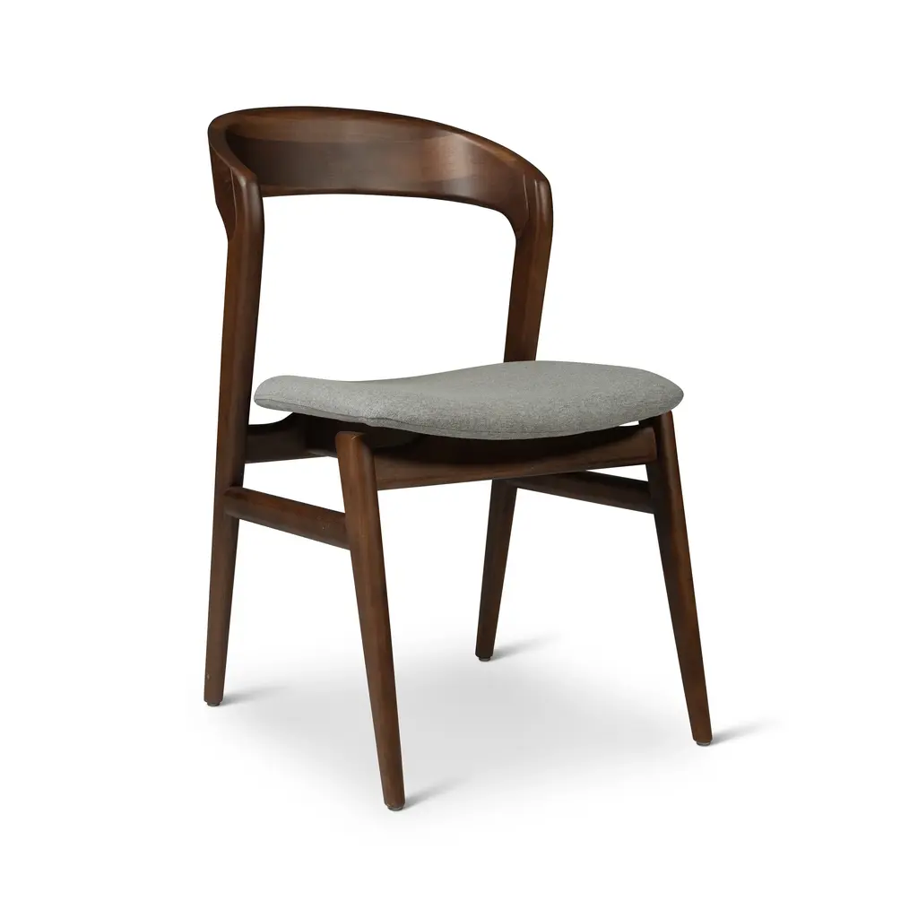 Indulge in exquisite craftsmanship and contemporary design with the Velma Side Chair from Urbia. Meticulously crafted in Brazil with a solid Tauari frame, its rounded legs and gracefully curved back exude elegance. The upholstered seat, thoughtfully curved for comfort, offers a delightful seating experience. Elevate any dining or occasional space with this luxurious chair. Highlights