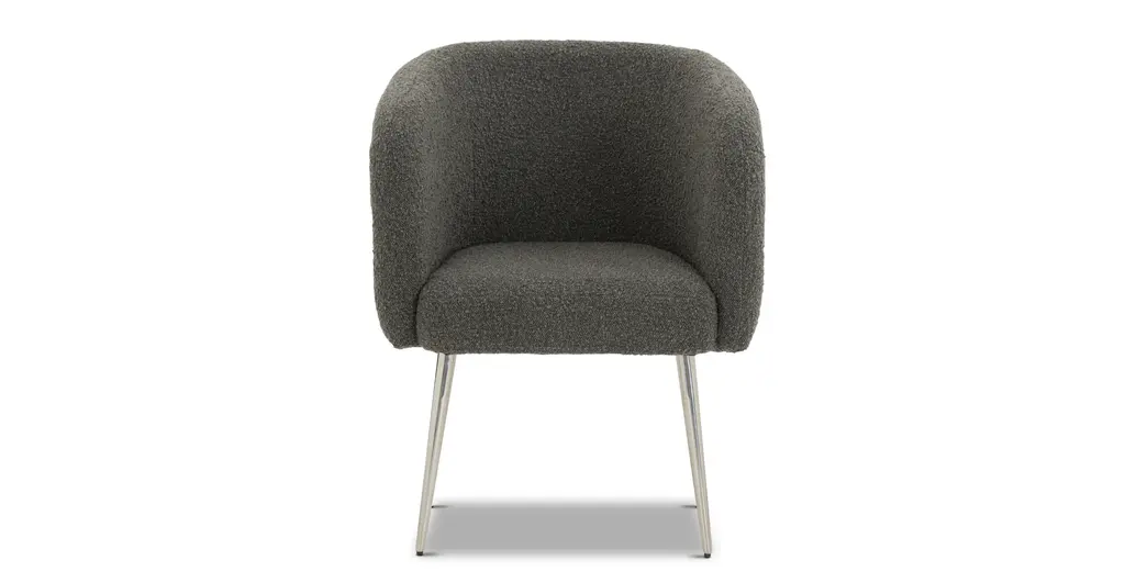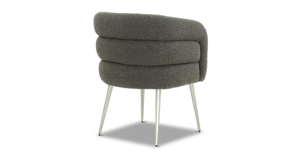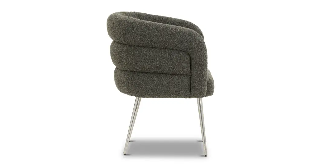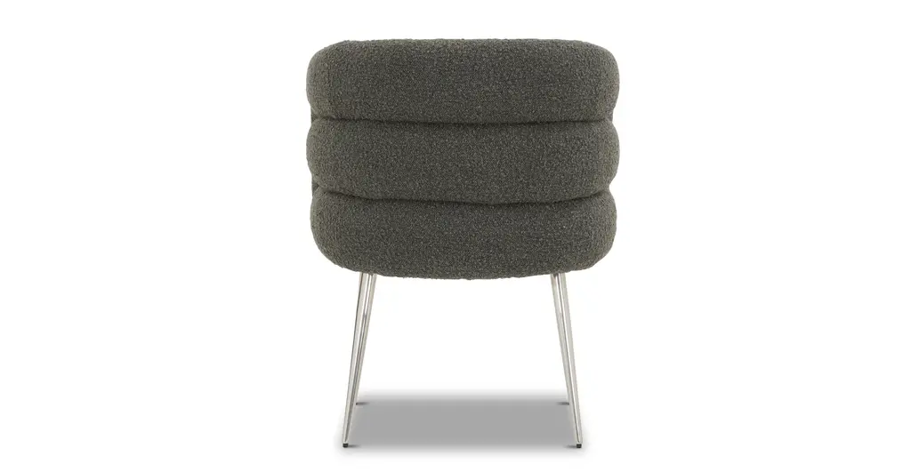 This dining chair brings serious old-Hollywood glam to your table. Wrapped in durable boucle with a channel-tufted back, it’s all about texture and timeless elegance. The polished chrome legs add a touch of retro-cool, making every meal feel like a red carpet event. Comfortable, stylish, and ready for its close-up—dinner just got star treatment.