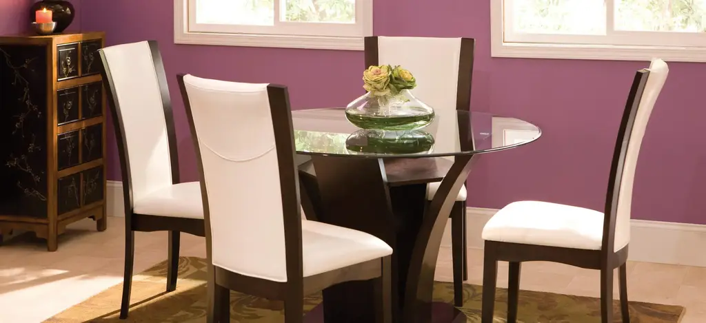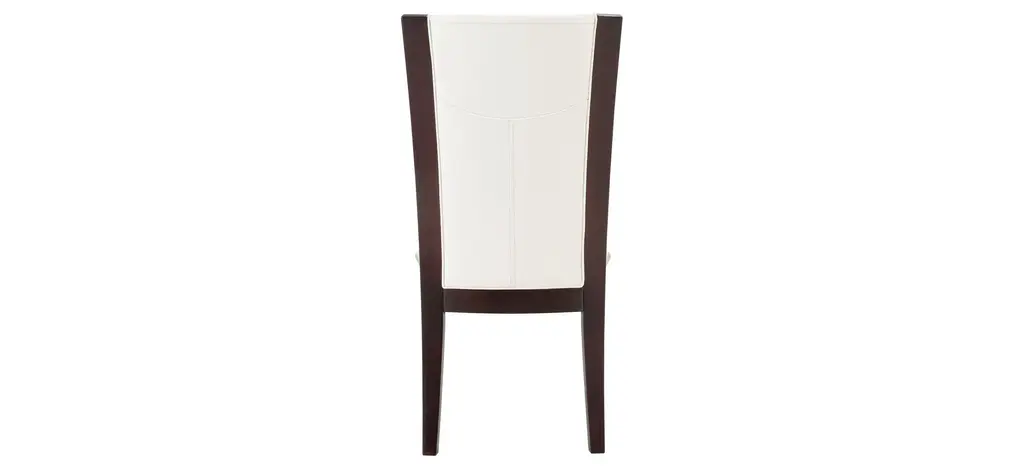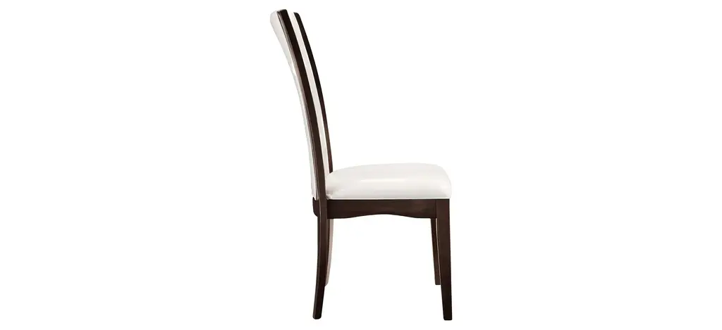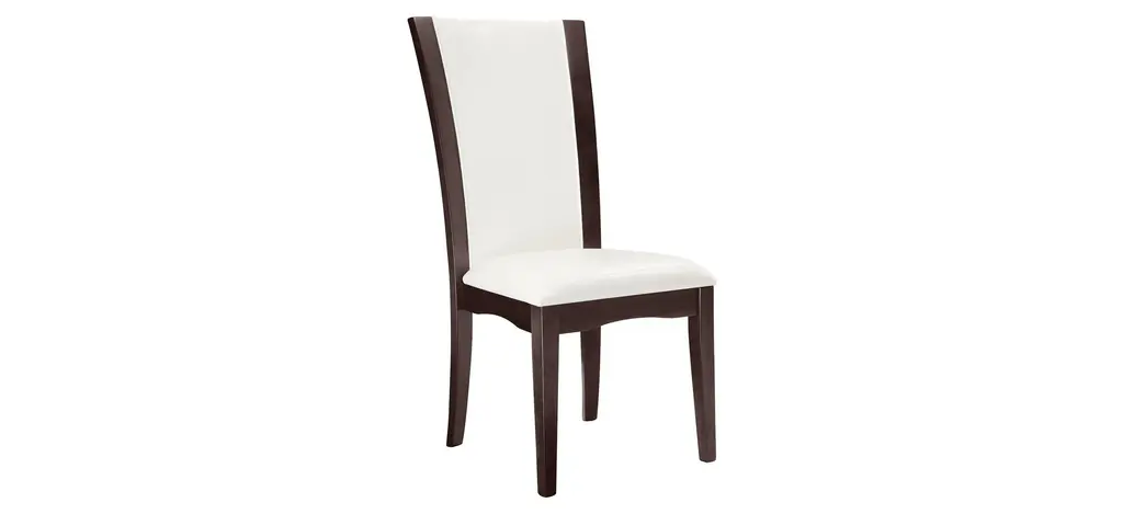 This Venice dining chair combines the small-scale coziness of casual dining with a more formal feel. It features a warming merlot finish and coconut-colored seats that provide a beautiful 2-toned look. Plus, the faux leather seats are easy to clean.