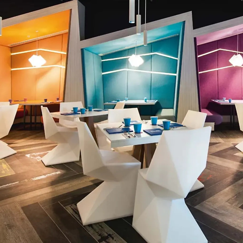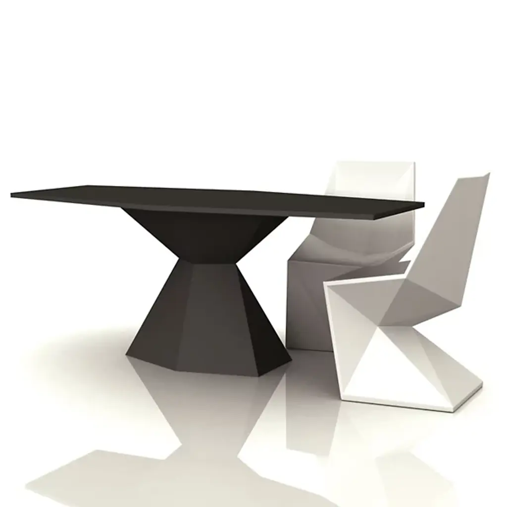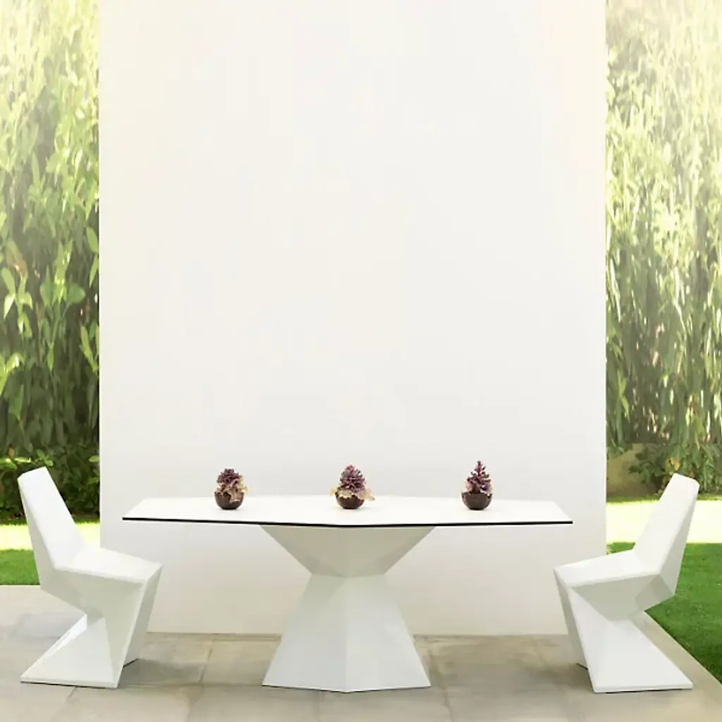 Dining outdoors has never been as stylishly angular--or comfortable--as it is with the Vertex Outdoor Dining Chair. As designed by Karim Rashid, the chair is comprised of a series of triangular planes, angled just so for perfect balance and to cradle a sitter. Made out of rotation molded matte white polyethylene, the Vertex Dining Chair is durable enough for outdoor use, but certainly stylish enough for indoor dining as well.
