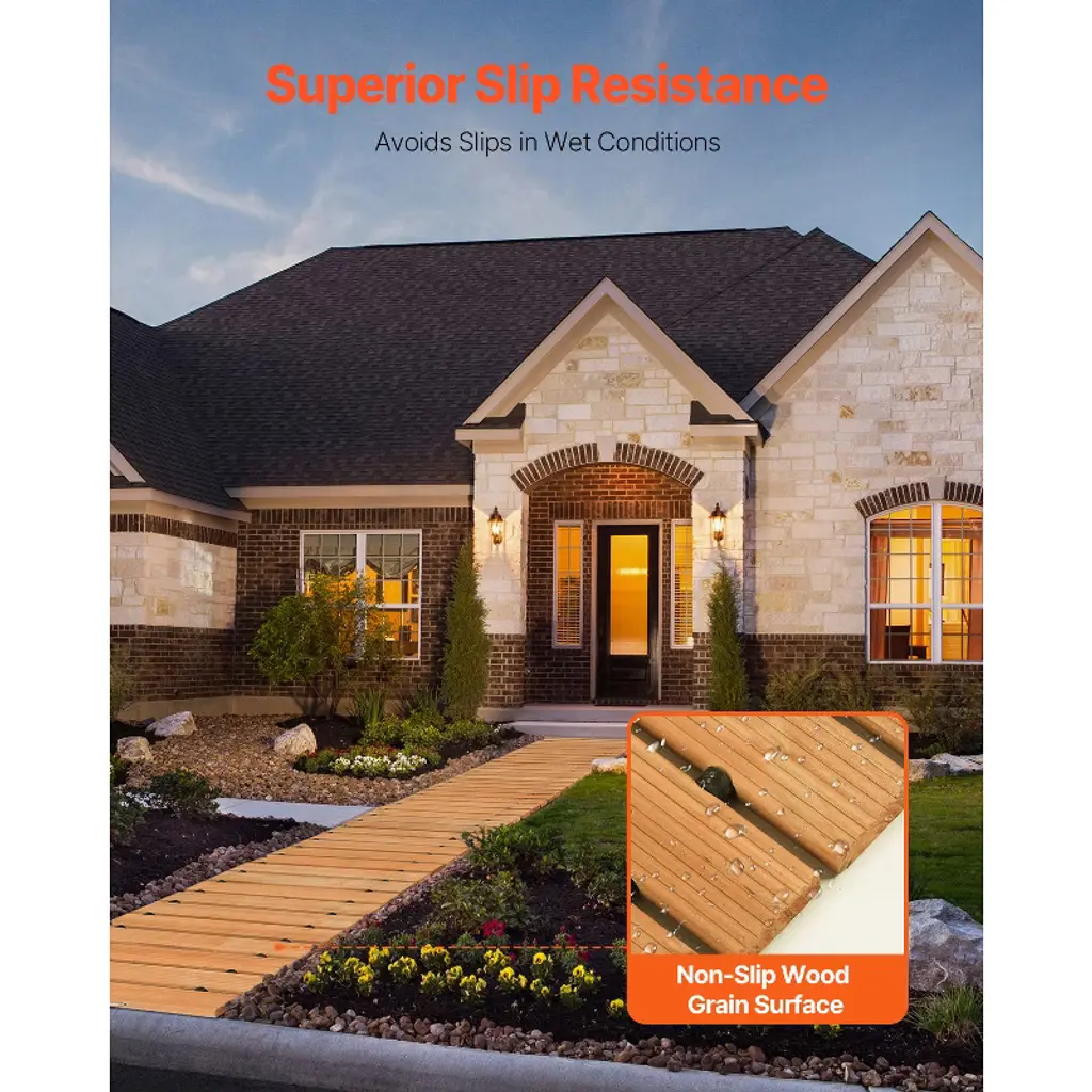 Feature: Aesthetic Appeal: This wooden garden pathway measures 288 inches long and 17 inches wide, enhancing the visual attractiveness of any outdoor space while keeping your shoes clean and dust-free. Sturdy Construction: Designed with rust-resistant wire rope and high-density rubber, this garden walkway ensures each section is securely connected and has a strong load-bearing capacity for strollers, wheelchairs, and lawn mowers. Durable Cedar Material: Crafted from pressure-treated cedar, this garden walkway path is built for long-term outdoor use, featuring excellent weather resistance and a non-slip surface to prevent accidents in wet conditions. Space-Saving Design: The rollable design of this garden walkway allows for easy storage and quick setup. It can be expanded or combined as needed and is easy to clean with just a rinse of water. Versatile Usage: Suitable for various surfaces, this roll out wooden walkway is perfect for gardens, patios, beaches, and more, making it ideal for outdoor events like parties, weddings, and camping. Package Content 1 x Wooden Garden Pathway