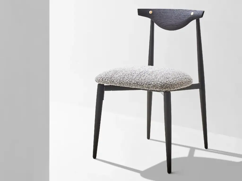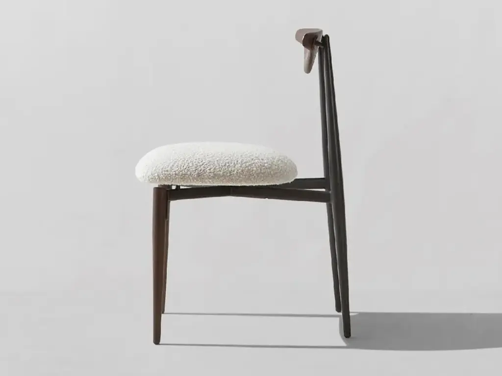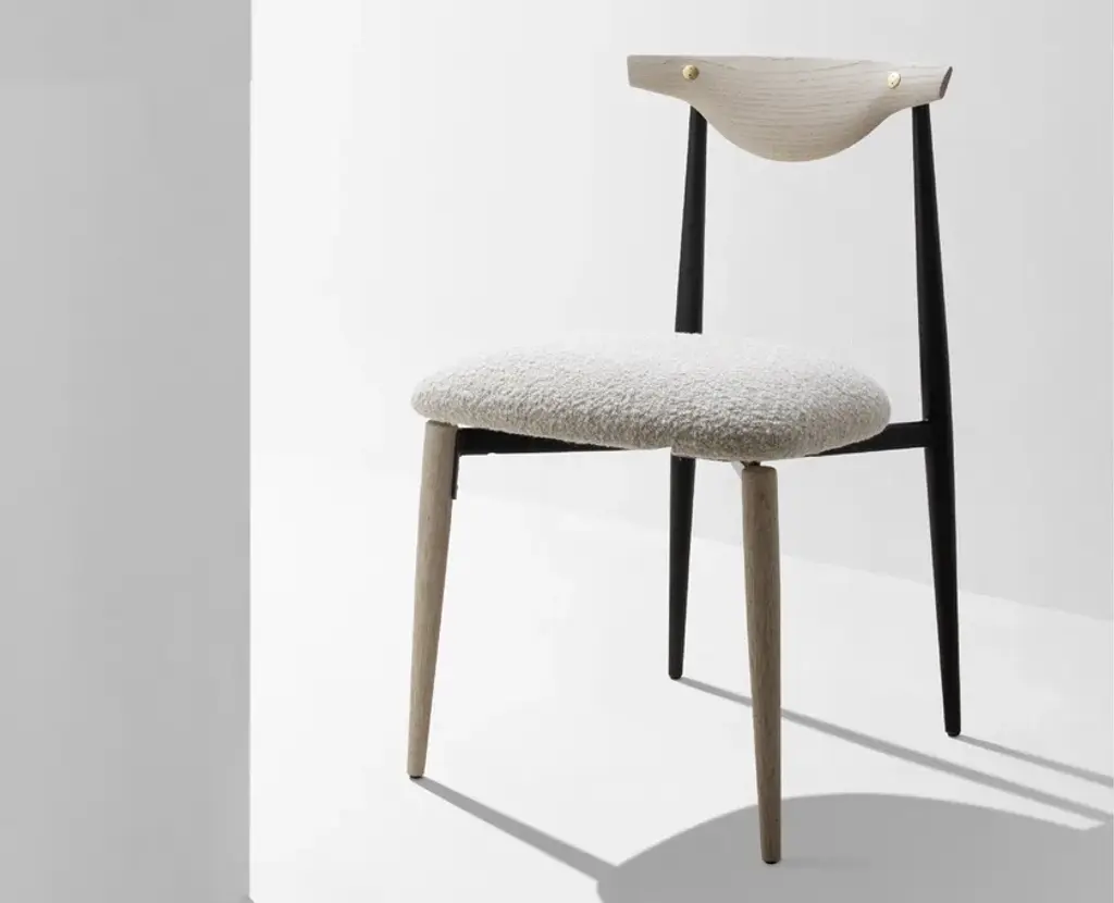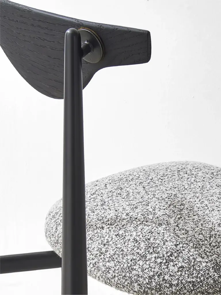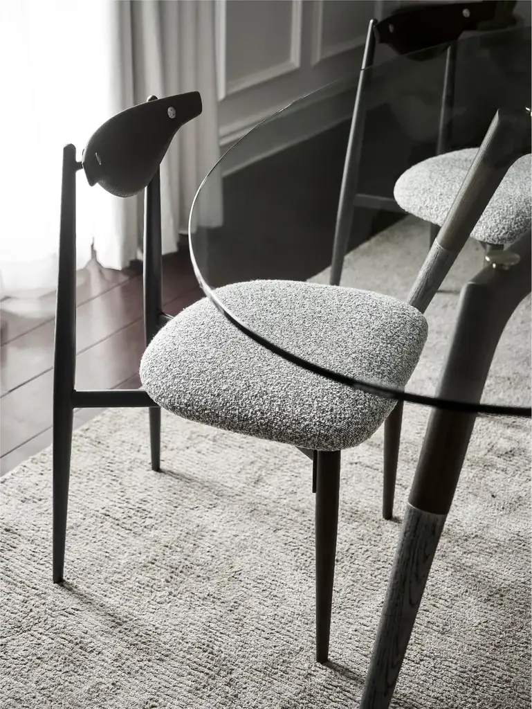 The Vicuna Dining Chair features a soft body and lean frame with a smoked oak finish, drawing inspiration from its namesake, the wildlife of the high alpine areas of the Andes.