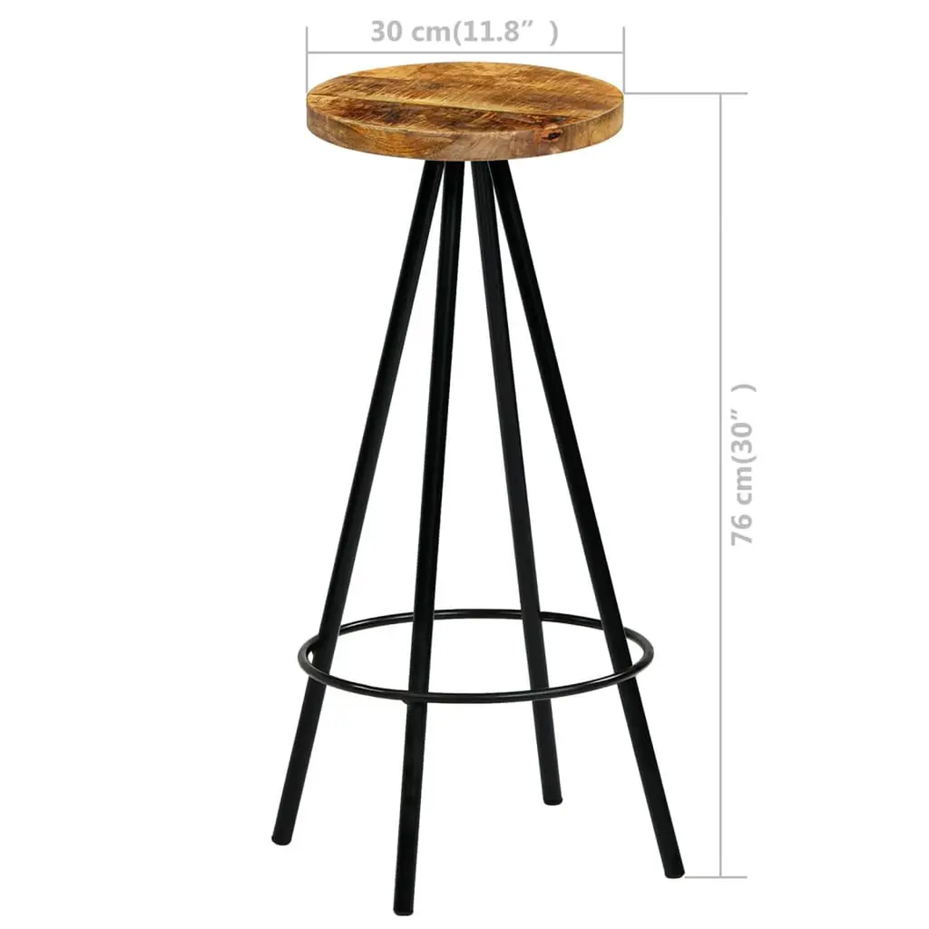 This set of four industrial bar chairs is a top-notch seating option for dining rooms and kitchen bars, mixing function with good looks. Made from solid mango wood and a sturdy powder-coated steel frame, these chairs have a unique charm that makes them both practical and a stylish addition to your home décor. Sturdy Construction: Made from durable solid mango wood, these chairs are built for the long haul. The strong steel frame provides extra support, perfect for everyday use.Elegant Design: With an industrial style inspired by urban lofts, these chairs will fit right in with any modern home, adding character and warmth to your dining area or bar space.Comfort Features: With a handy footrest, these chairs make sitting for long periods a breeze. This smart detail shows the design's focus on comfort.Compact Size: Measuring 11.8 in in width and length, and 29.9 in in height, these chairs slot nicely into small spaces, ideal for cozy dining setups or intimate kitchen bars.Easy Maintenance: The smooth lacquered finish means these bar chairs are easy to keep clean. Just give them a wipe with a damp cloth to keep them looking sharp.