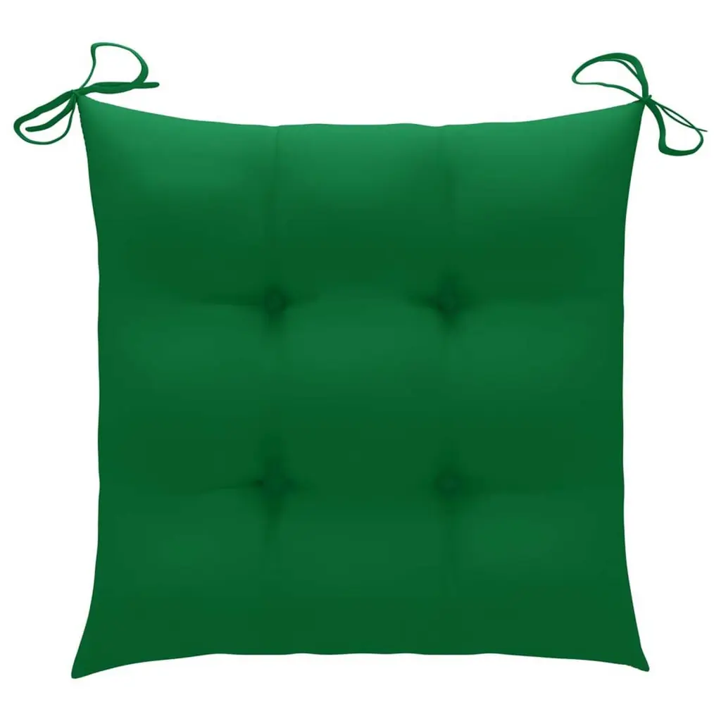 These comfortable and elegant wooden Batavia chairs with cushions will look simply stunning in the garden or on the patio.Constructed from extremely durable teak hard wood, this set of teak furniture has been seasoned, kiln dried and then fine sanded to give a very smooth appearance. Teak wood is known for its exceptional strength and weather resistance, making it far more suitable for garden furniture than any other kind of wood. Teak wood is the perfect choice if you want to purchase a long lasting piece of garden furniture. Thanks to their finely sanded surface, the chairs are weather proof and easy to clean, and will add a touch of rustic charm to your garden; they are very suitable for relaxing or dining with your friends or family. What's more, the included cushions provide extra comfort. Each cushion has 2 sets of ropes to fix it on the chair tightly.Note: In order to extend the life of your outdoor furniture, we recommend you to clean it regularly and do not leave it outdoors without protection unnecessarily.Clean: Use a mild soap solutionStoring: If possible, store in a cool, dry place indoors. If the product is stored outdoors, protect it with a waterproof cover. Wipe and dry the excess water or snow from flat surfaces after a rain or snowfall. Allow sufficient air circulation to avoid moisture-related damage.